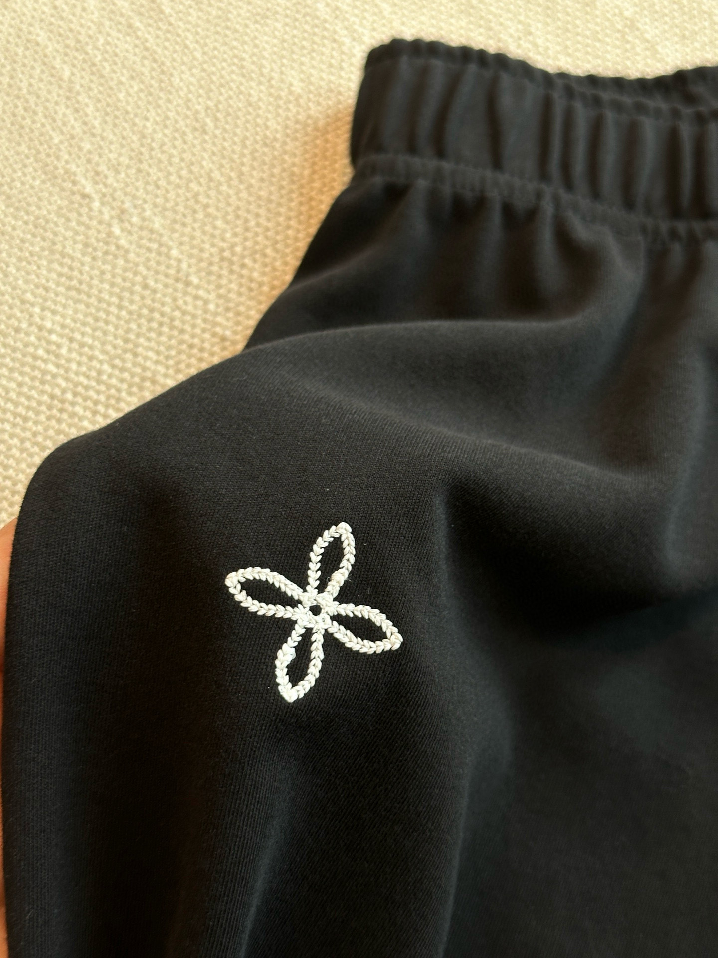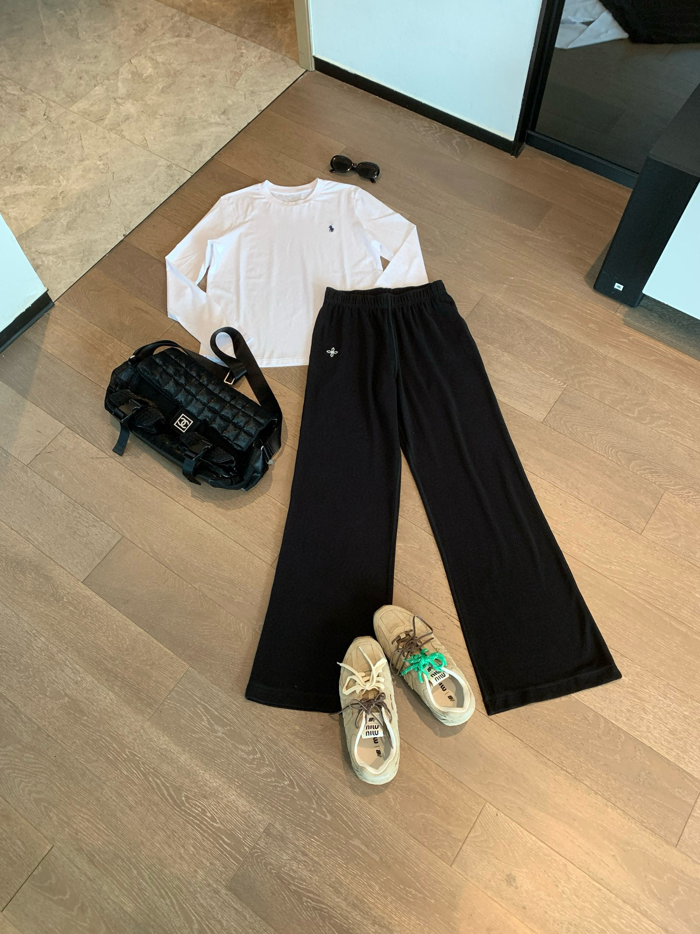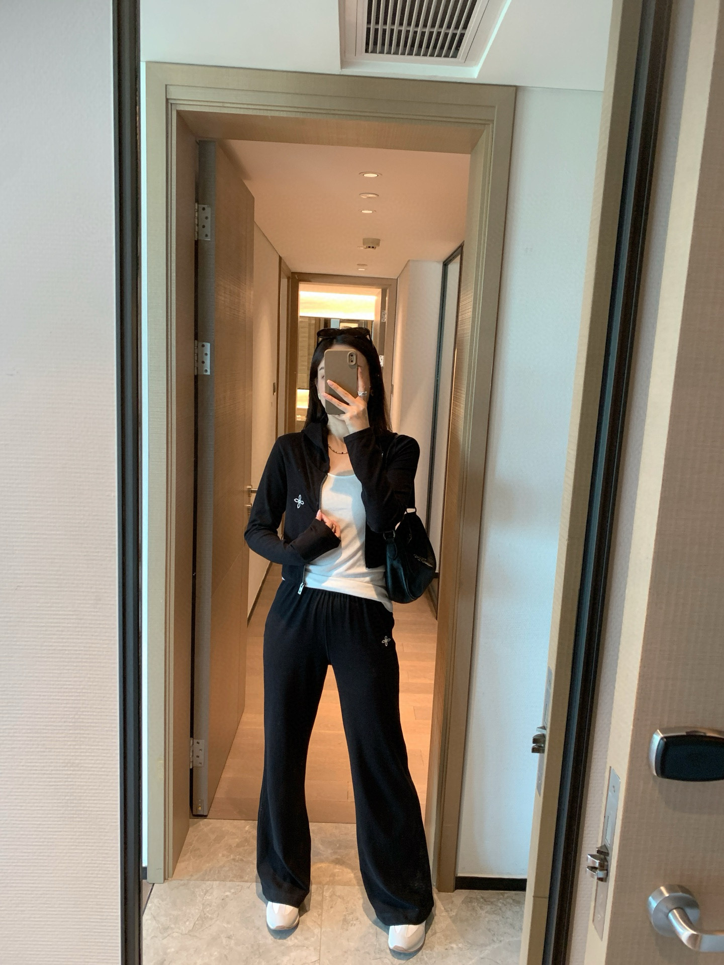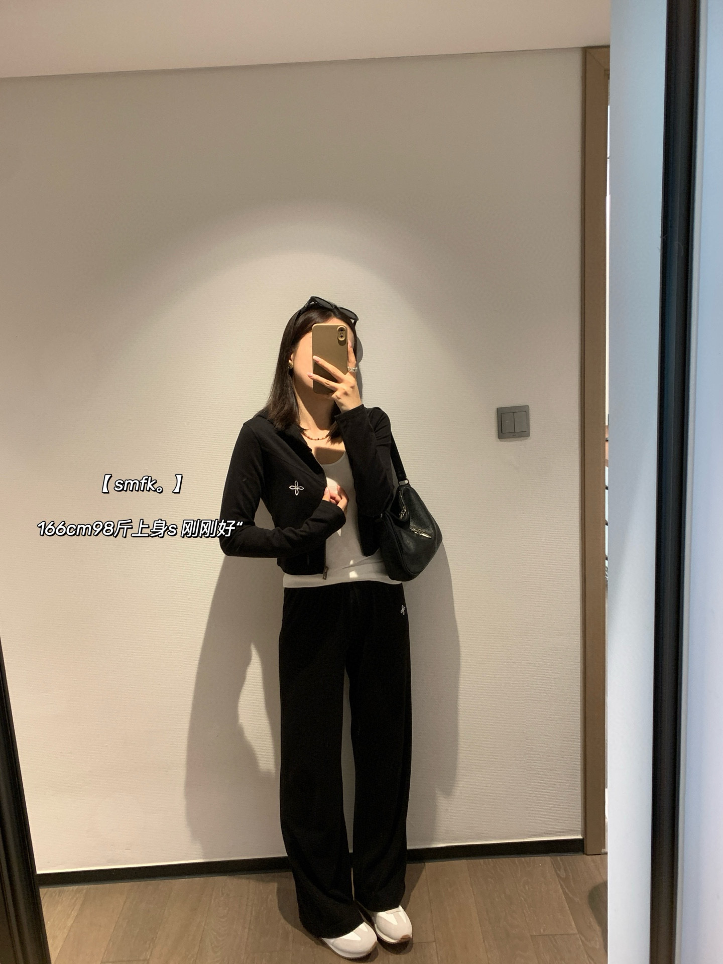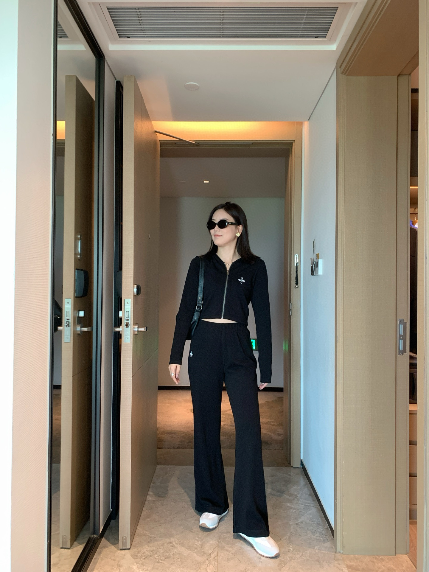 上衣属于短款的设计,下宽上紧的显瘦显高设计理念,