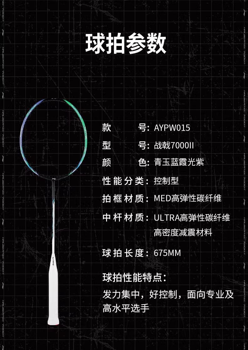 李宁羽毛球拍战戟7000二代高弹性全碳素攻守兼备灵活单拍战戟7000II