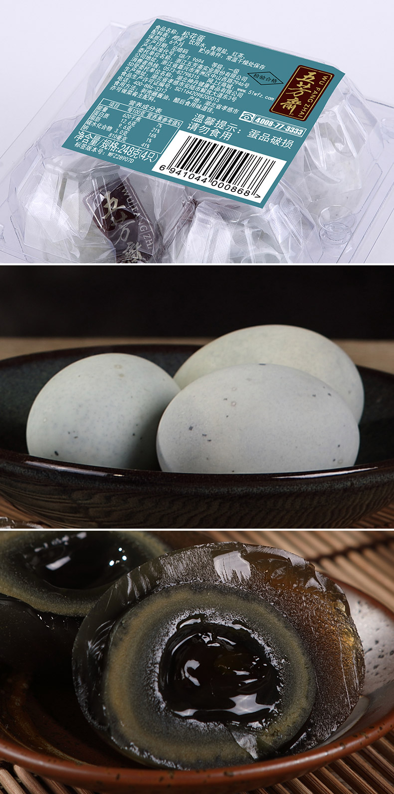 【3盒装】五芳斋 皮蛋松花蛋溏心皮蛋 62克*4只