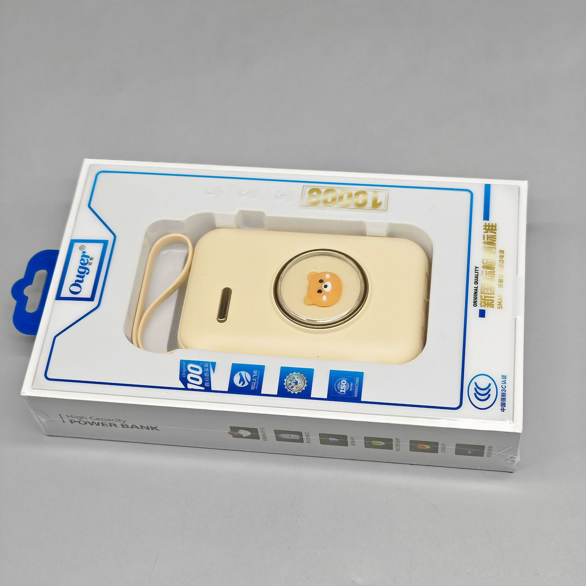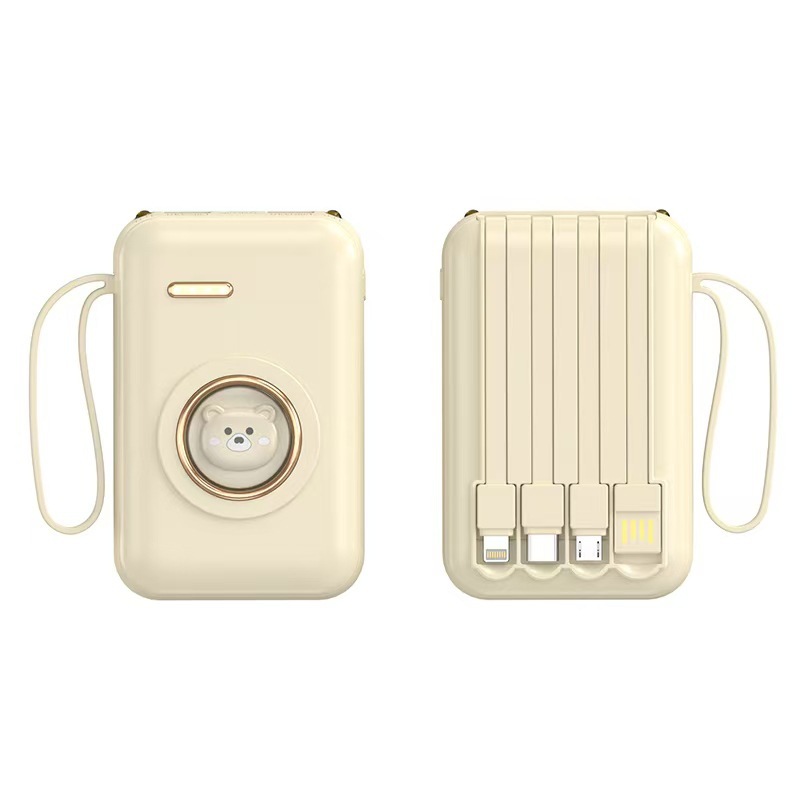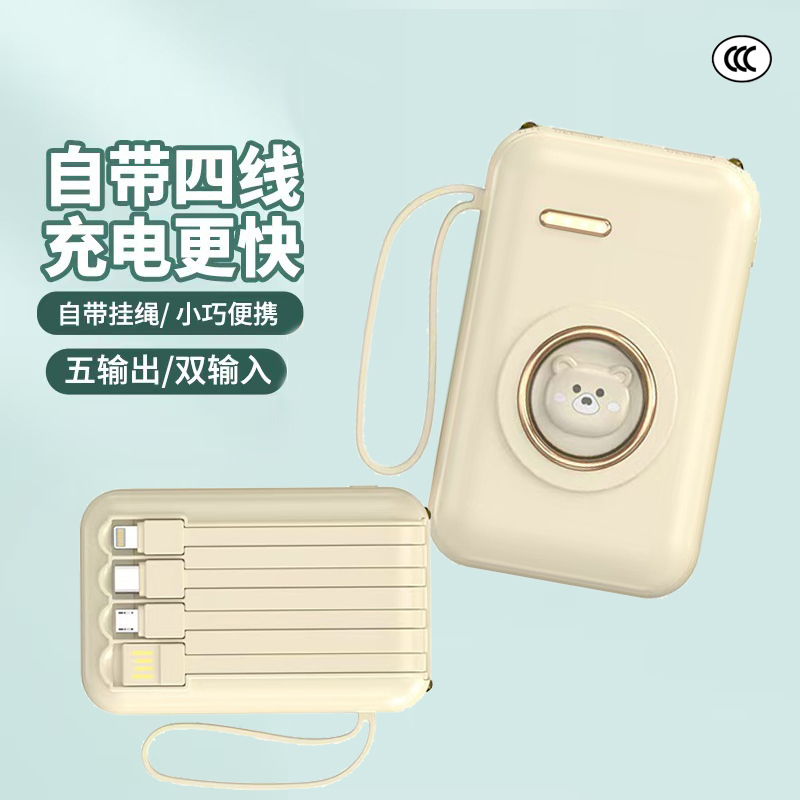 严选【卡通萌宠带四线充电宝黄色】3c认证10000毫安快充超大容量小巧便携移动电源-1个