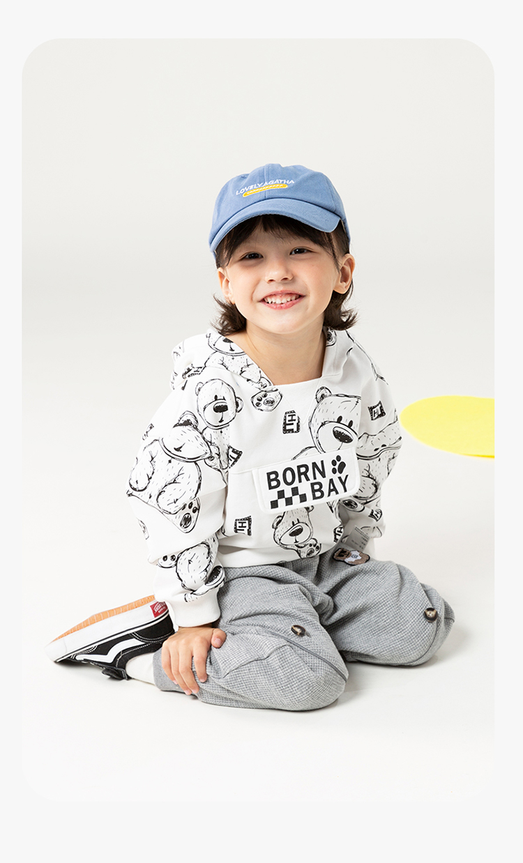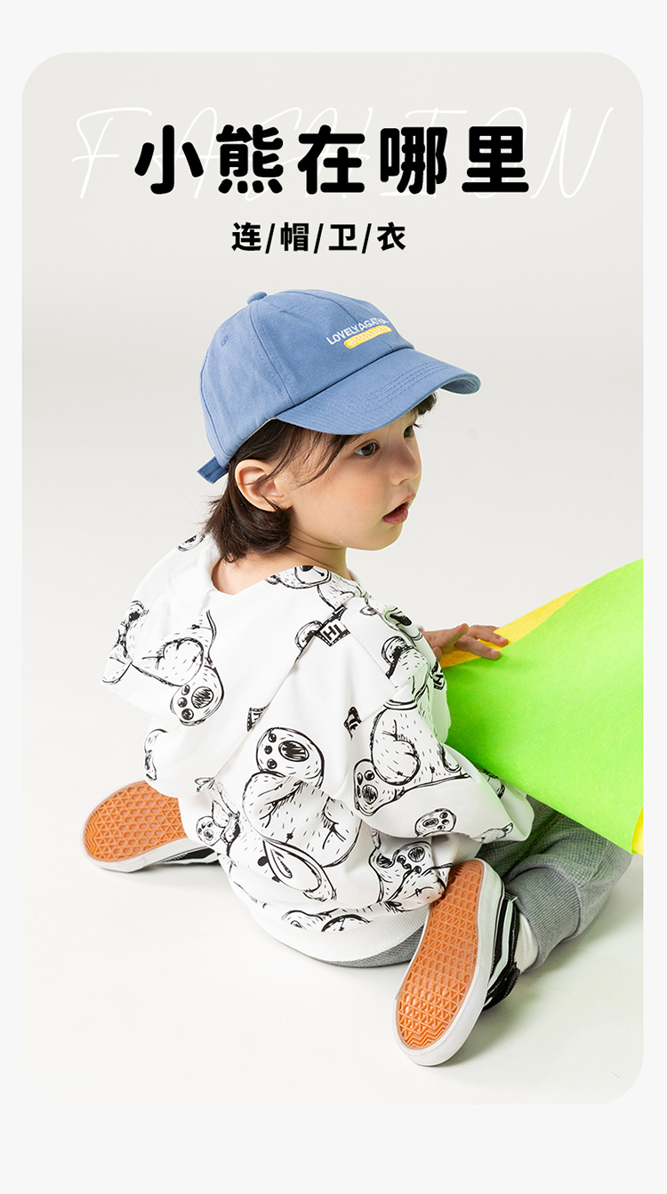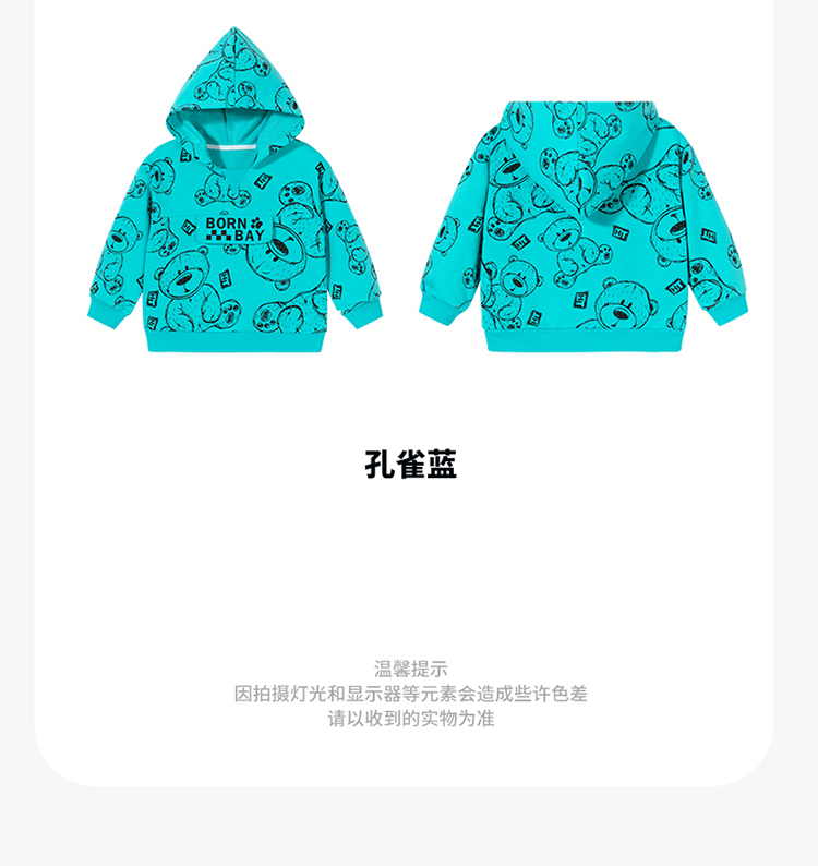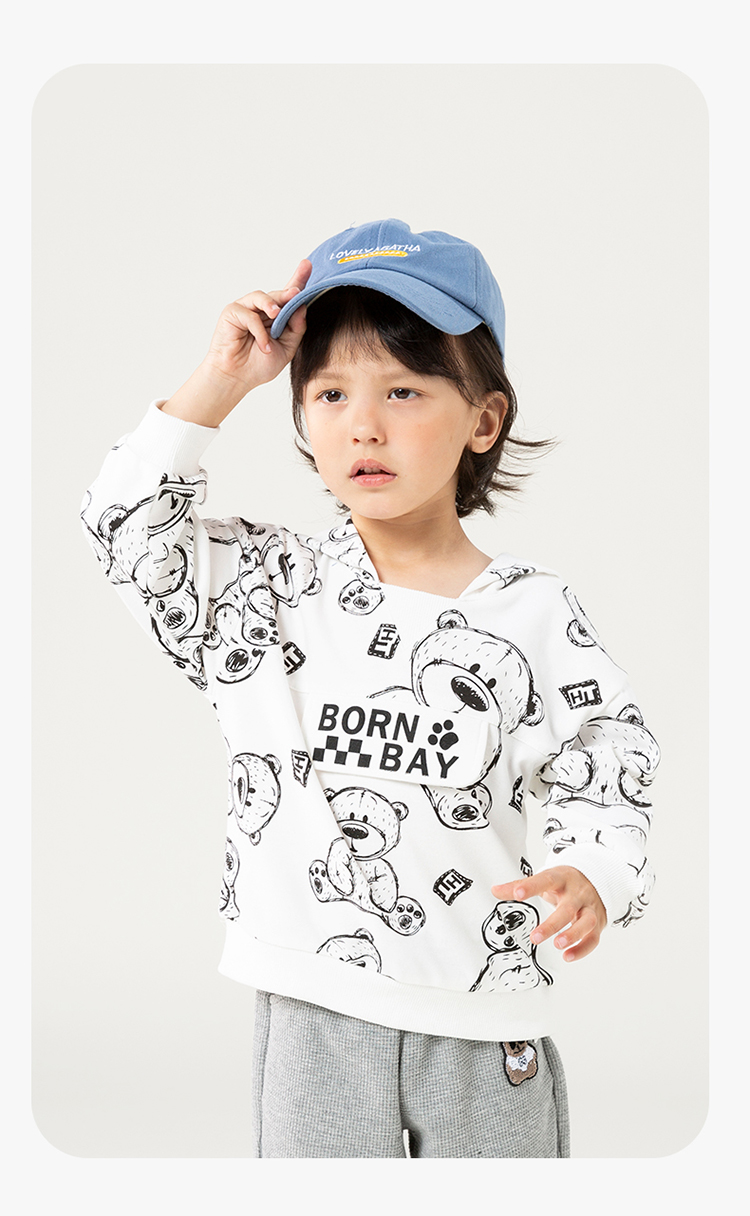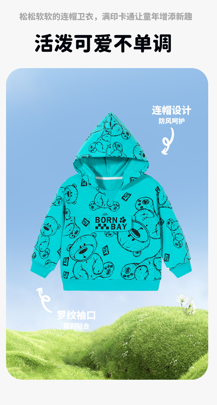 贝贝怡儿童卫衣连帽2024春新款男童衣服洋气卡通上衣女中大童春装ZB1DS042