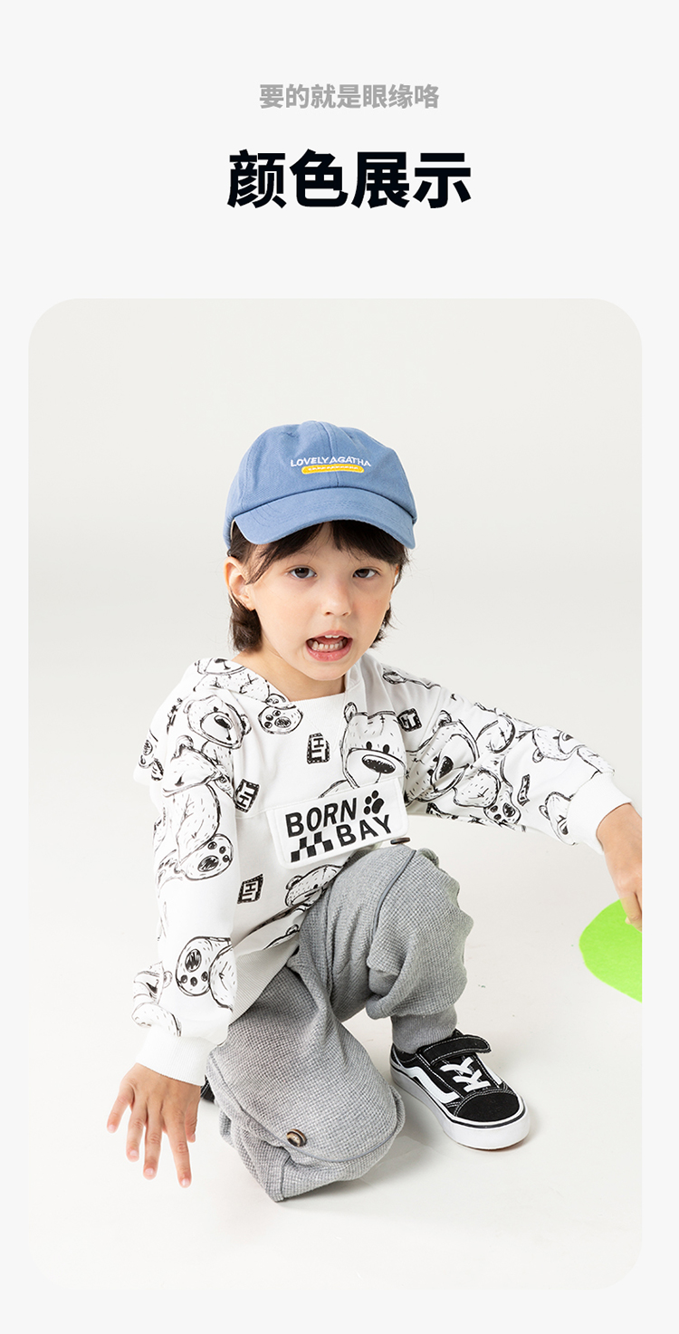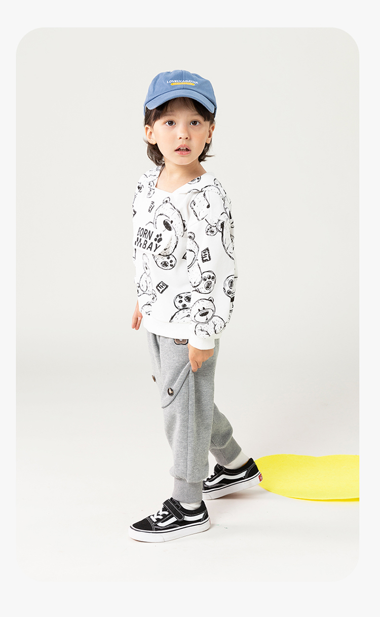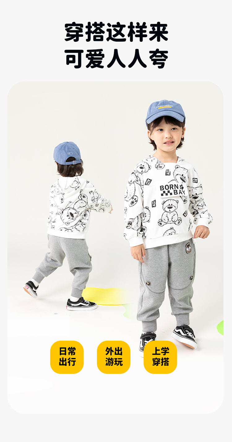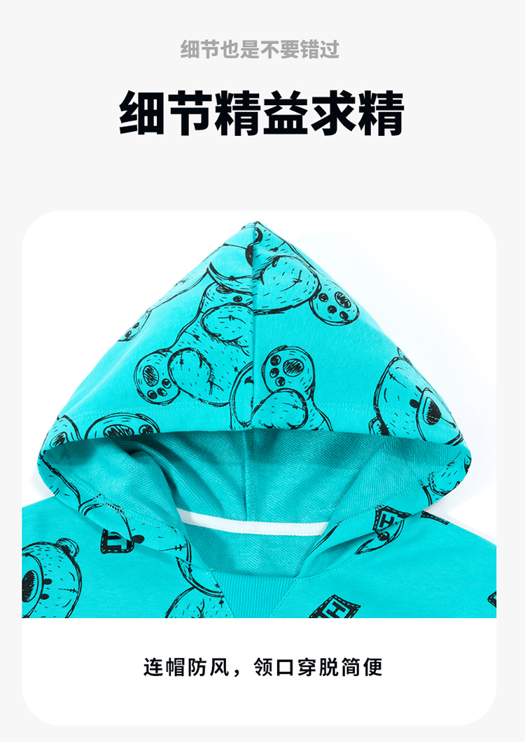 贝贝怡儿童卫衣连帽2024春新款男童衣服洋气卡通上衣女中大童春装ZB1DS042