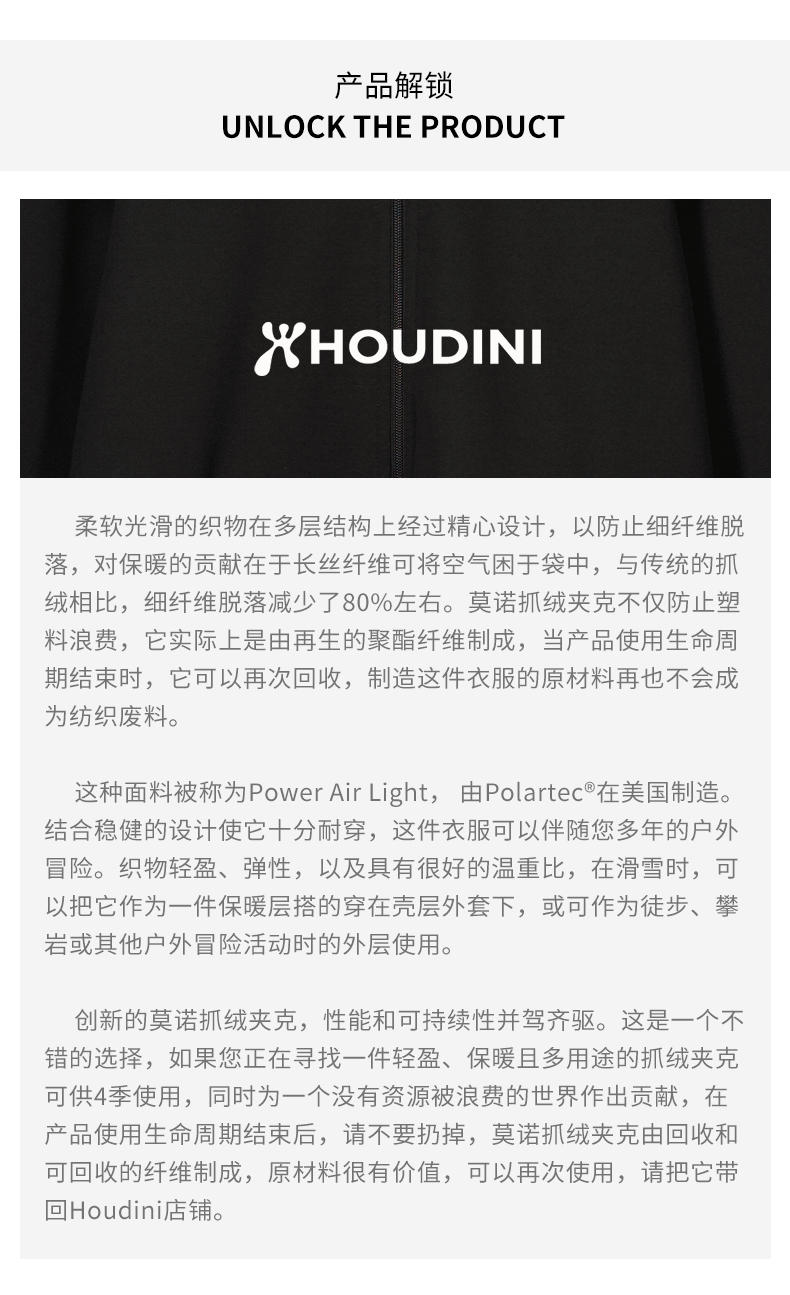 HOUDINI胡丁尼 Mono Air Jacket 莫诺 男款户外舒适保暖抓绒夹克800068