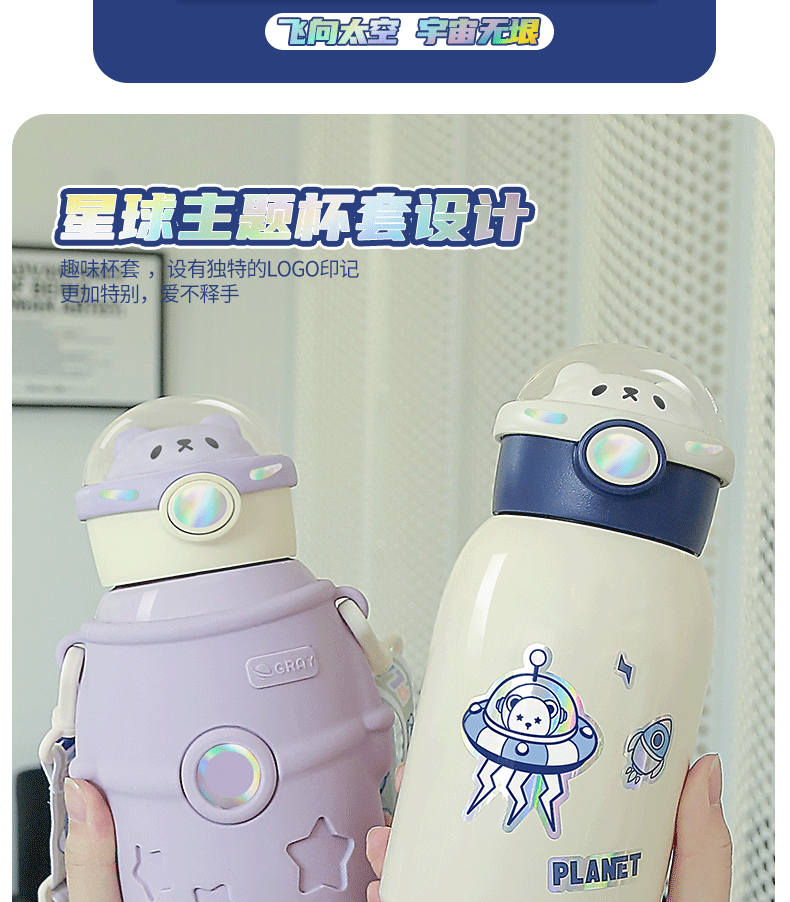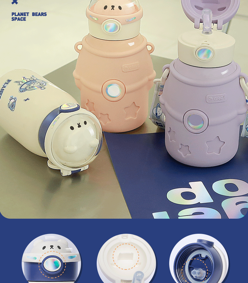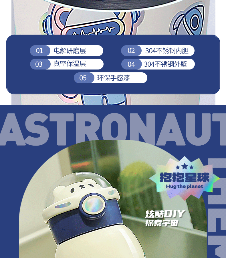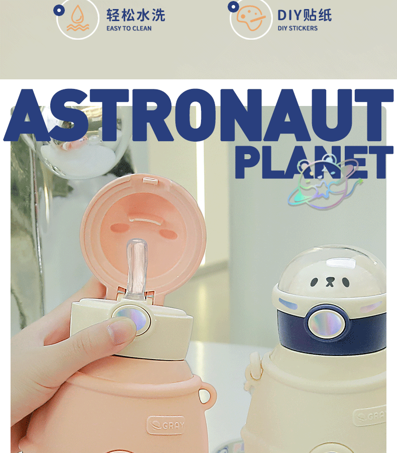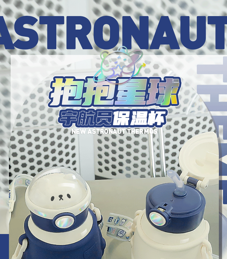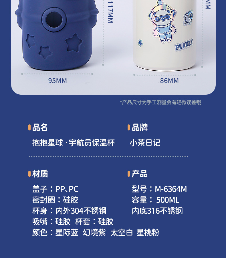 316小茶日记宇航熊儿童保温杯500ml
