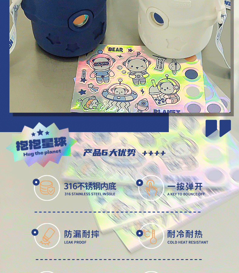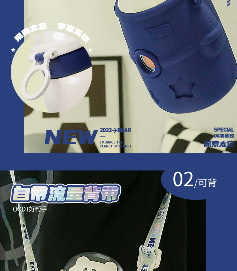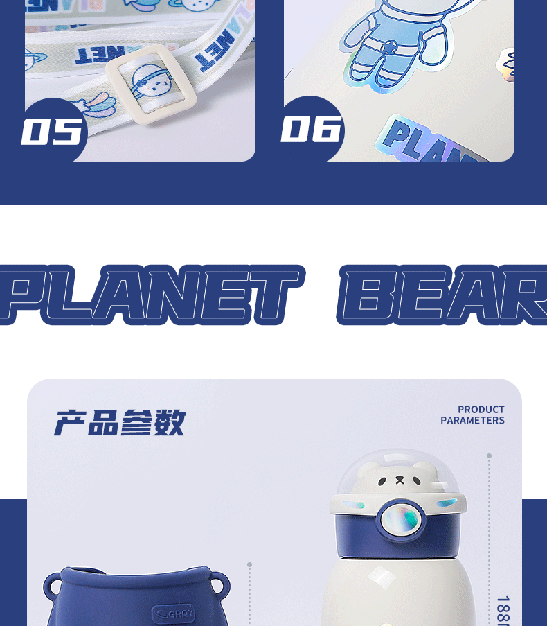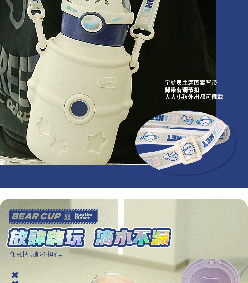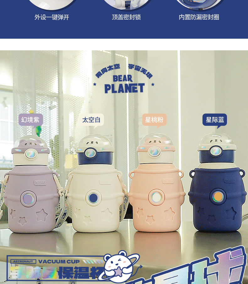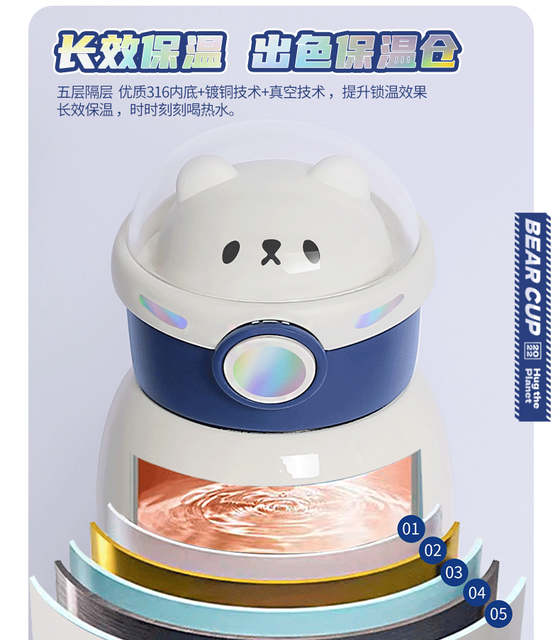 316小茶日记宇航熊儿童保温杯500ml