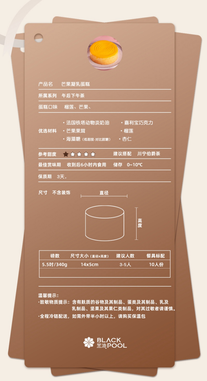 | 1、芒果榴莲凝乳蛋糕仅限顺丰冷链发货; |