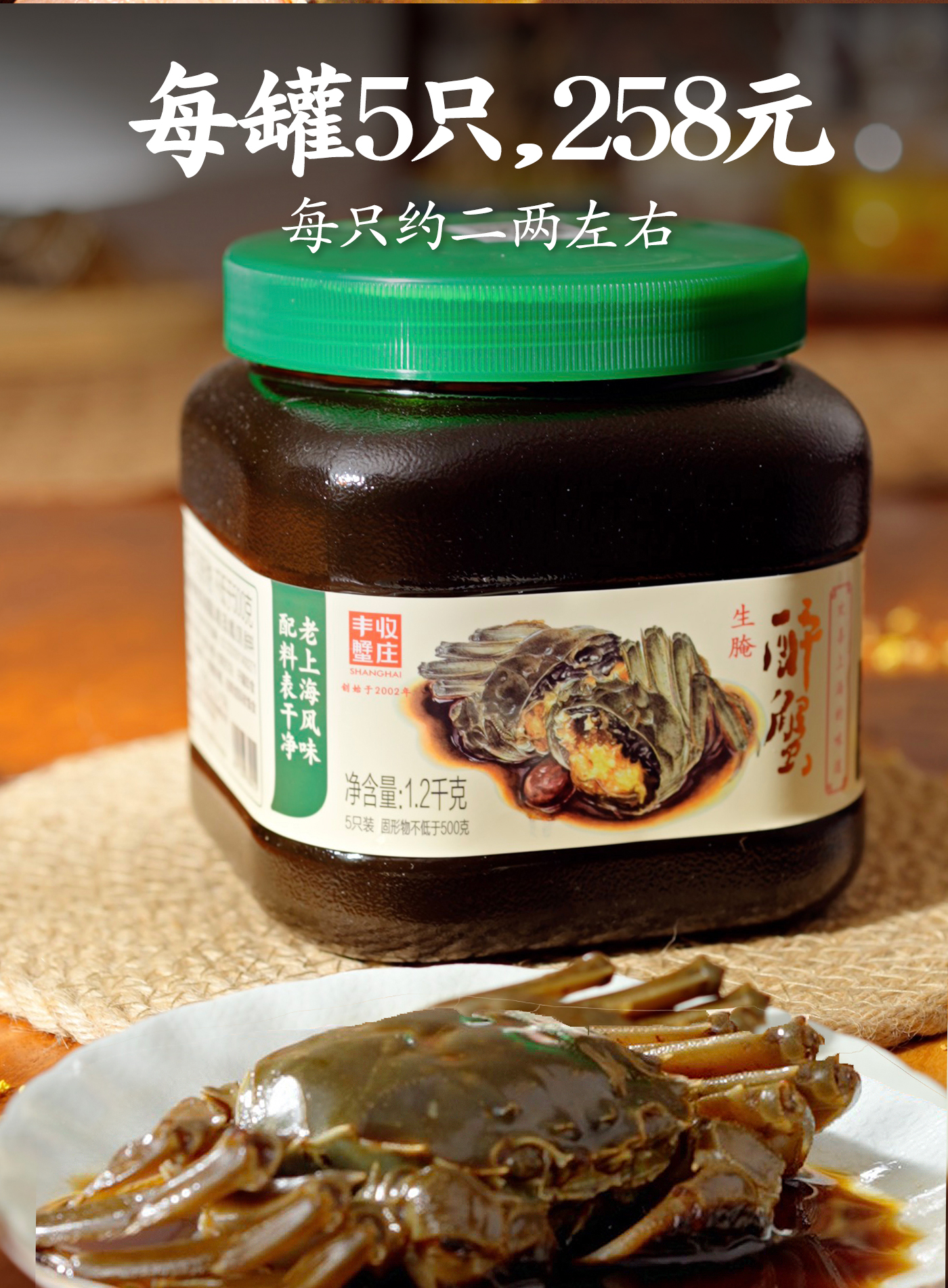 丰收蟹庄生醉蟹 即食大闸蟹 金奖蟹 全母蟹 非花雕生腌螃蟹(每只二两,每罐5只)