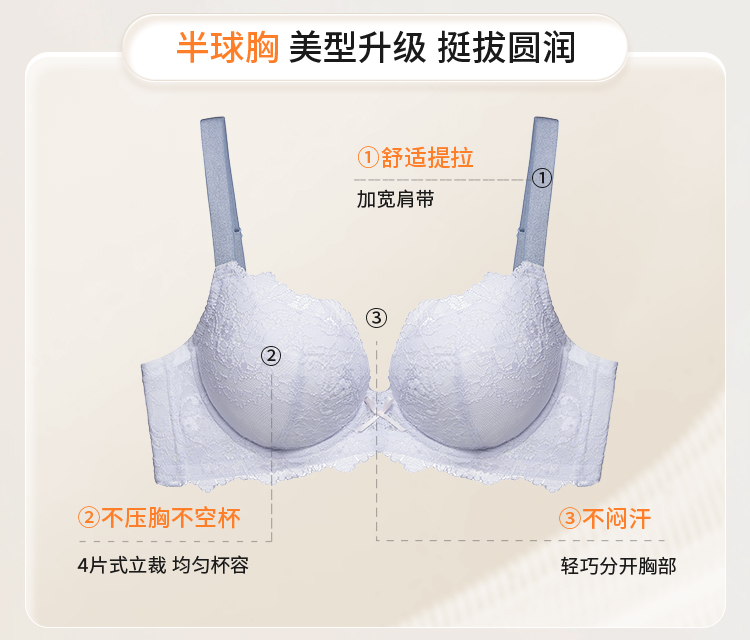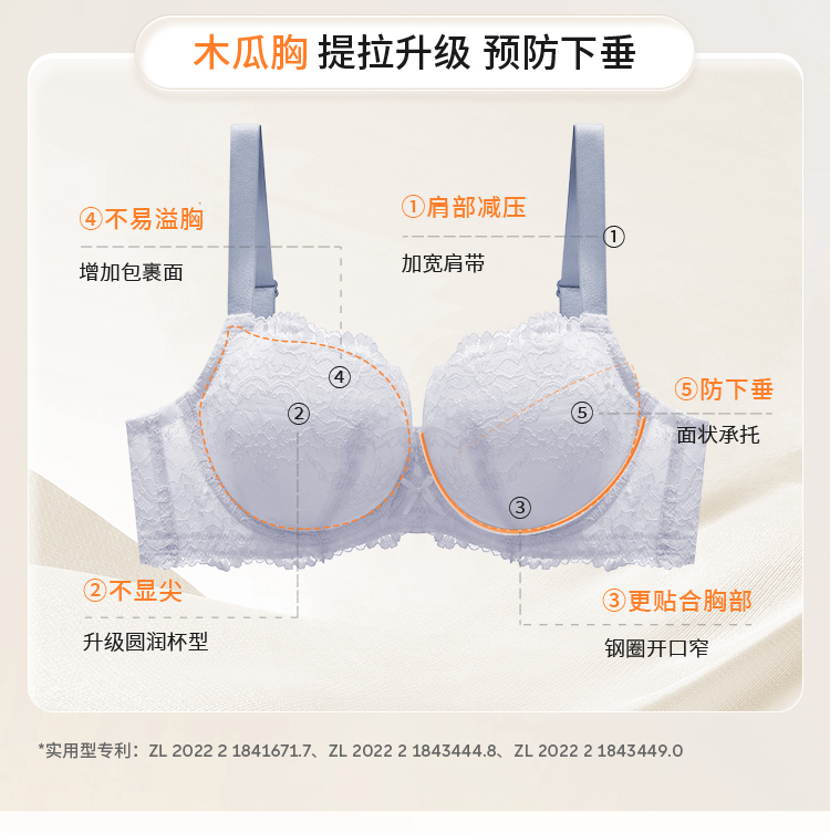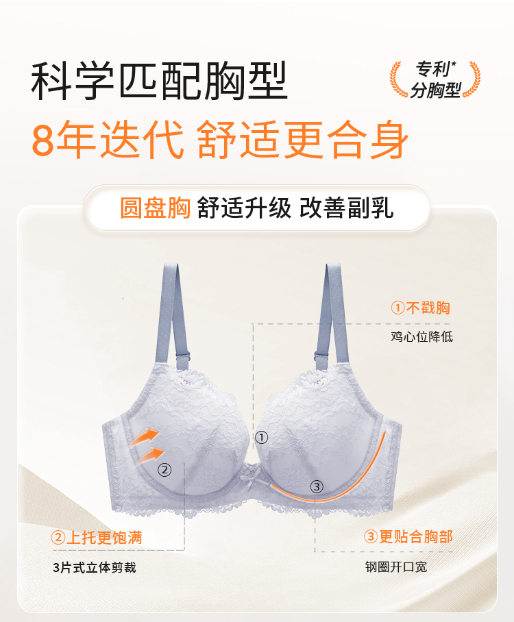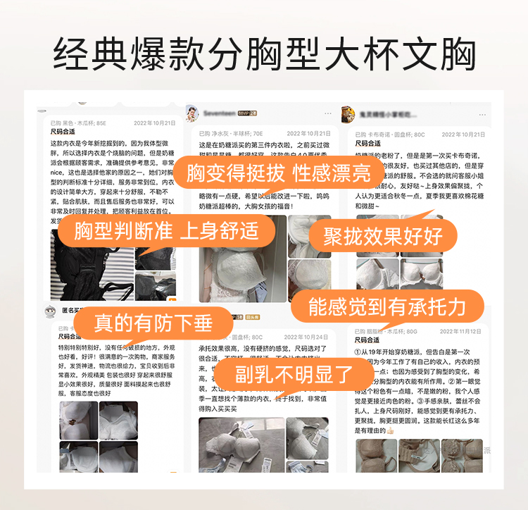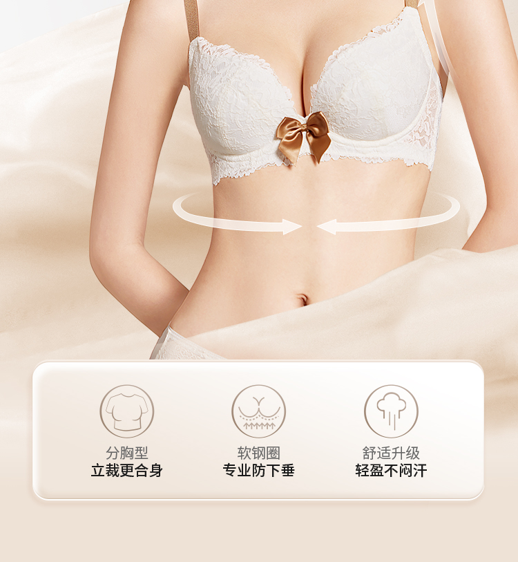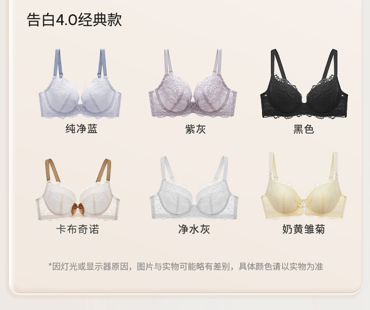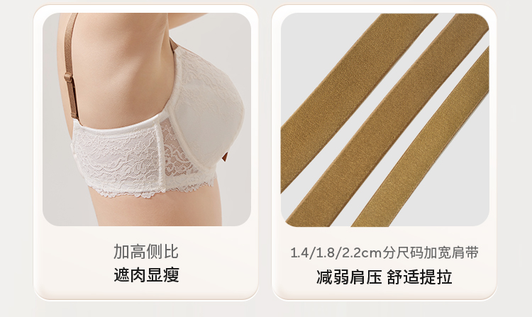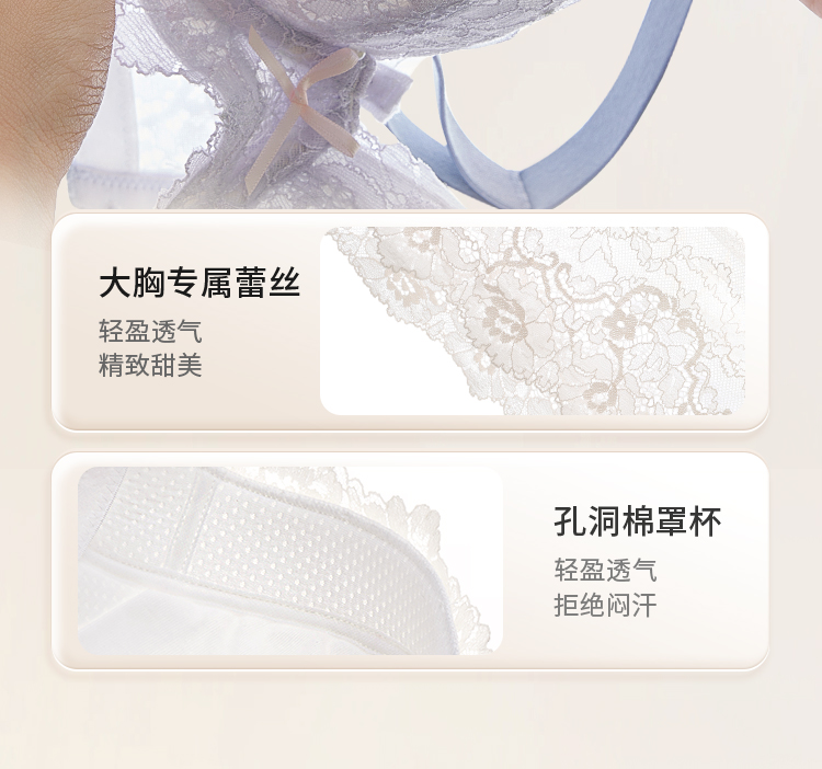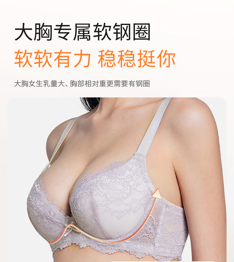奶糖派大胸文胸告白分胸型4.0经典款撞色防下垂蕾丝性感内衣女