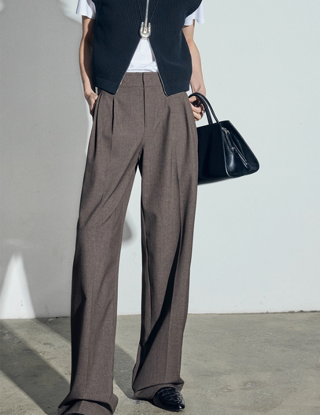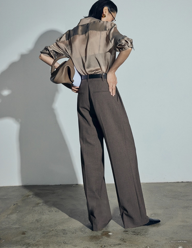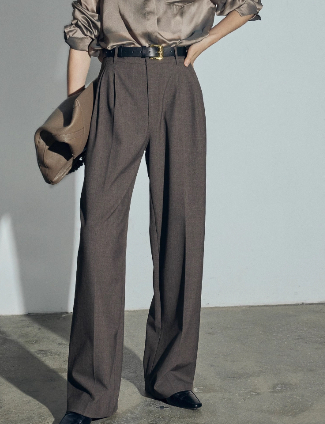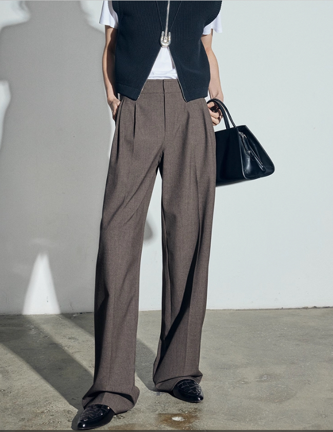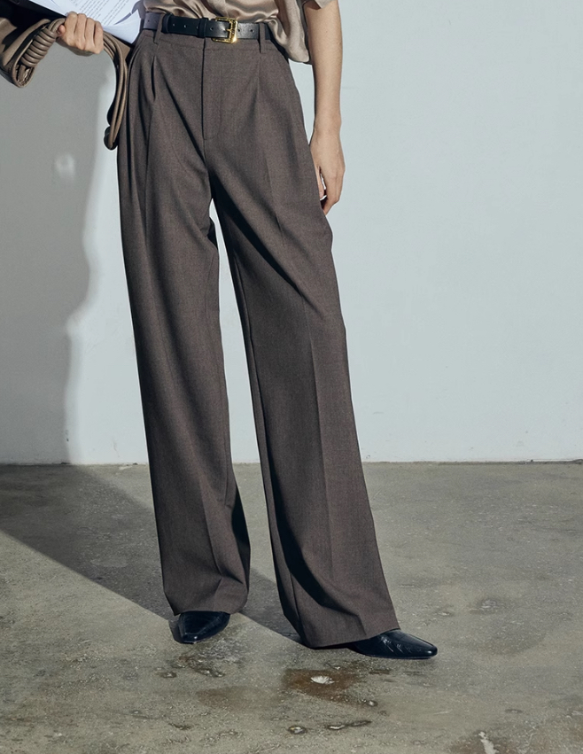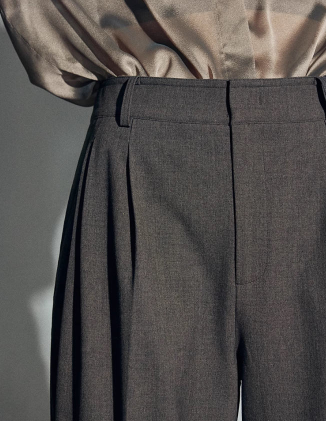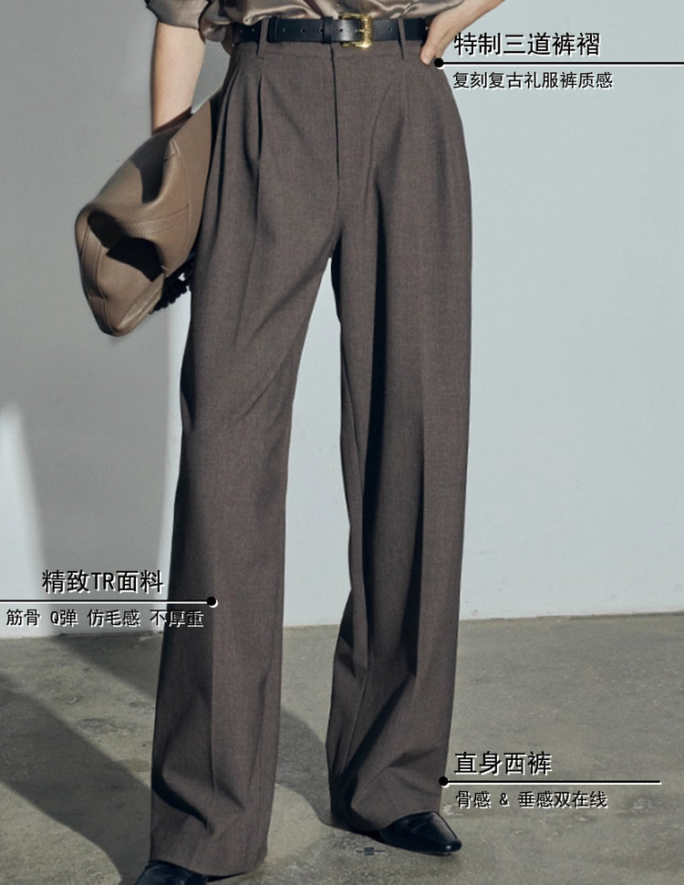 松露灰棕多层打褶阔腿西裤 温柔灰调清冷西装裤 高智感拿捏得刚刚好 三道褶设计 自带复古书卷气 精致 TR 面料 超好打理