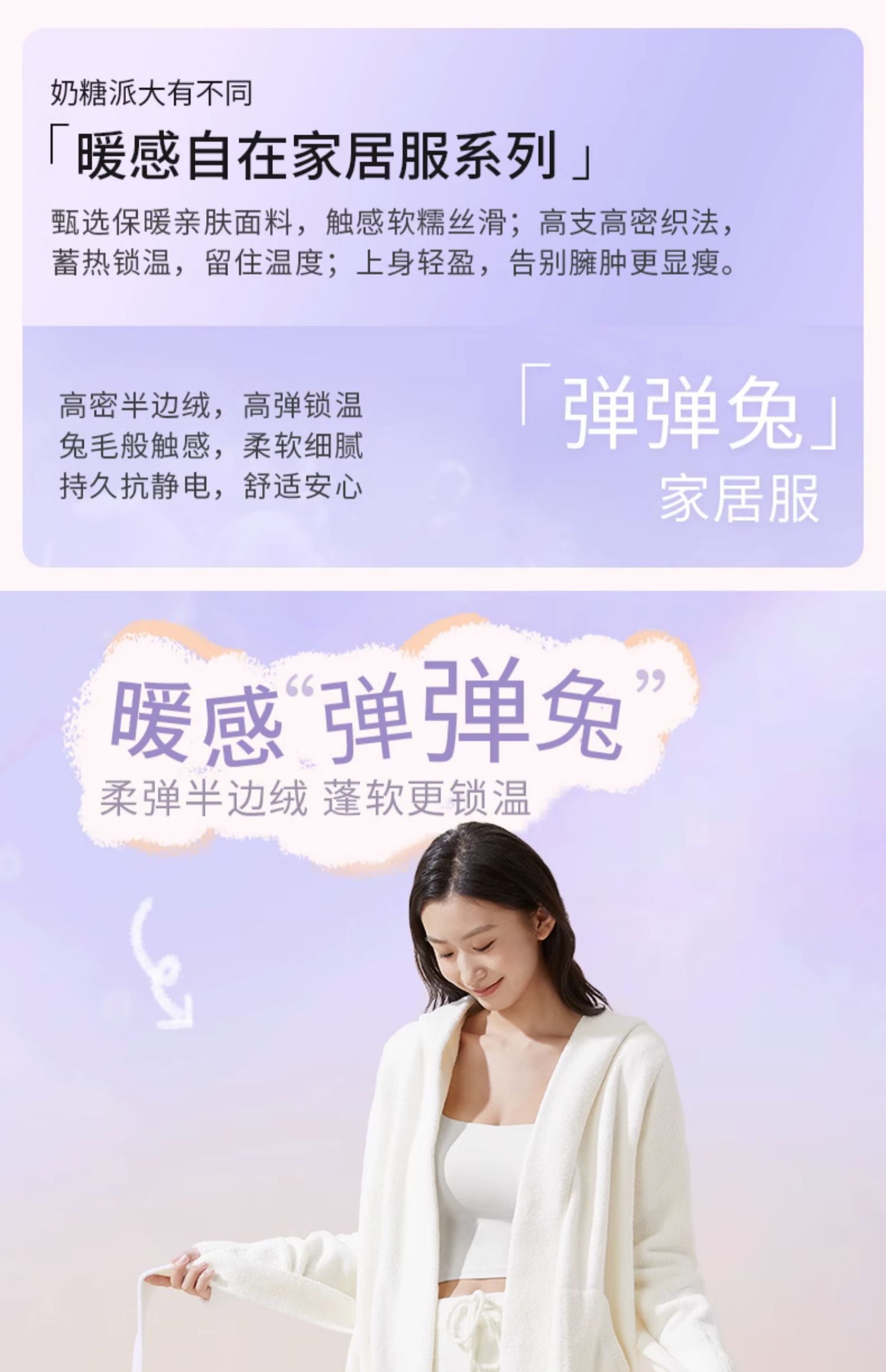 奶糖派大胸家居服睡袍外套半边绒保暖软糯可外穿睡衣秋冬防静电