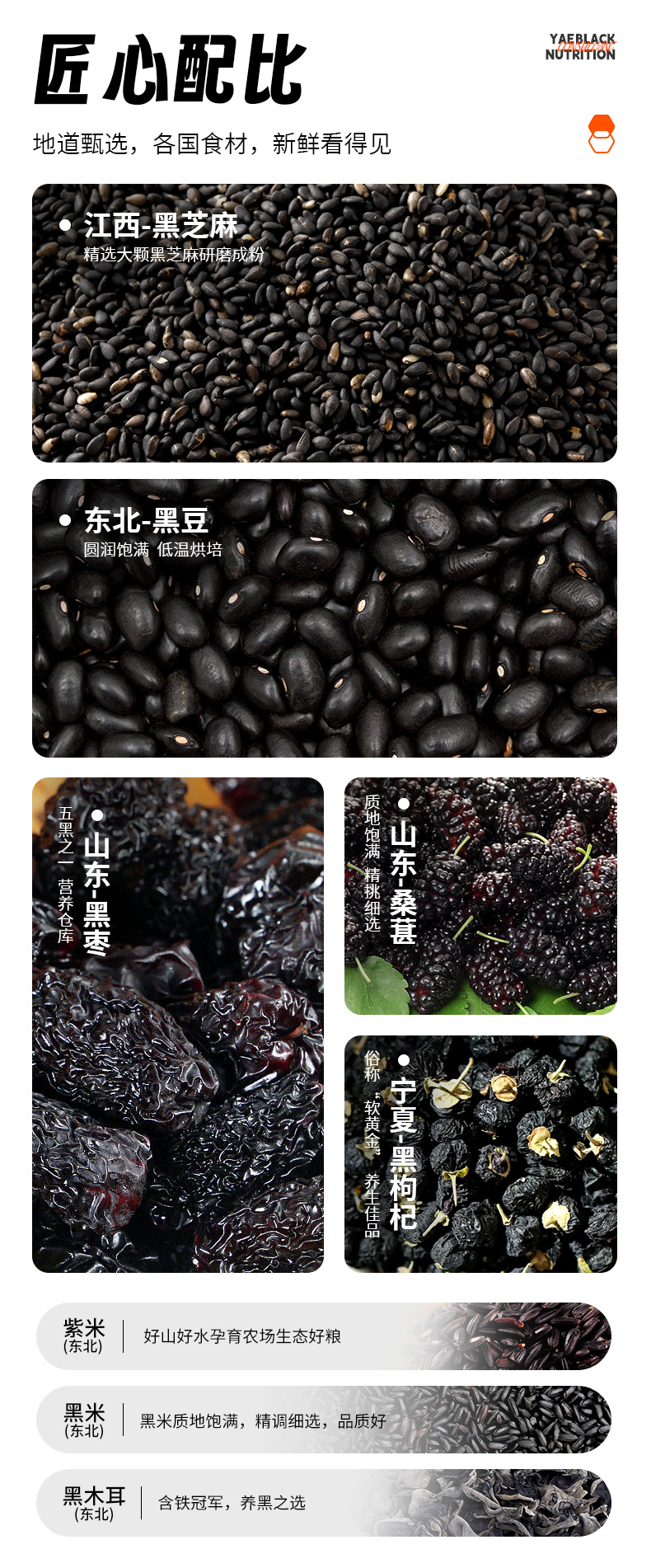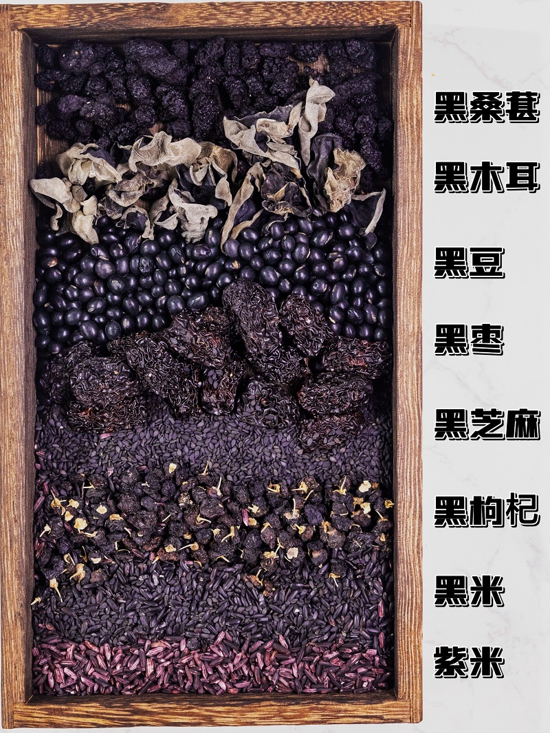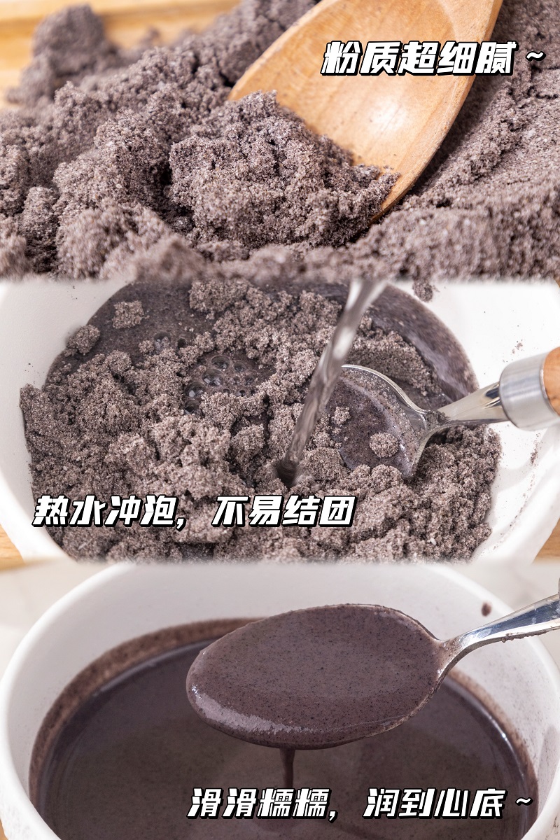 【配料表】黑豆、黑芝麻、紫米、黑米、羊奶粉、木糖醇、桑葚、黑枸杞、黑木耳、黑枣粉