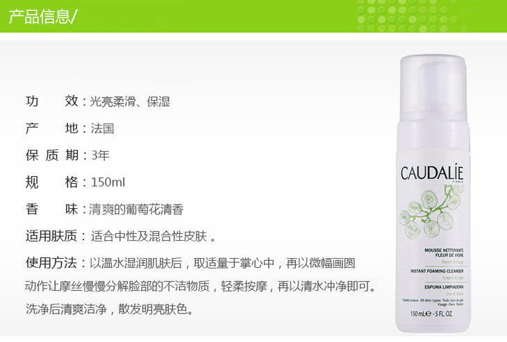 法国 欧缇丽 洁面摩丝 150ml 控油补水/保湿清洁