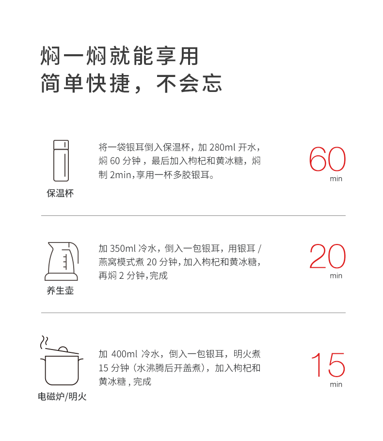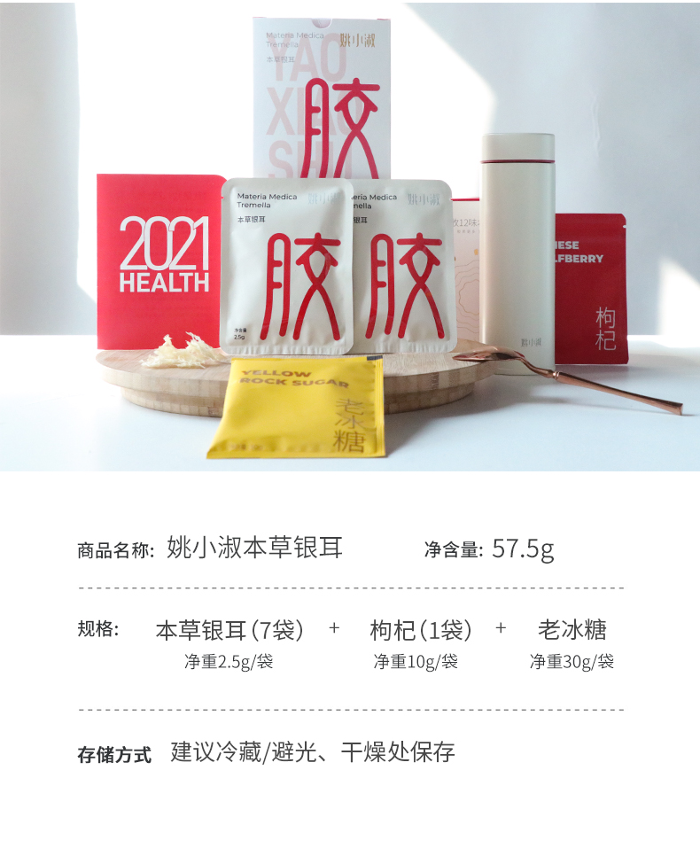 规格:(57.5g/盒:本草银耳 2.5g*7袋,枸杞10g,黄冰糖30g)