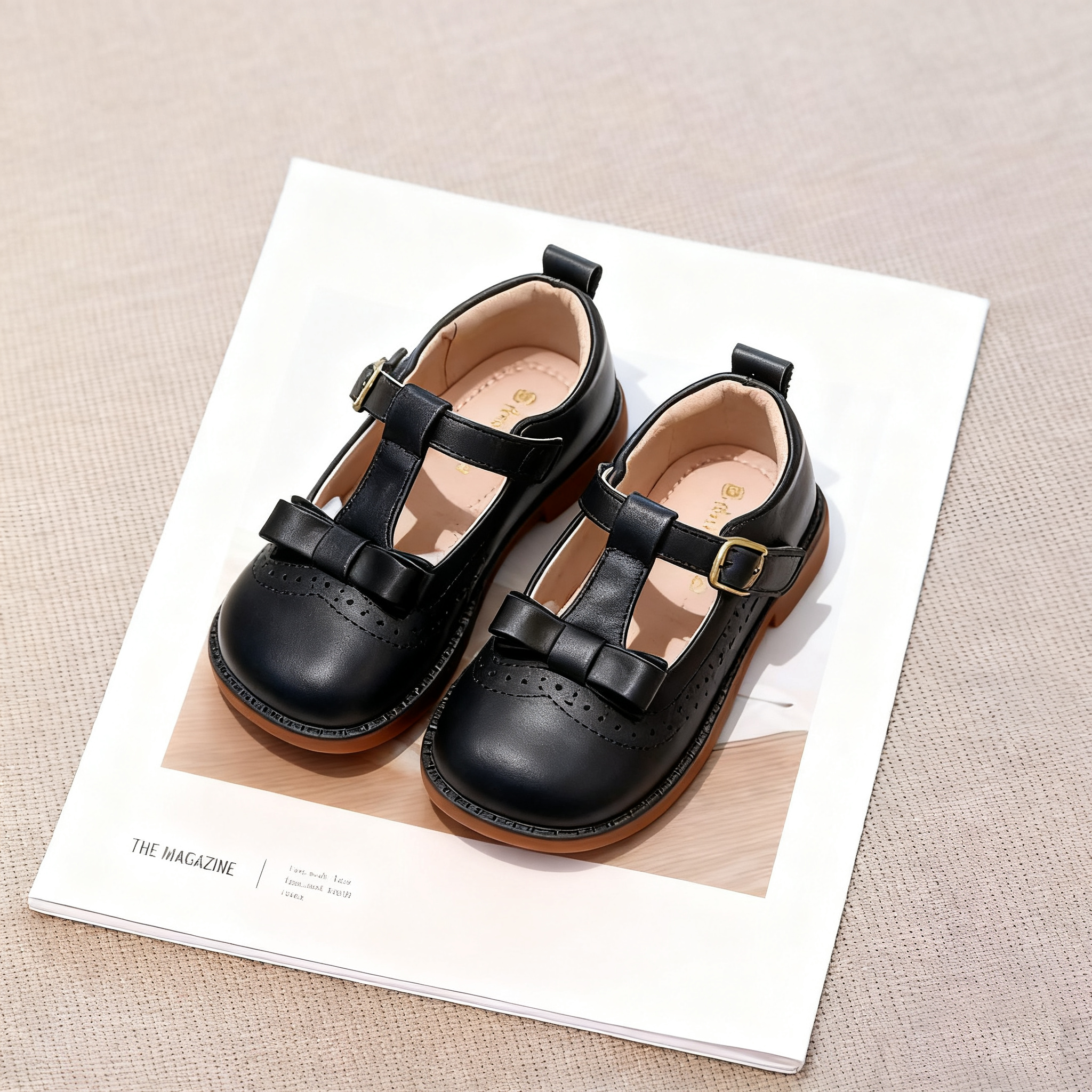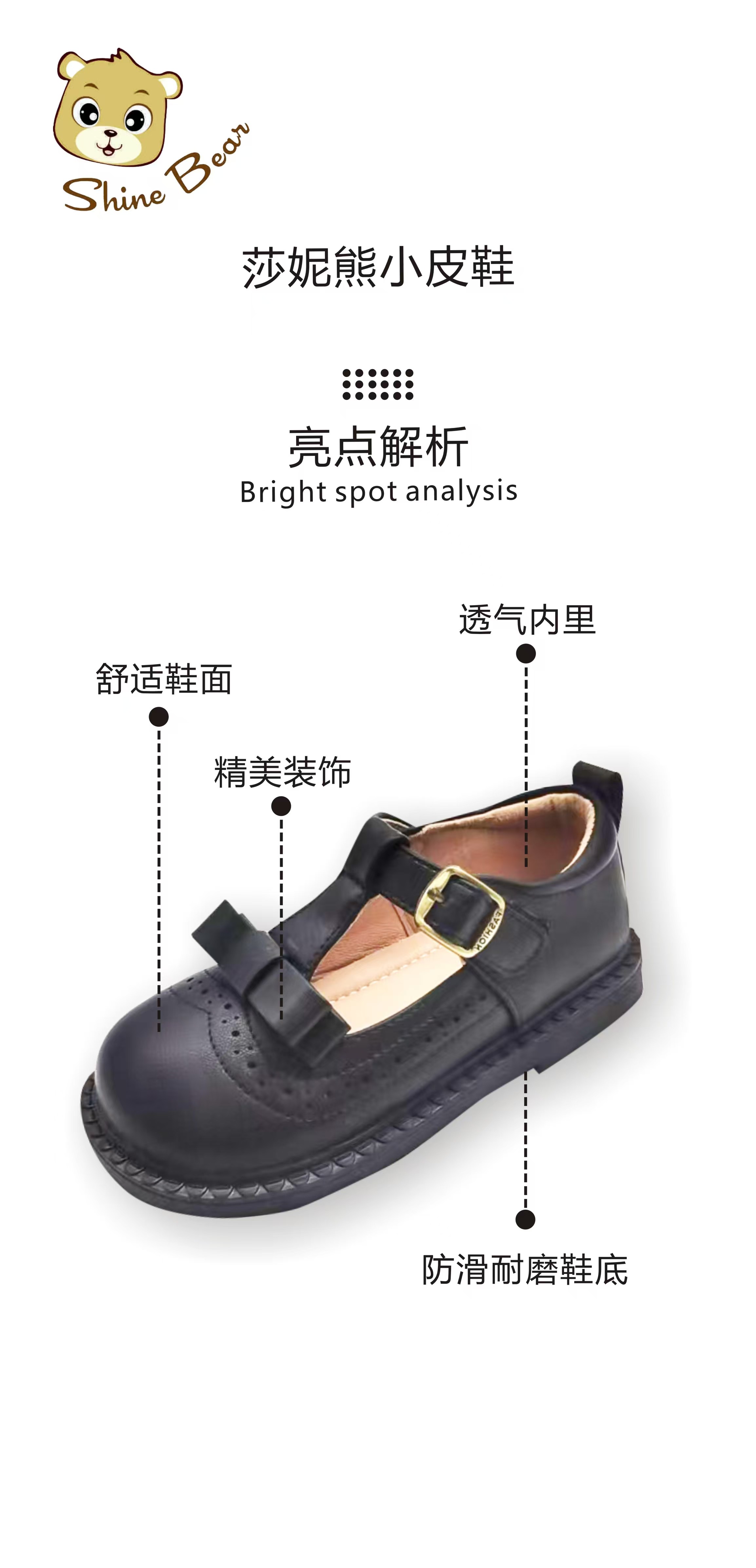 莎妮熊24AU小童皮鞋D24608(黑色/米白)