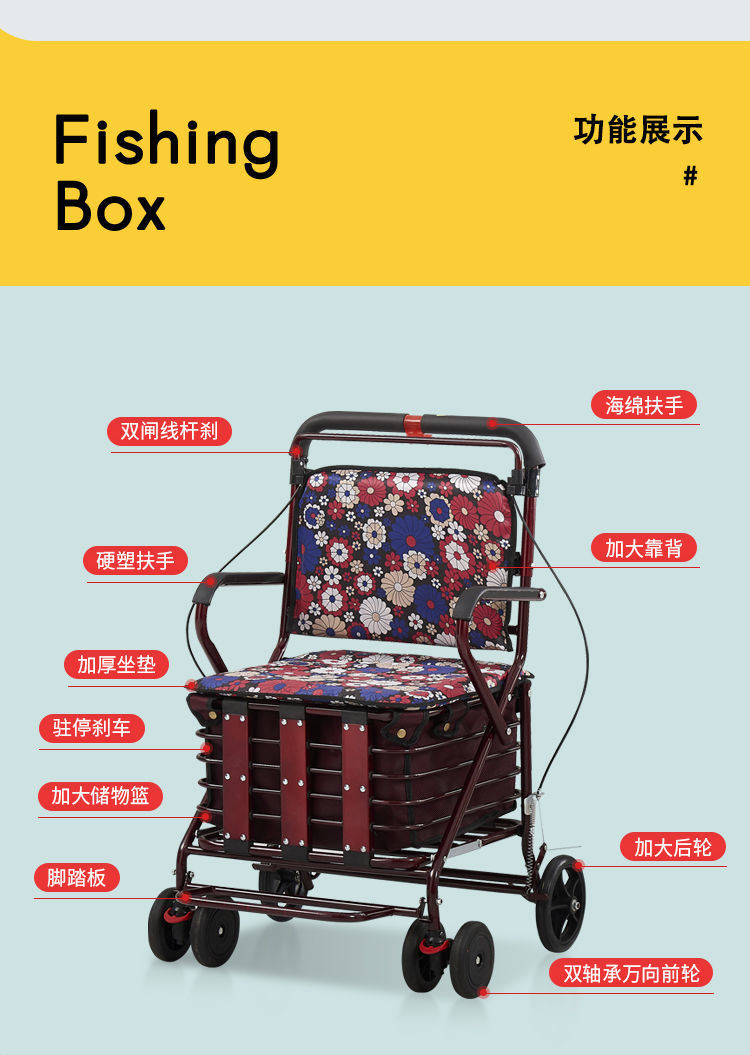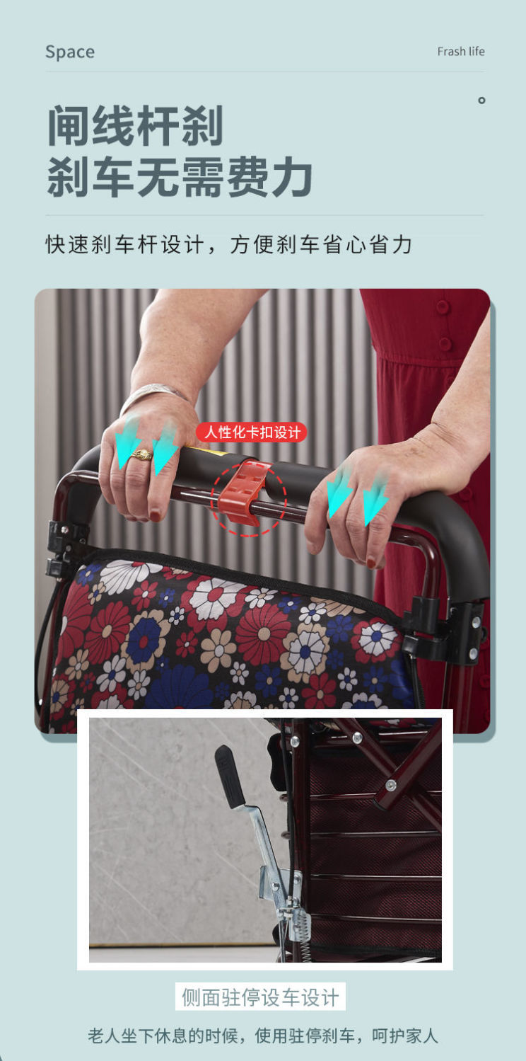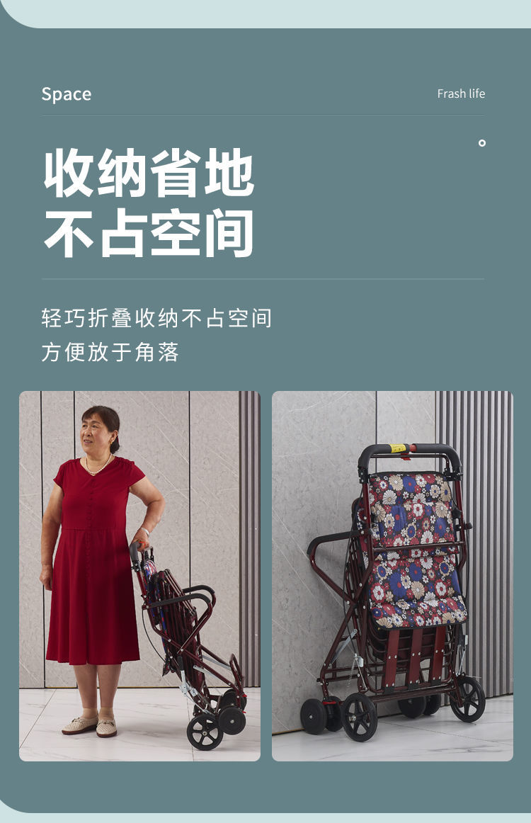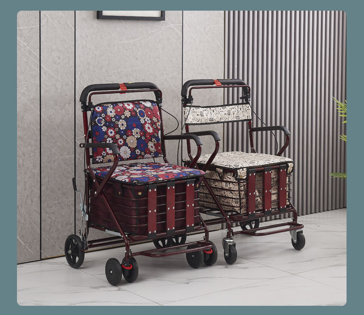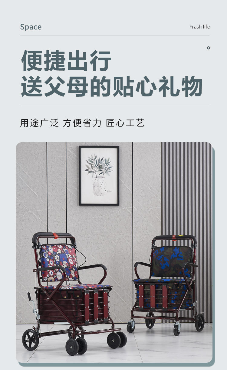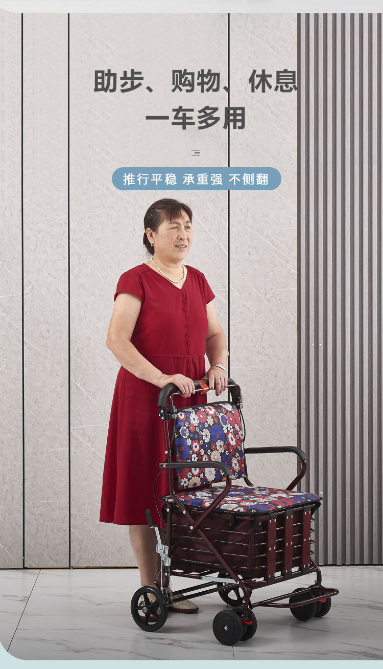 老人代步车可推可坐四轮手推车折叠助步家用买菜车便携老年小推车