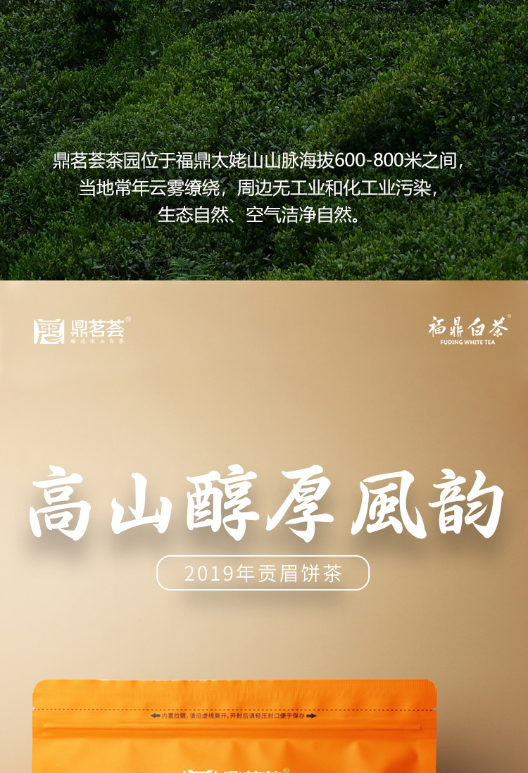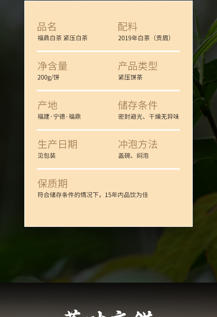 鼎茗荟丨贡眉 福鼎老白茶 巧克力饼 2019年 200g