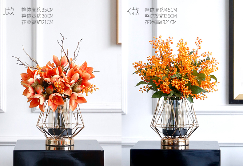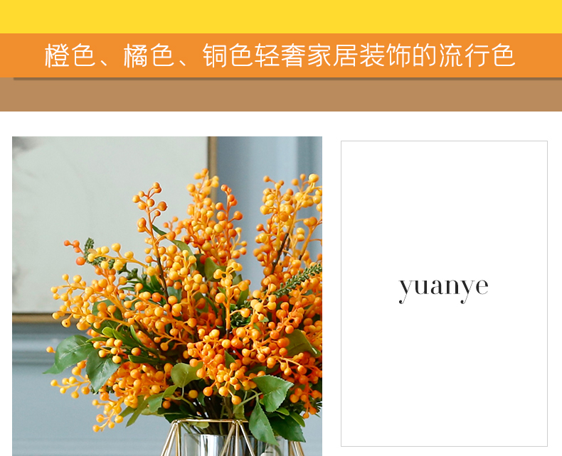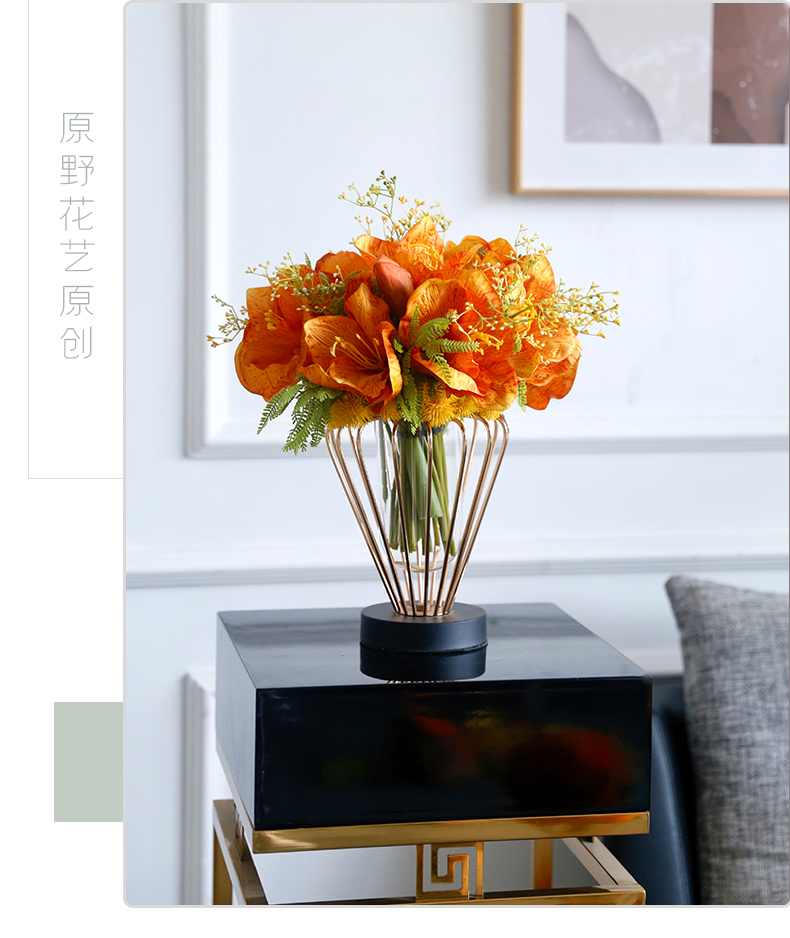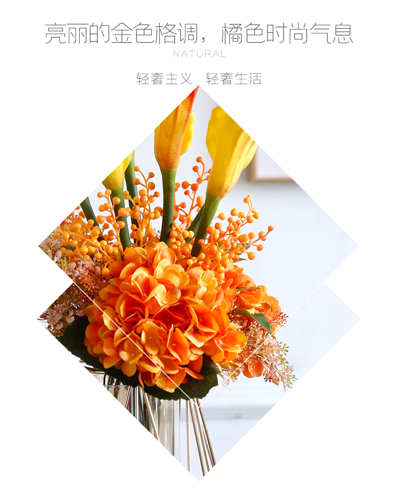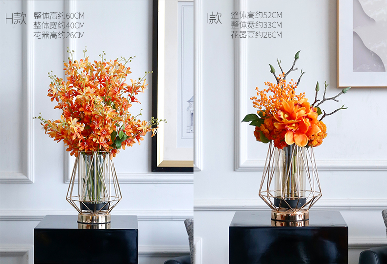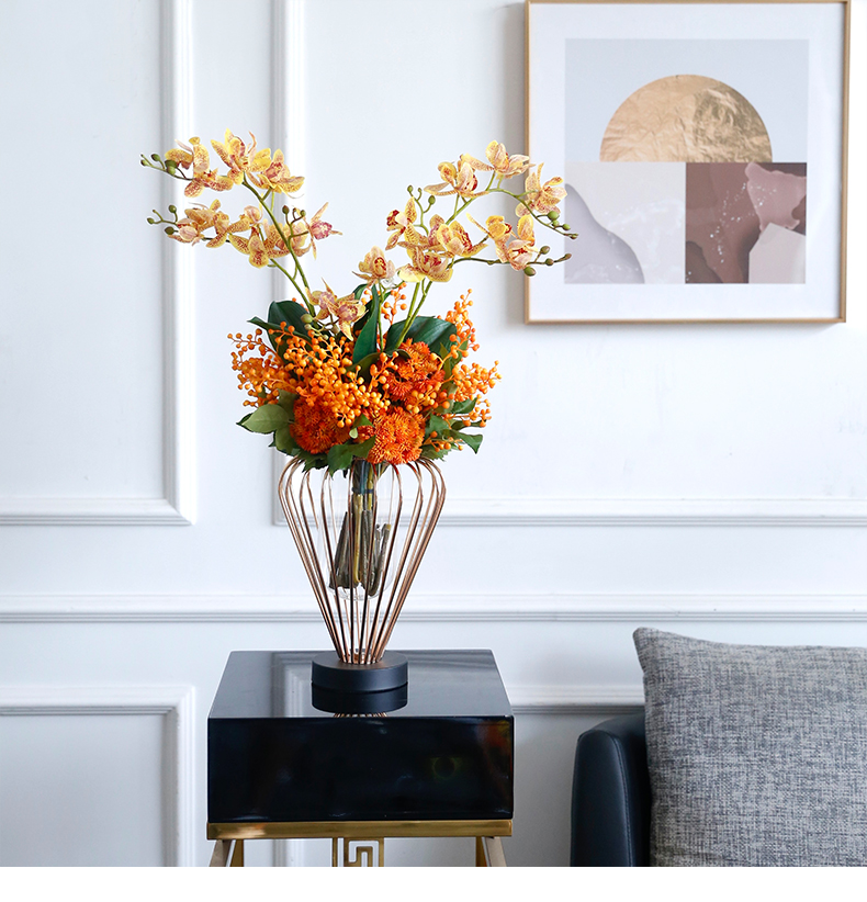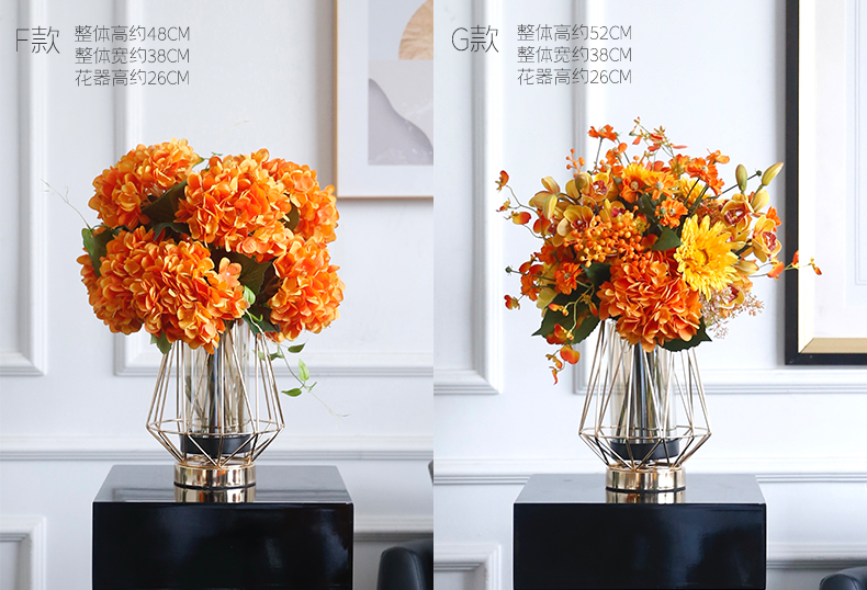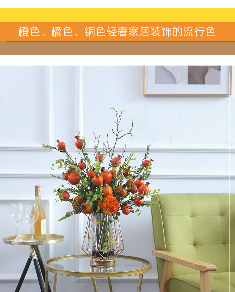 高档轻奢仿真花绢花玄关酒店前吧台茶几橘橙金铜色花器瓶样板间房