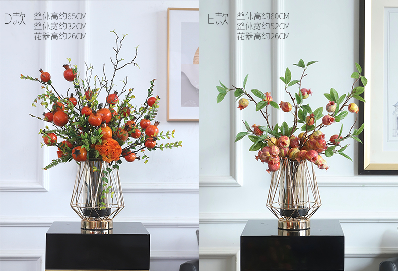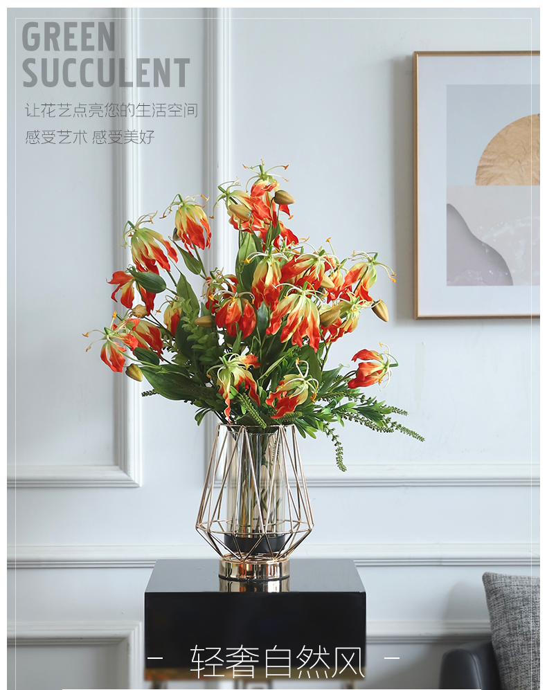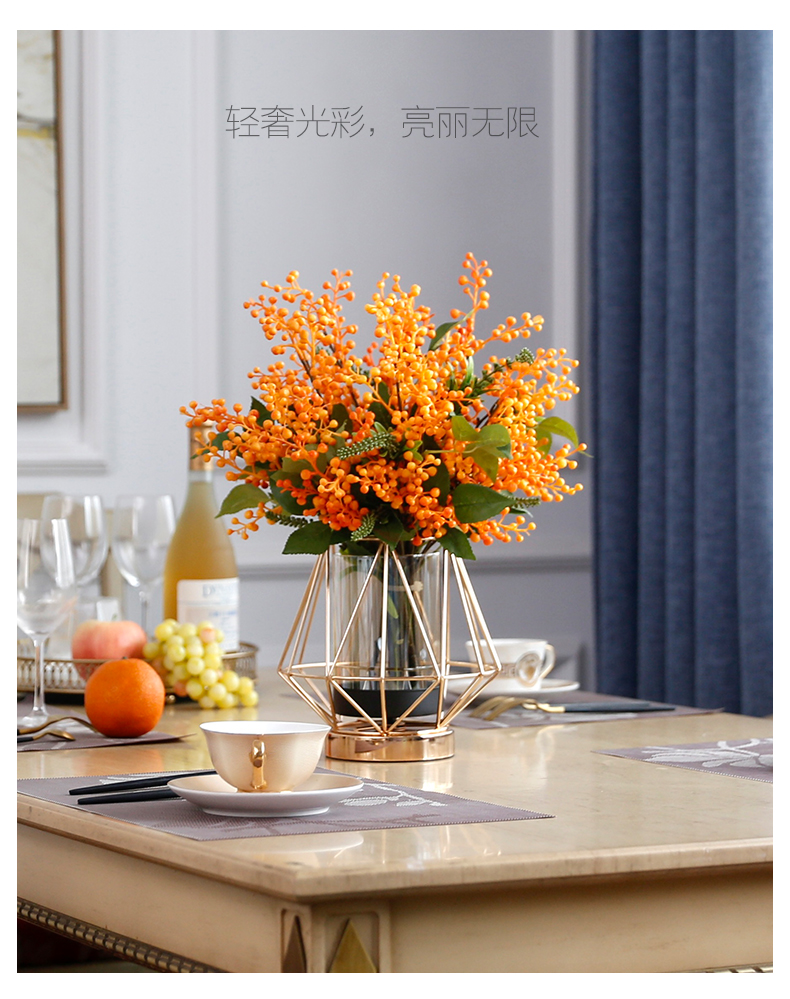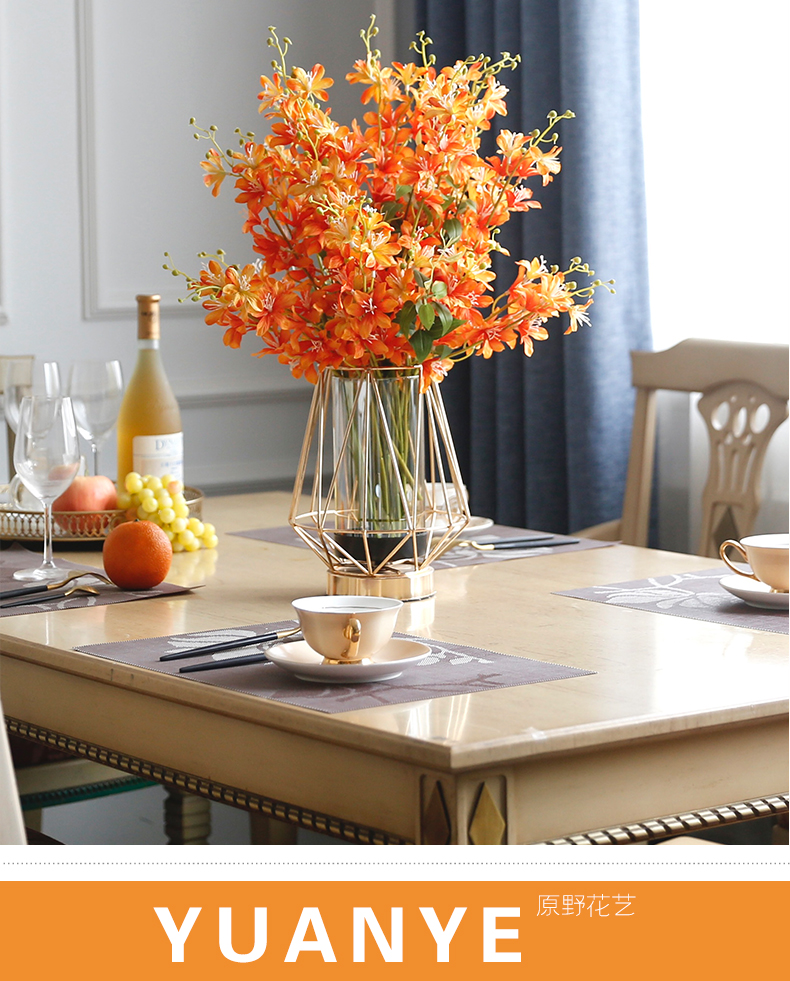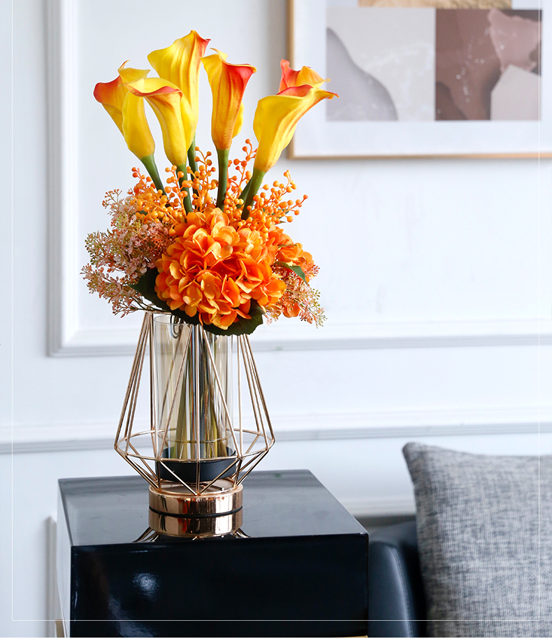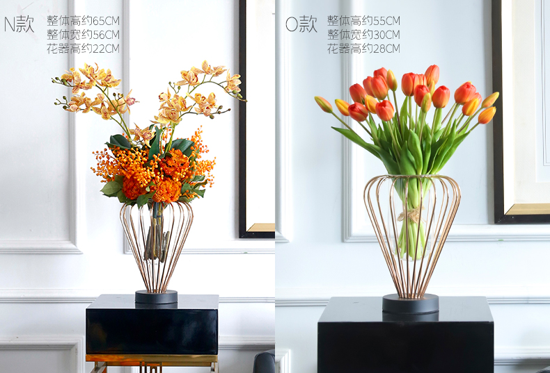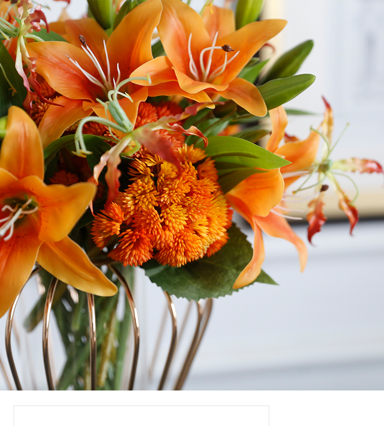 高档轻奢仿真花绢花玄关酒店前吧台茶几橘橙金铜色花器瓶样板间房