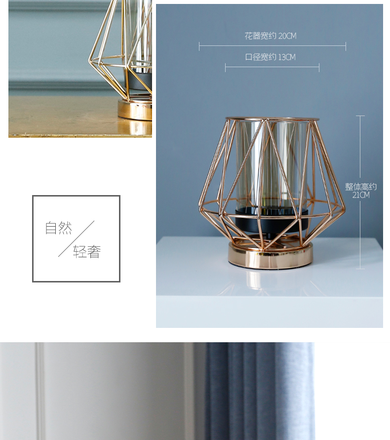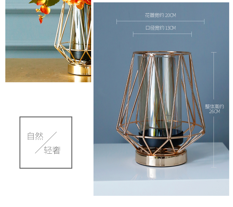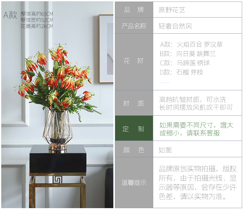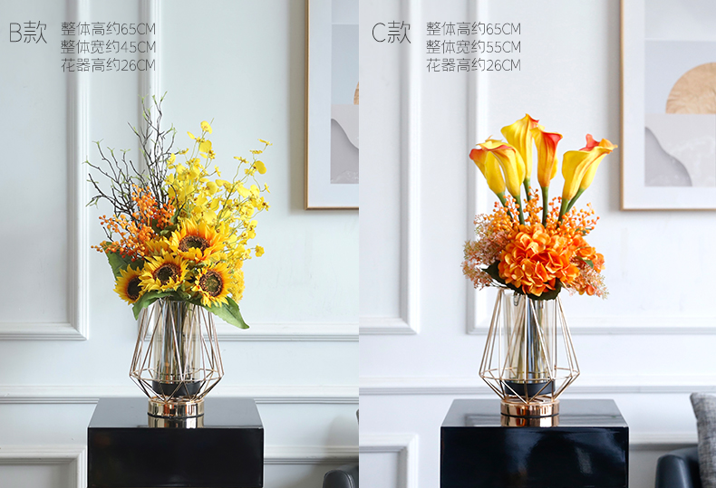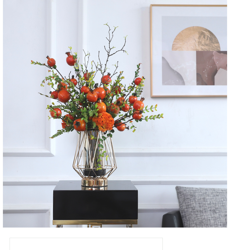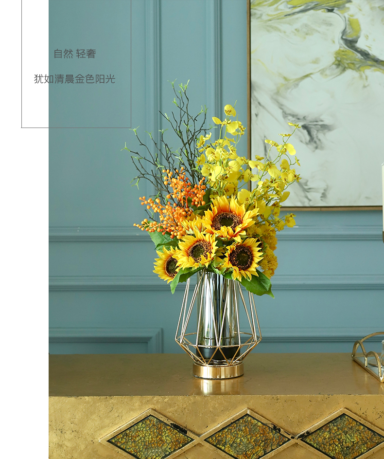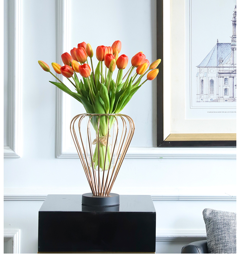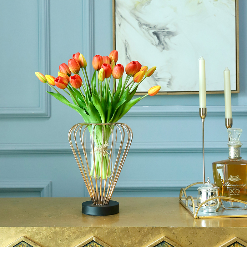 高档轻奢仿真花绢花玄关酒店前吧台茶几橘橙金铜色花器瓶样板间房