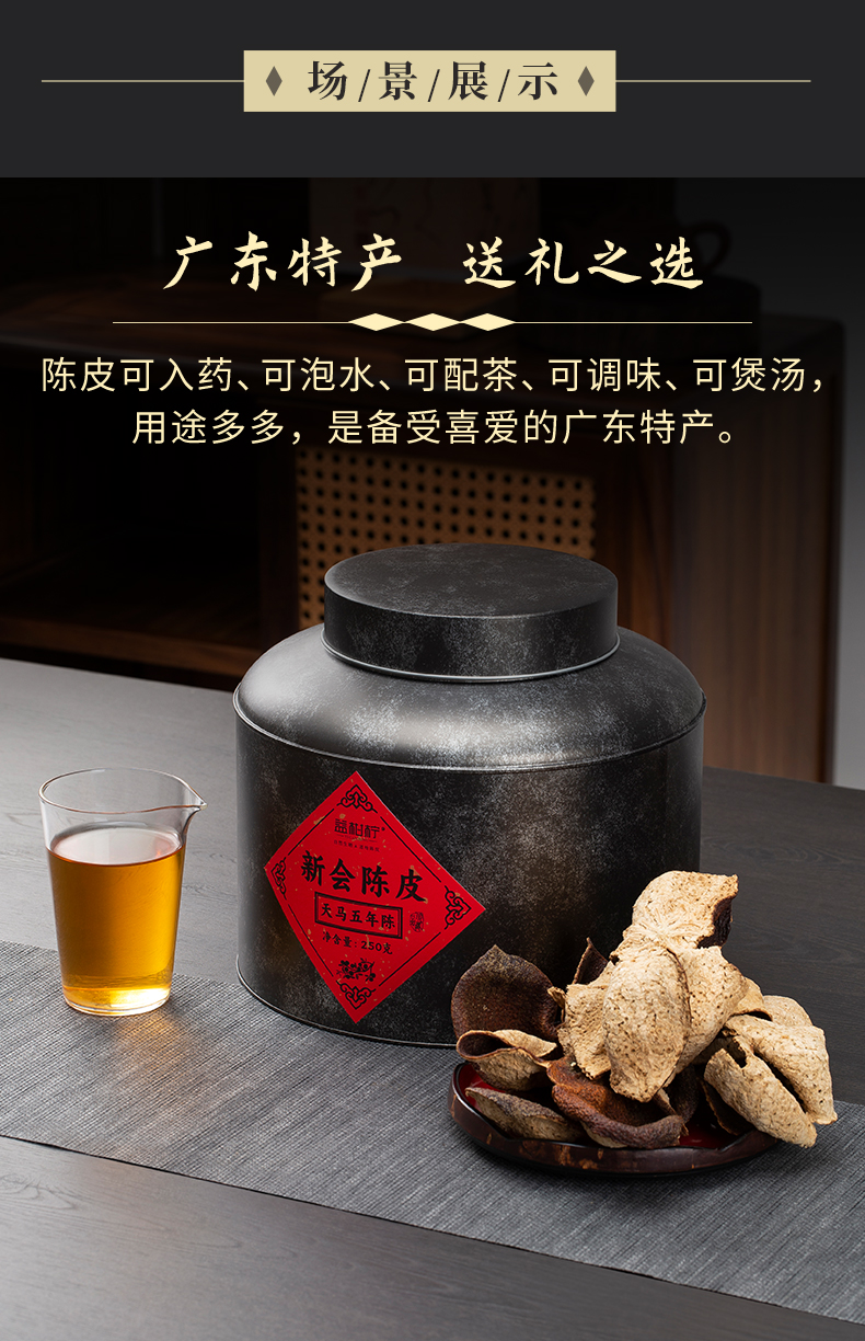 益柑柠丨新会陈皮 天马五年陈 精品陈皮 250g 滋味醇甜 道地陈皮 片片精选 收藏自饮品鉴