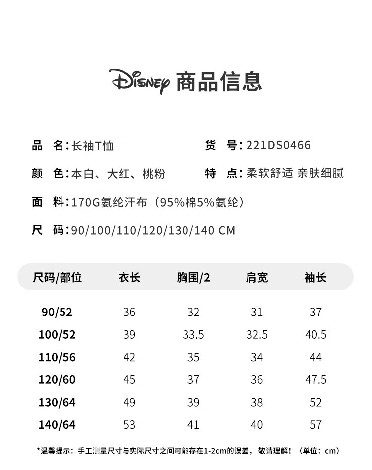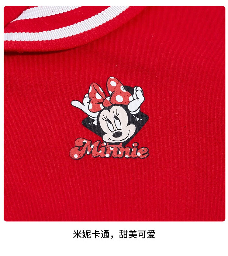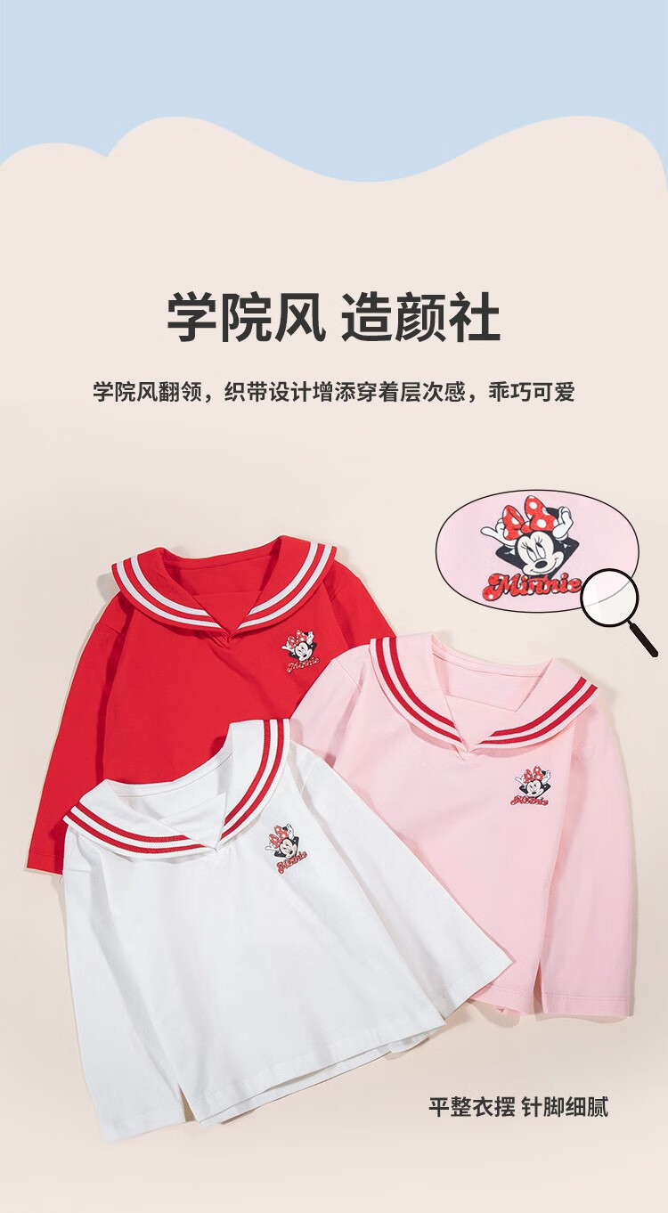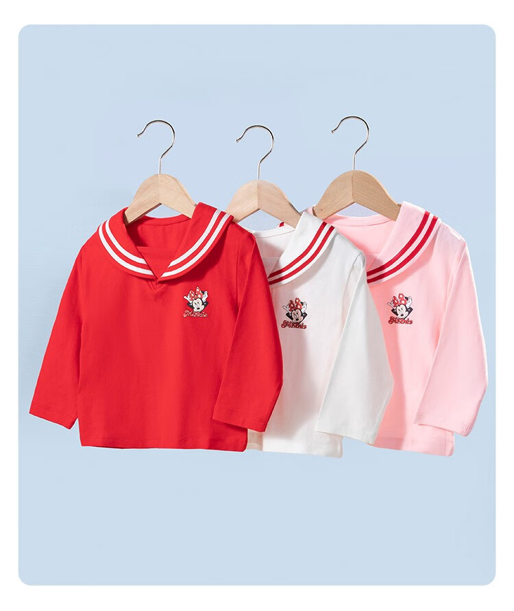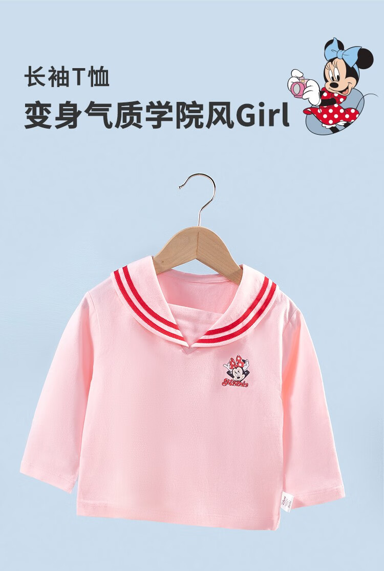【商场同款】迪士尼童装女童长袖T恤条纹翻领海军学院风气质上衣粉白红米妮潮221DS0466