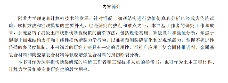 混凝土细观损伤断裂数值模拟/黄宇劼,张慧著 中国建材工业出版社,2024ISBN 9787516042533