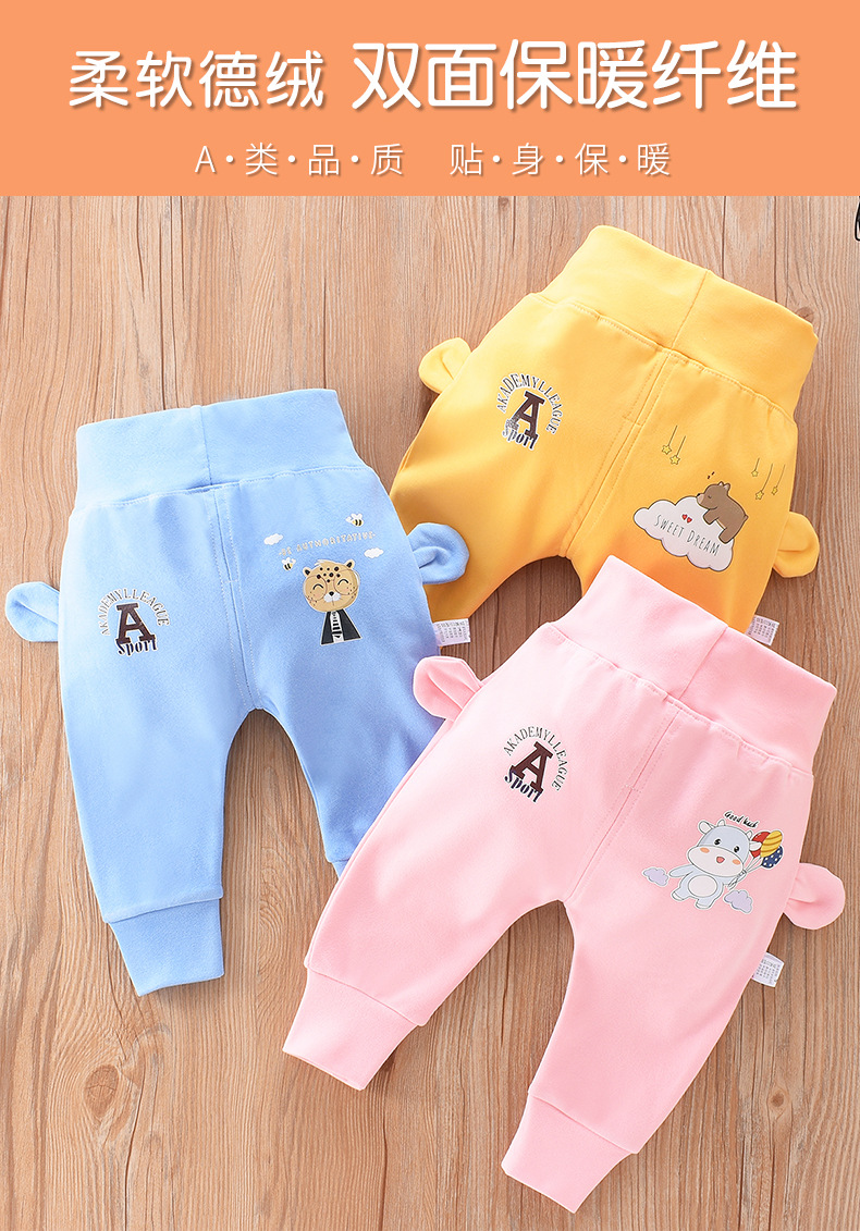【宝宝双面绒PP长裤】儿童德绒裤子可开档宝宝春秋pp裤婴幼儿外穿高腰护肚长裤保暖童裤