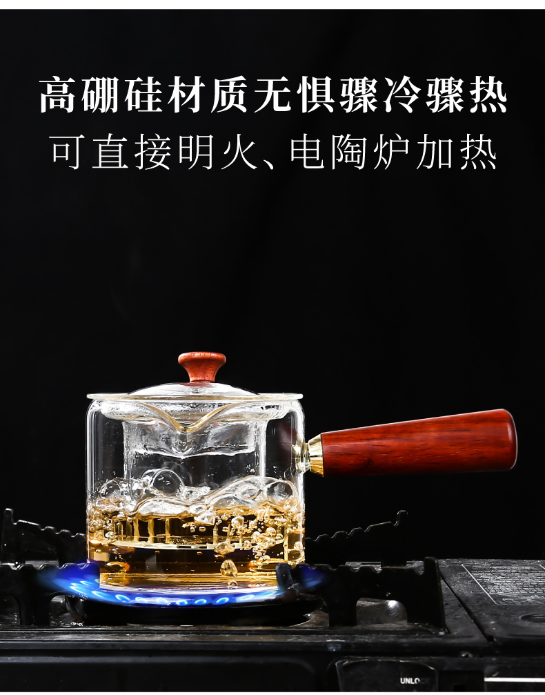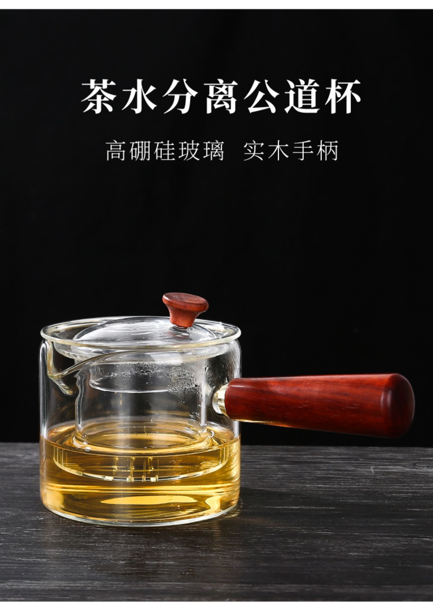 永利汇玻璃公道茶滤一体茶漏侧把分茶器茶具泡茶壶煮茶水分离杯