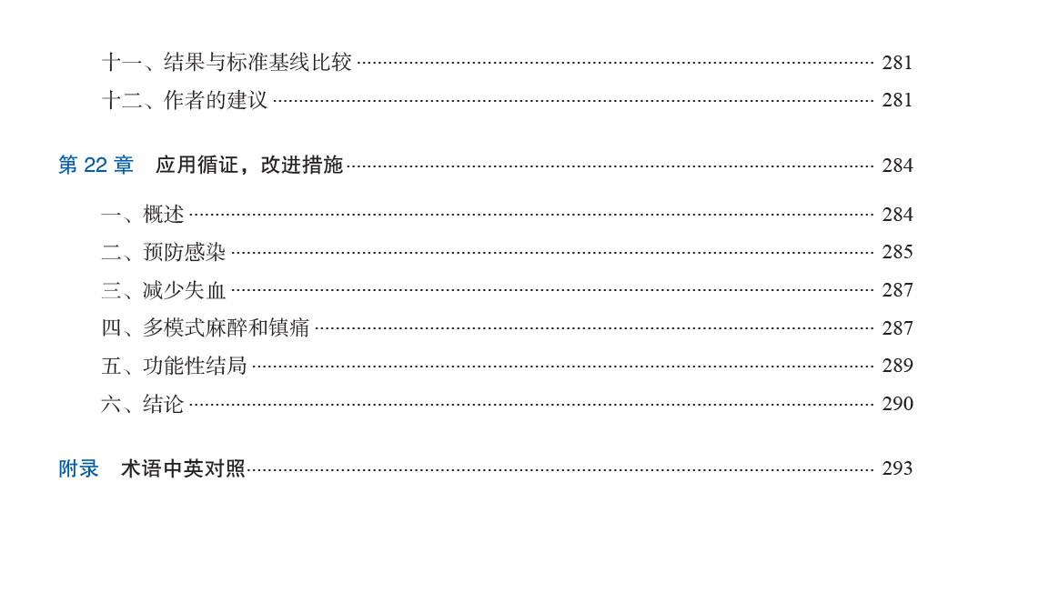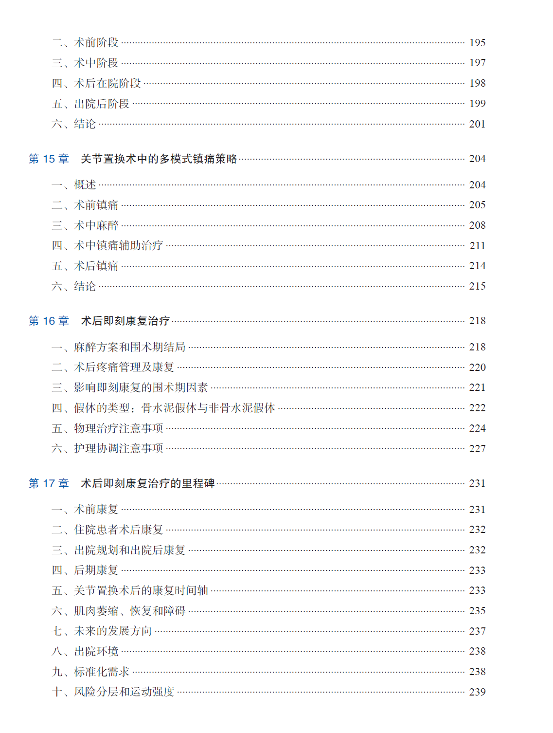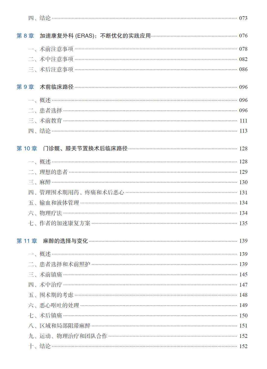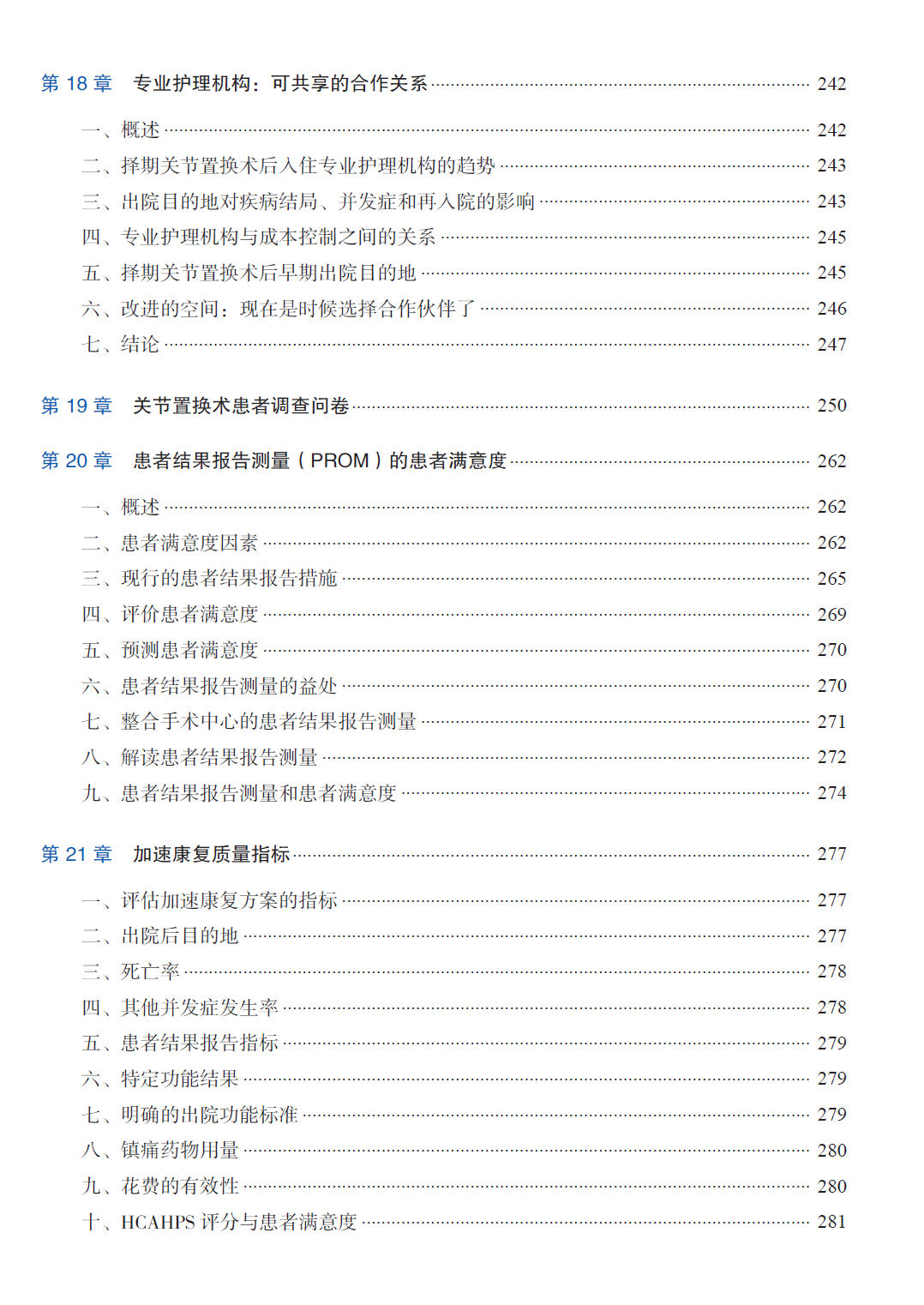 全书共22章,全方位介绍了关节置换术加速康复现况、费用支付模式、策略及进展,医院对关节置换术加速康复的支持及流程优化,关节置换患者加速康复领域的质量管控及改进措施等方面的内容:详细论述了加速康复背景下患者的风险评估及筛选,关节置换术加速康复临床路径及提高效率的有效措施、患者术后康复措施及效果提升等内容;涵盖了该领域临床研究的最新进展,同时解答了医师及患者关注较多的问题,如现阶段医院如何为加速康复背景下的关节置换手术提供应有的流程、后勤支持,医护人员应如何提升自己的加速康复患者的照护能力,哪类关节置换患者适合加速康复,如何确保康复背景下关节置换患者的安全,如何持续开展关节置换患者加速康复领域的质量改进,如何在加速康复背景下将关节置换与医疗保险有机结合等。