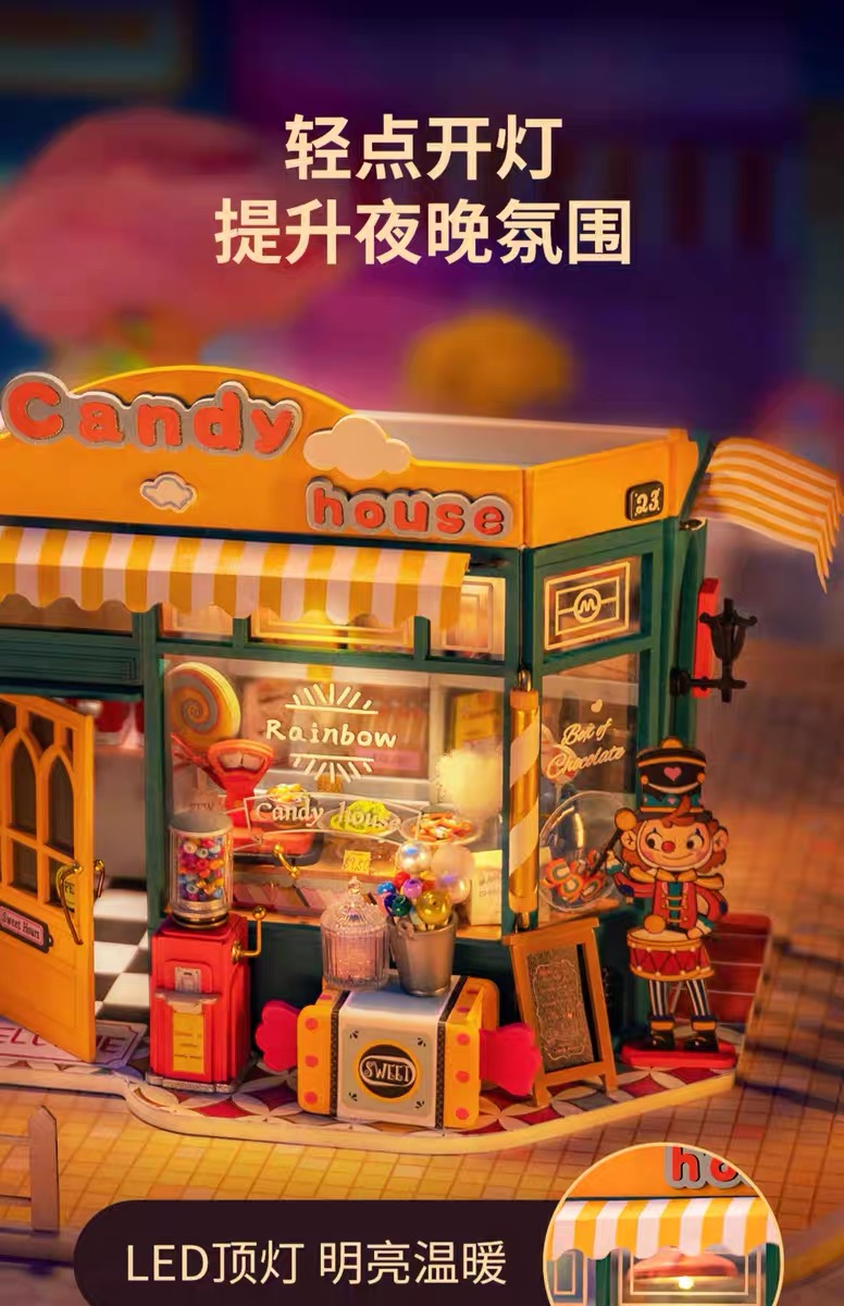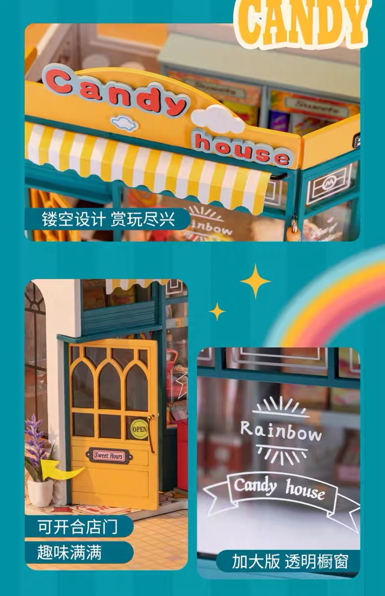 若来(RoLife)彩虹糖果屋diy小屋创意小店房子木质拼装模型cj