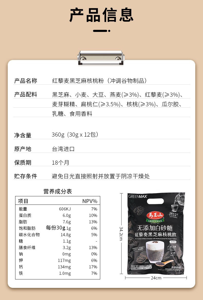 现货台湾马玉山黑芝麻糊山药黑芝麻糊360g/32种坚果籽谷豆粉