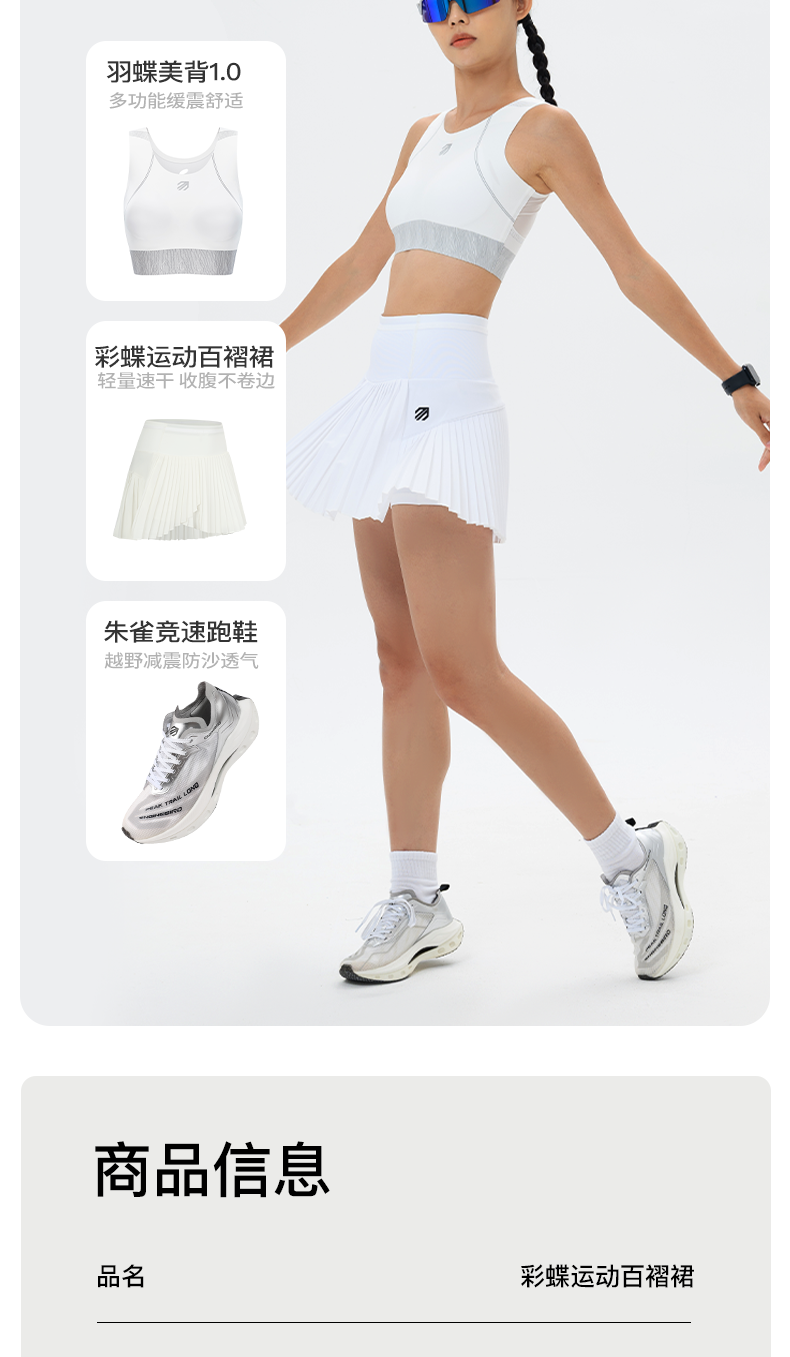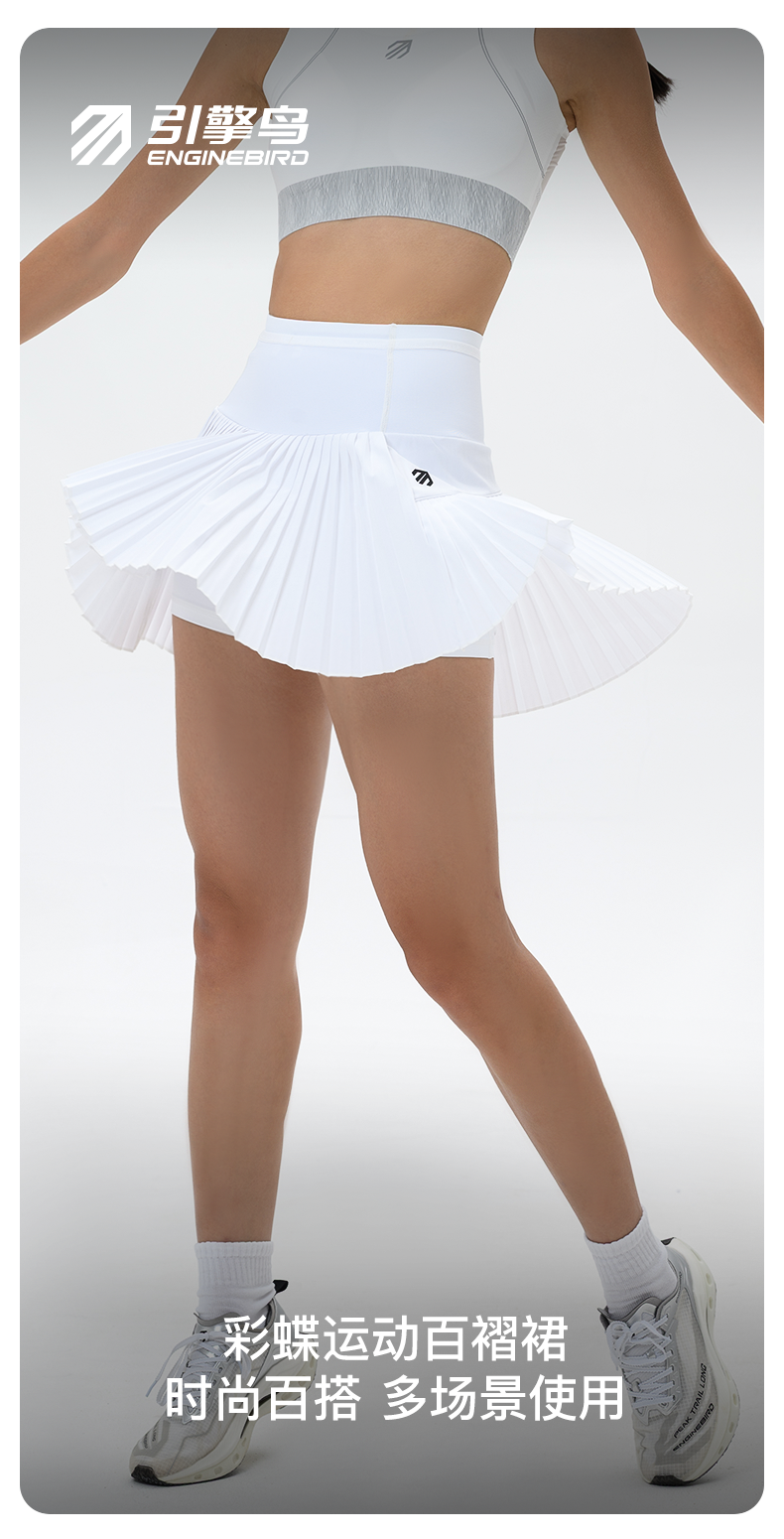 引擎鸟彩蝶运动百褶裙跑步健身短裙半身裙裤