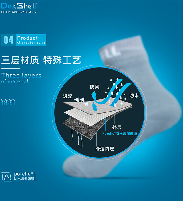 戴适 拒绝湿足 一对防水透湿的袜子【轻薄款】JX100