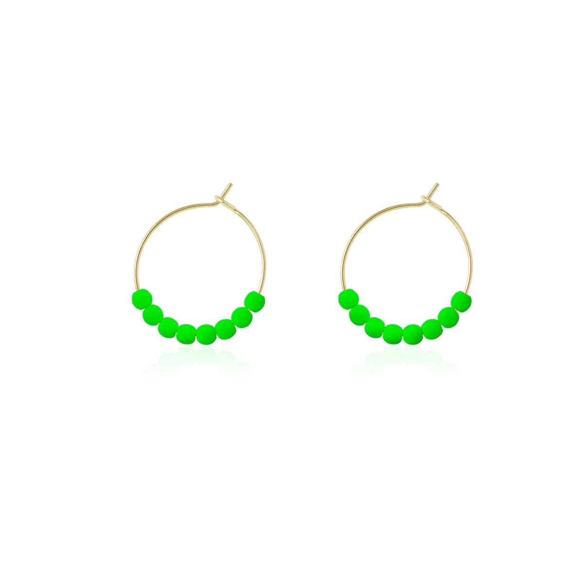 北京仓|La môme bijou-CRÉOLES-霓虹 绿色珠 Mini 耳环[法国设计师]