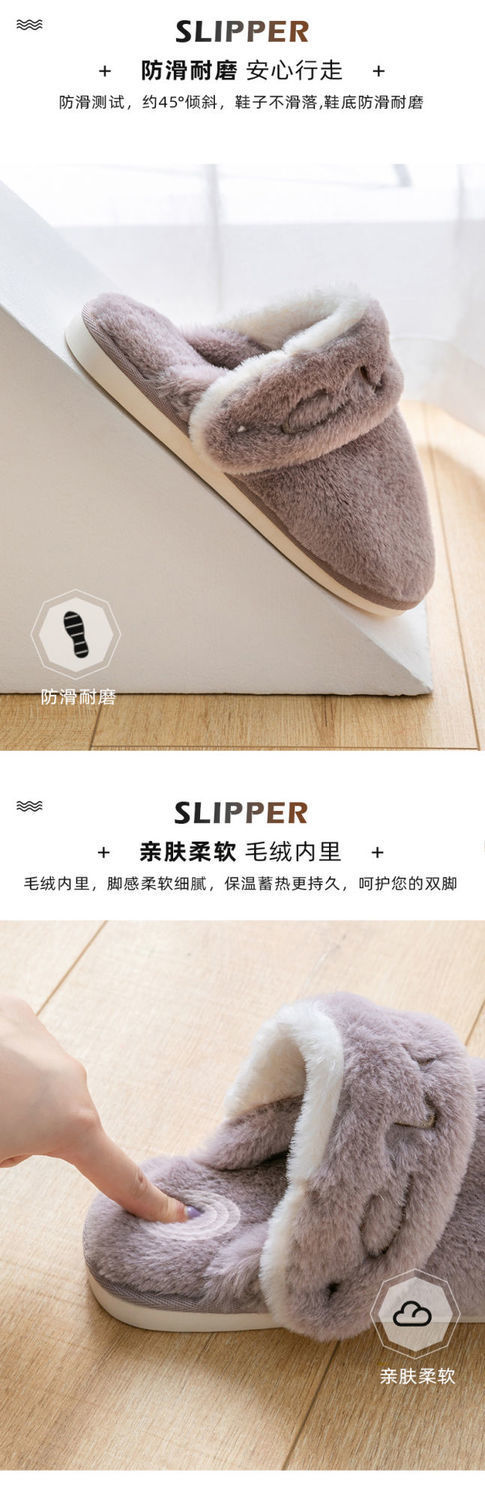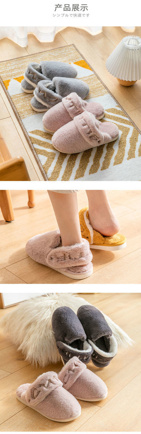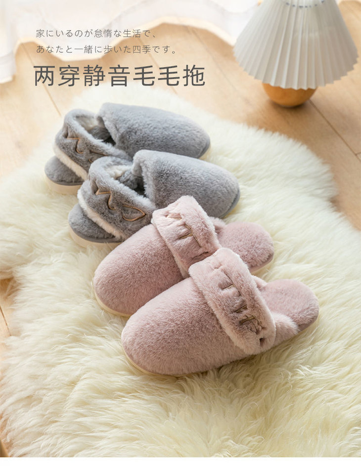 两穿日式秋冬棉拖鞋女室内家居静音毛绒拖鞋