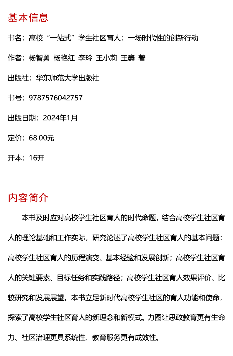 高校“一站式”学生社区育人 一场时代性的创新行动 杨智勇等著