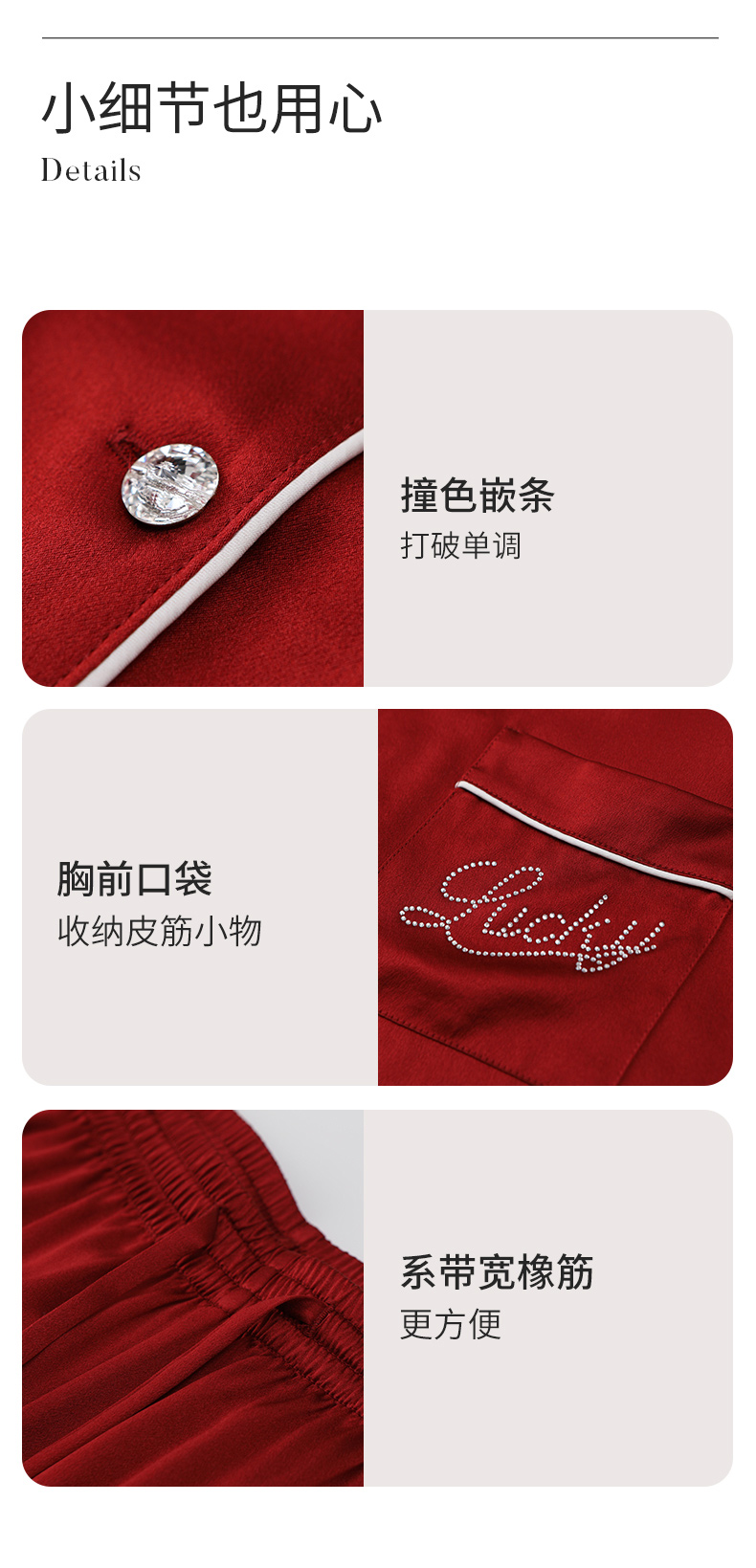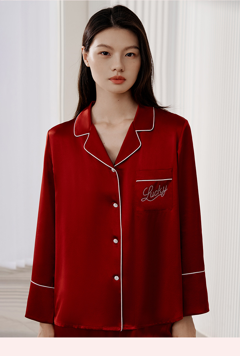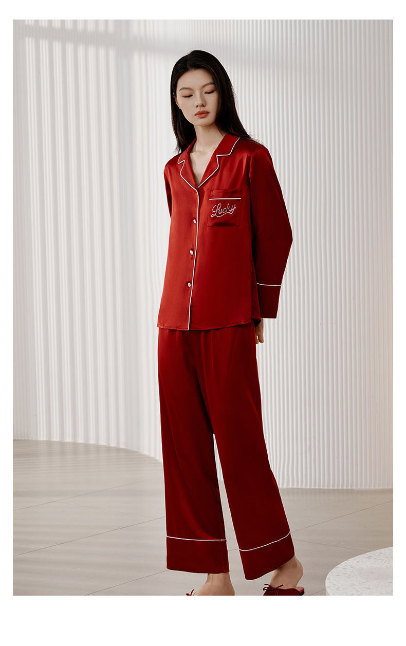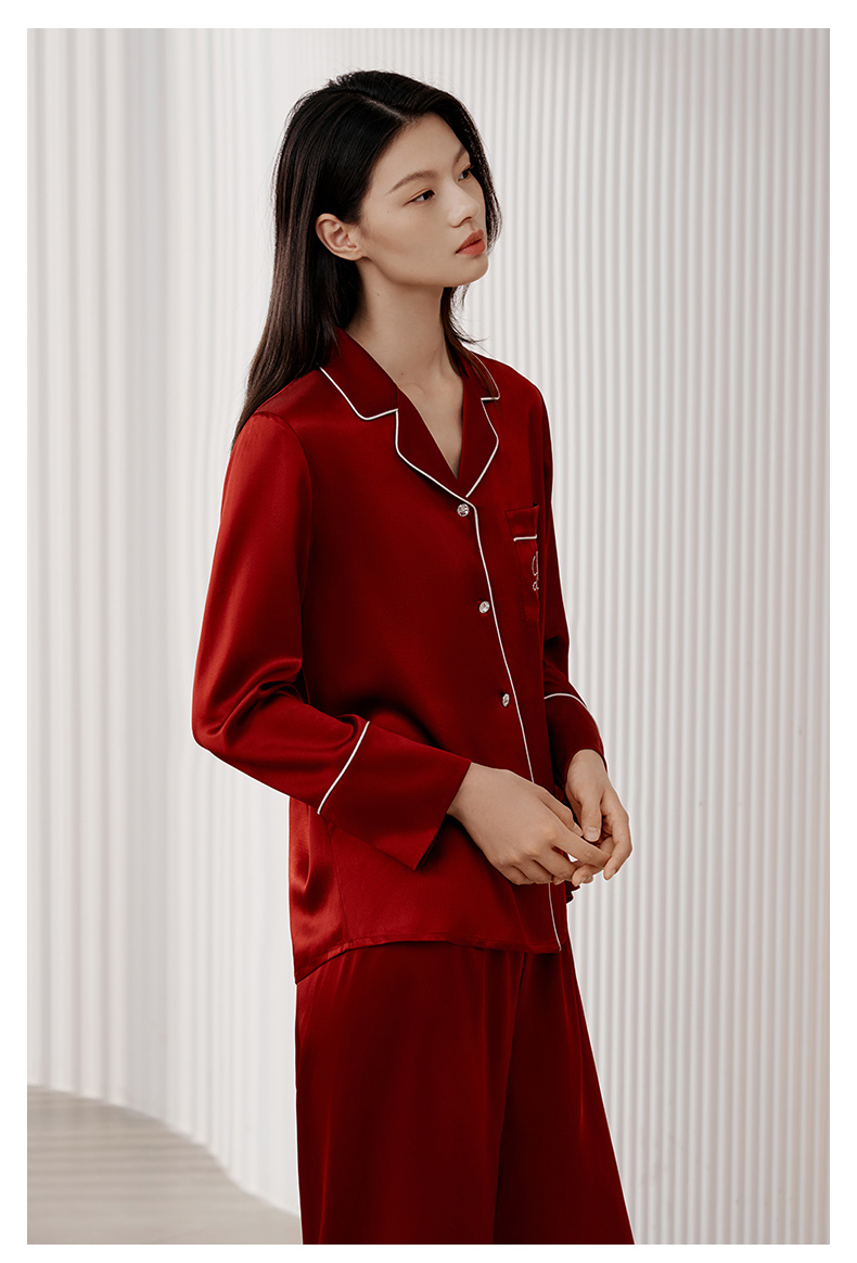 【送礼物】22姆米真丝睡衣女100%桑蚕丝红色烫砖婚庆家居服金三塔 YSFFD207