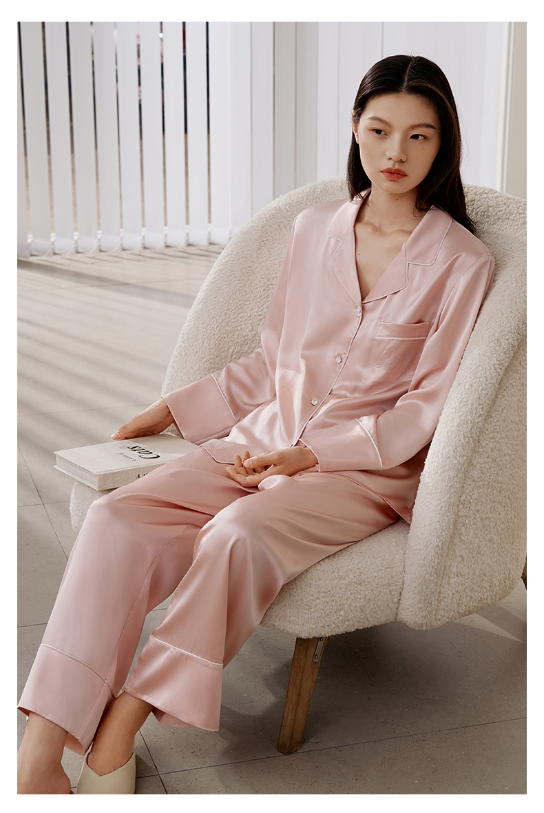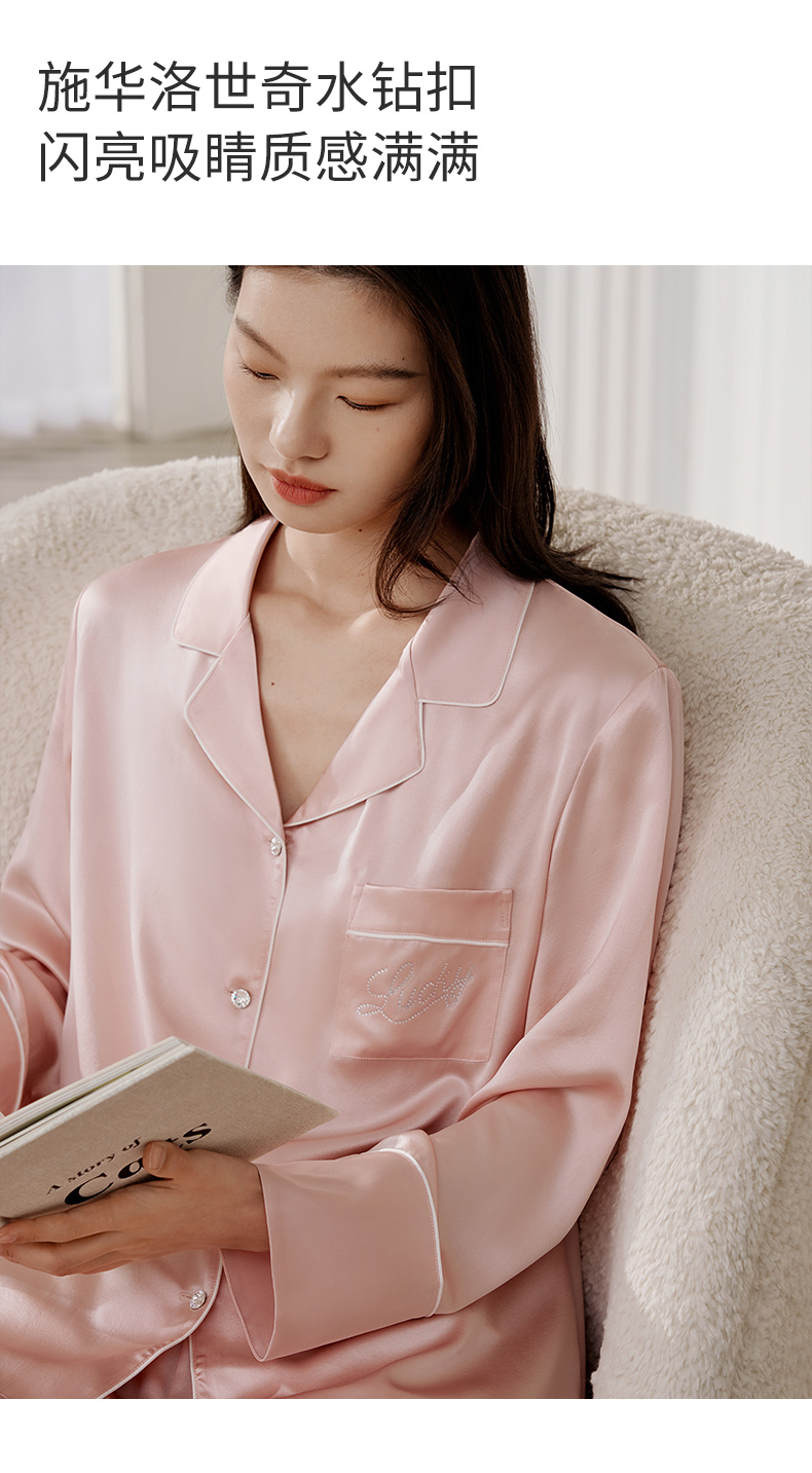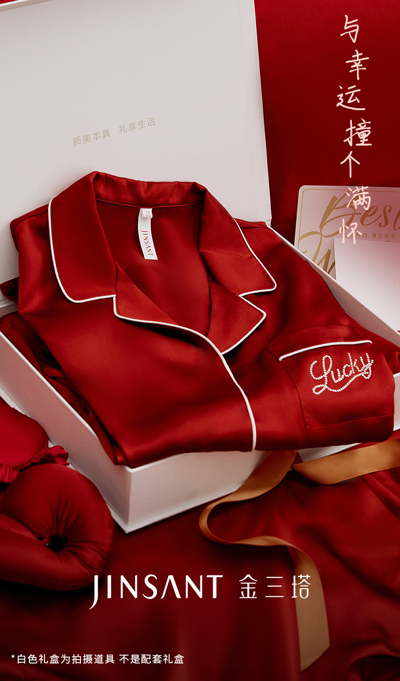 【送礼物】22姆米真丝睡衣女100%桑蚕丝红色烫砖婚庆家居服金三塔 YSFFD207
