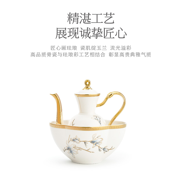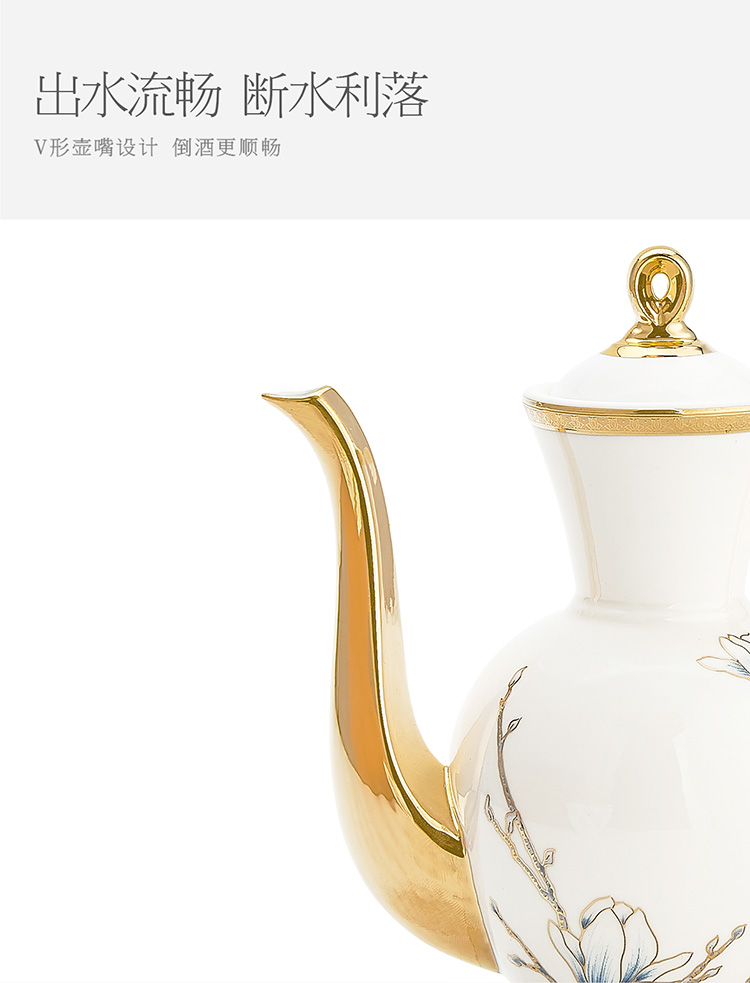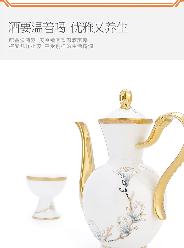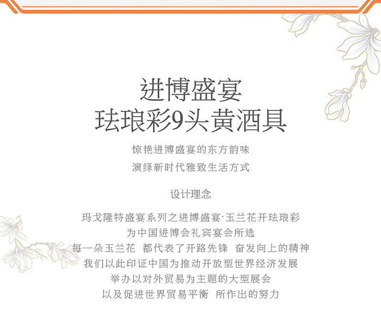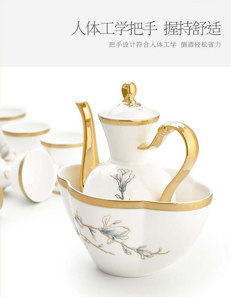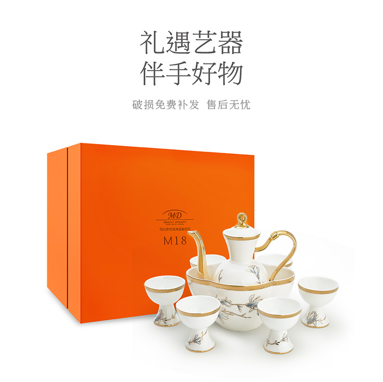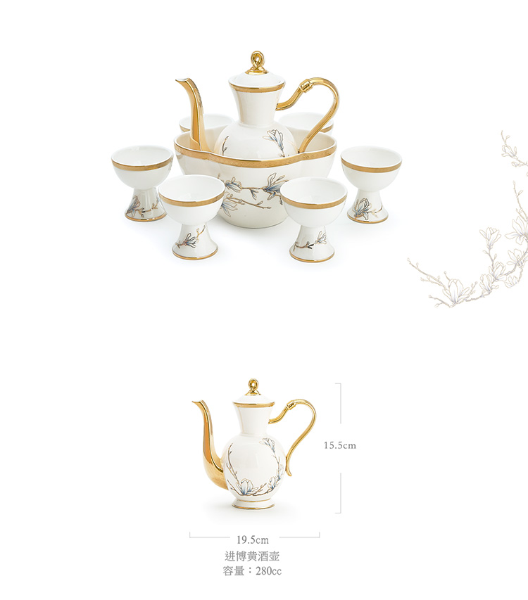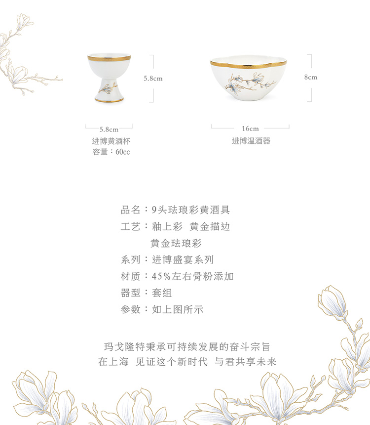 【6F】玛戈隆特 进博盛宴9头酒具套装 6人份骨瓷珐琅彩家用黄酒具酒杯套装 礼盒包装