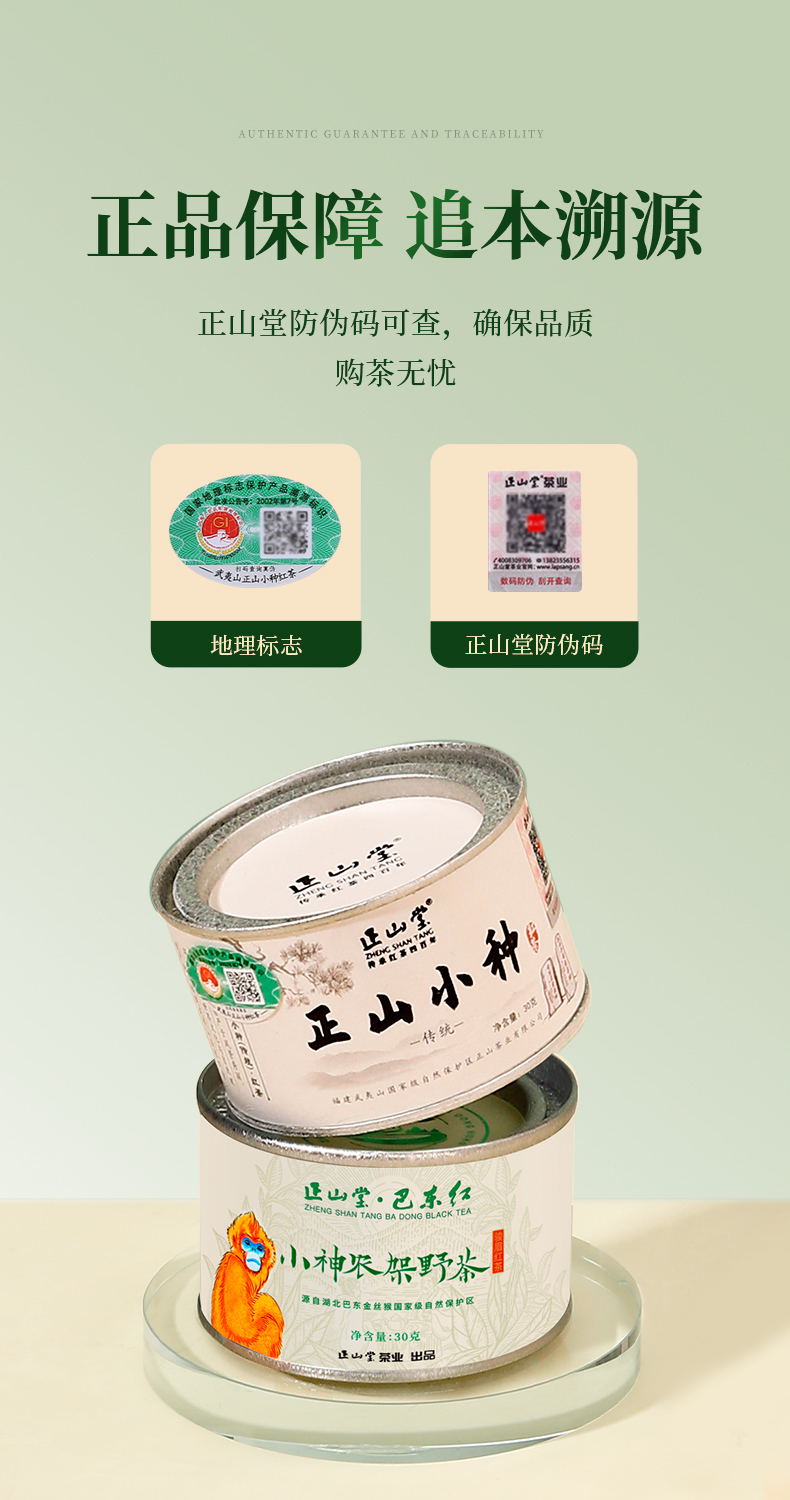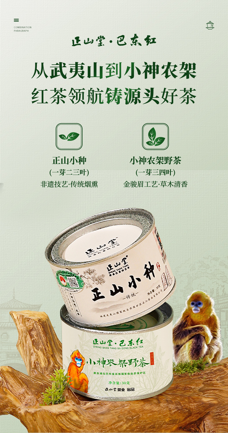 正山堂 传统正山小种红茶小神农架野茶特级组合装 罐装60g/100g/200g