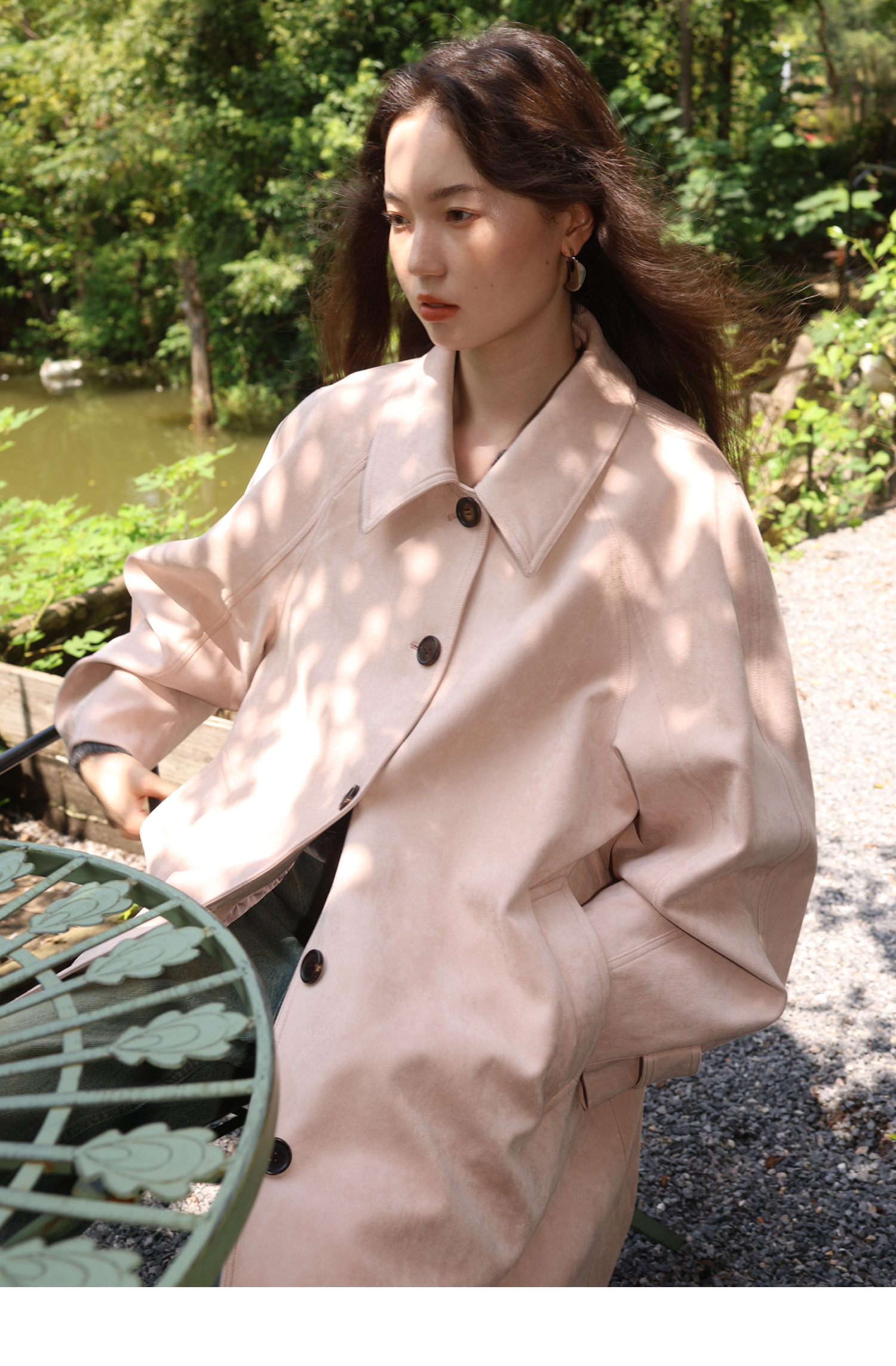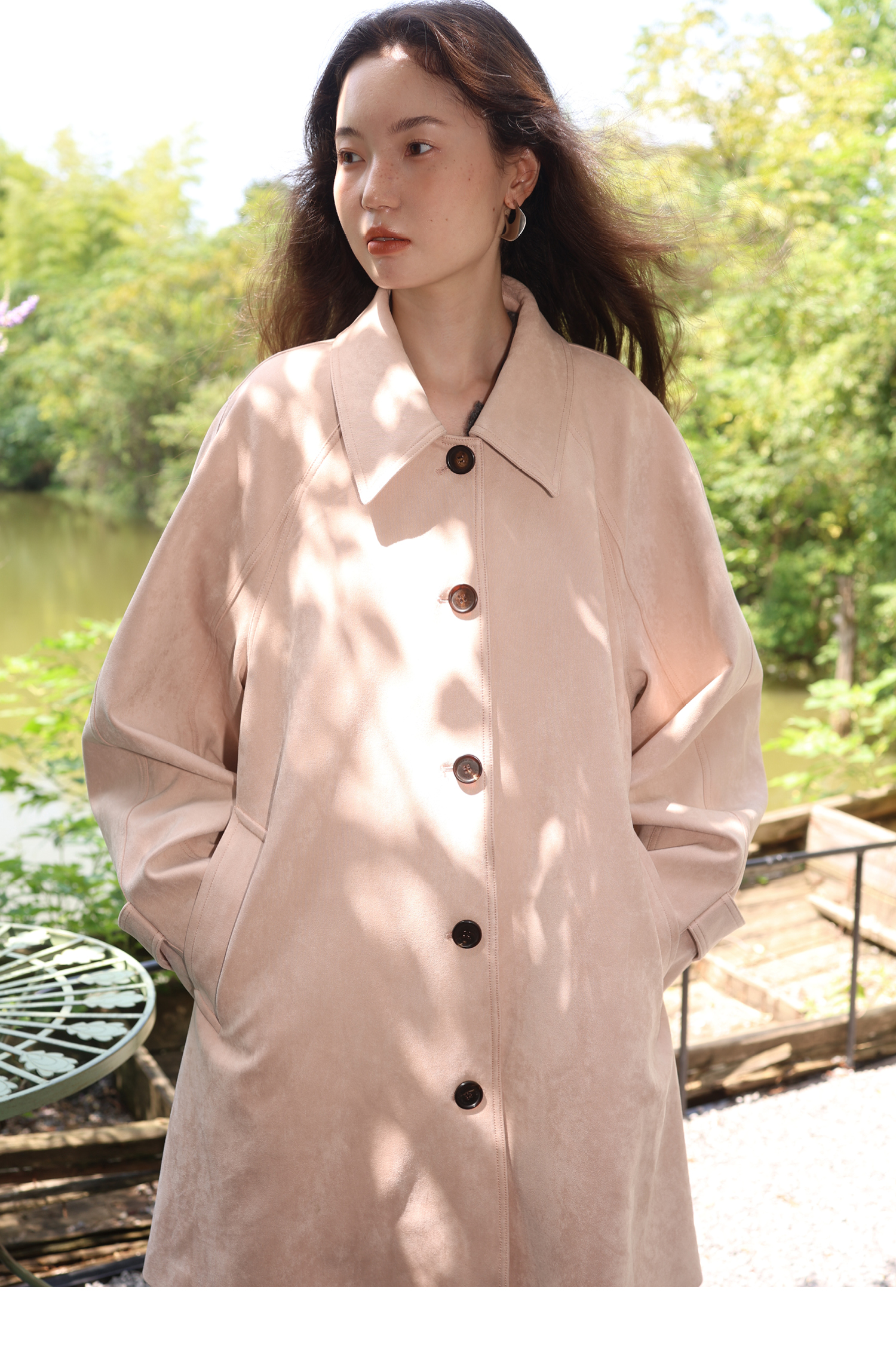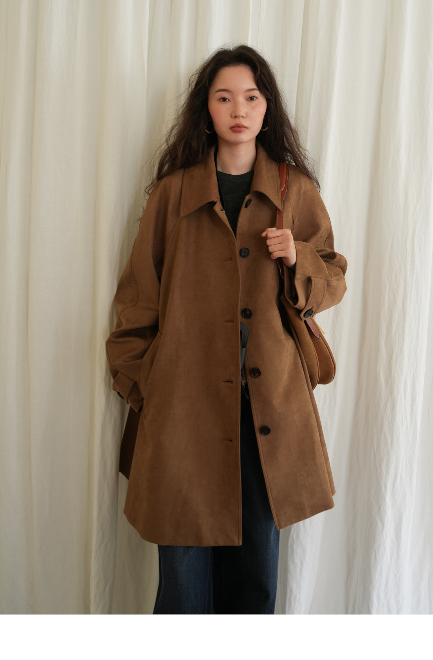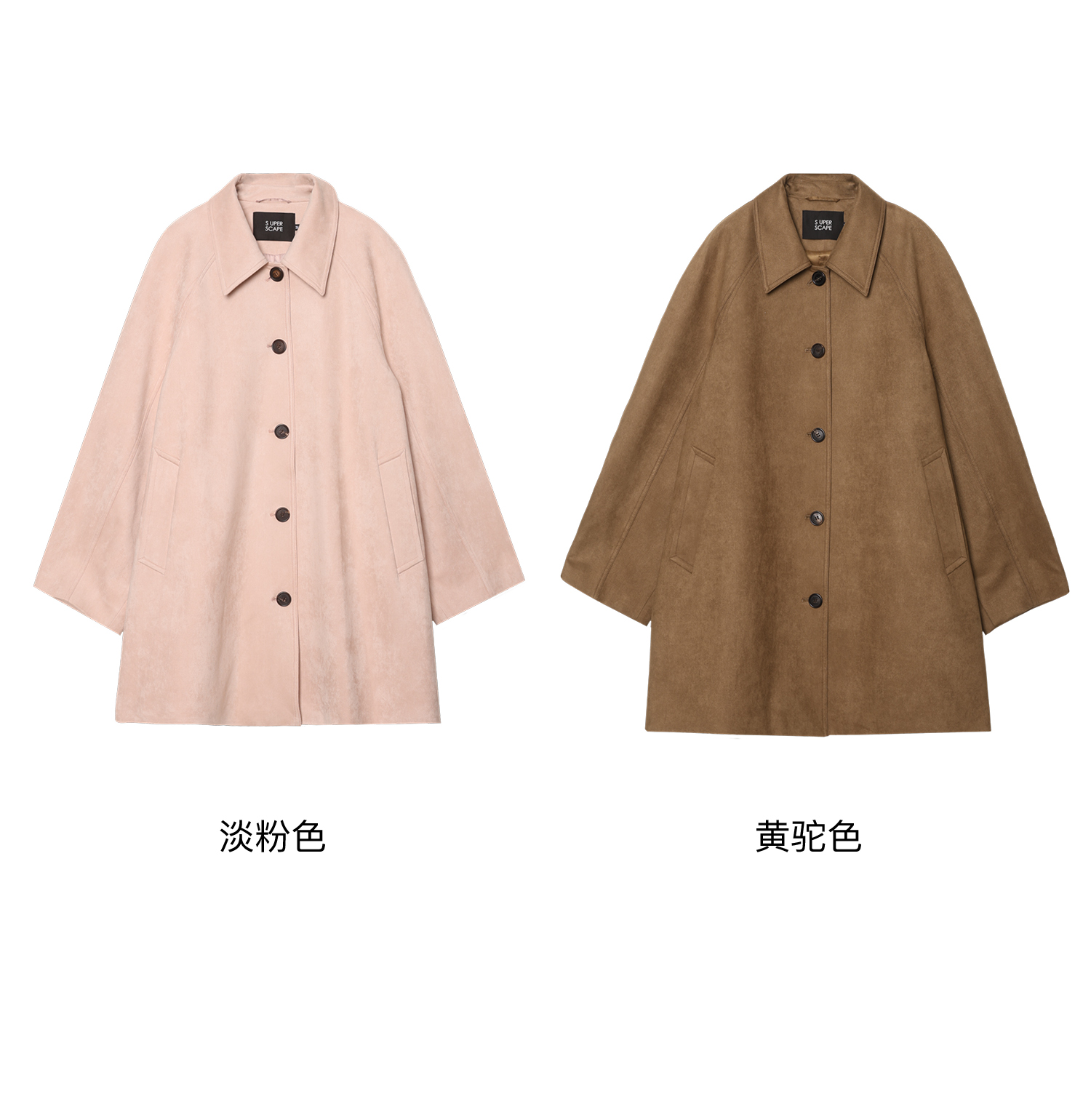 【8/25新品】素舶 麂皮绒雾面柔软高级感翻领A字伞摆宽松廓形风衣外套