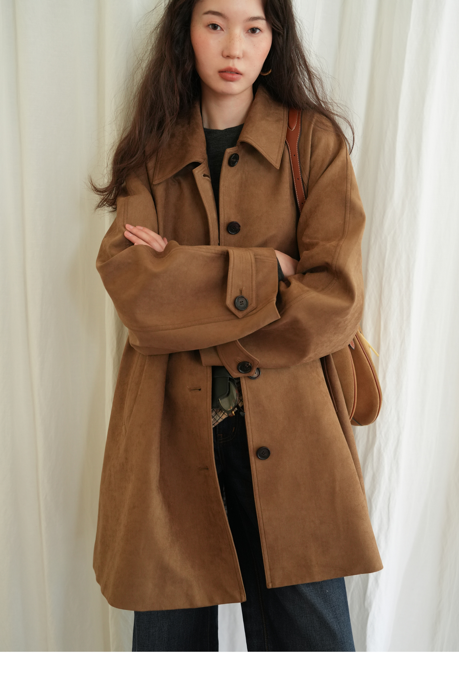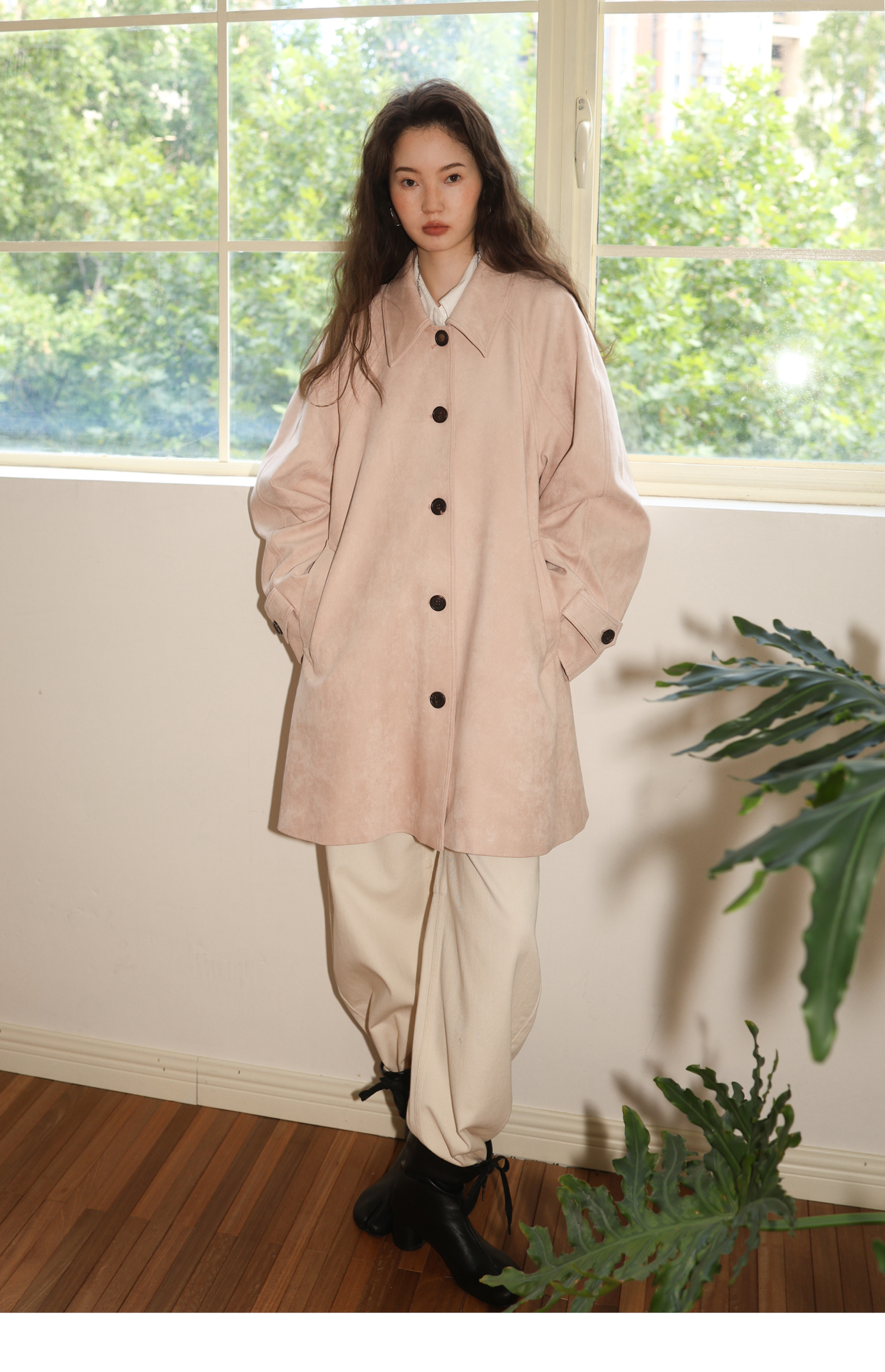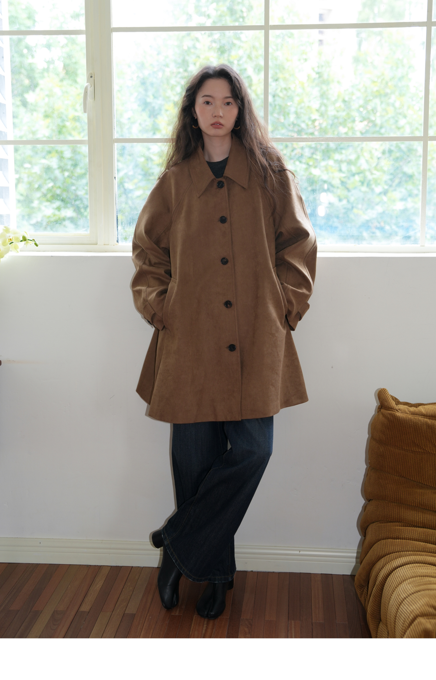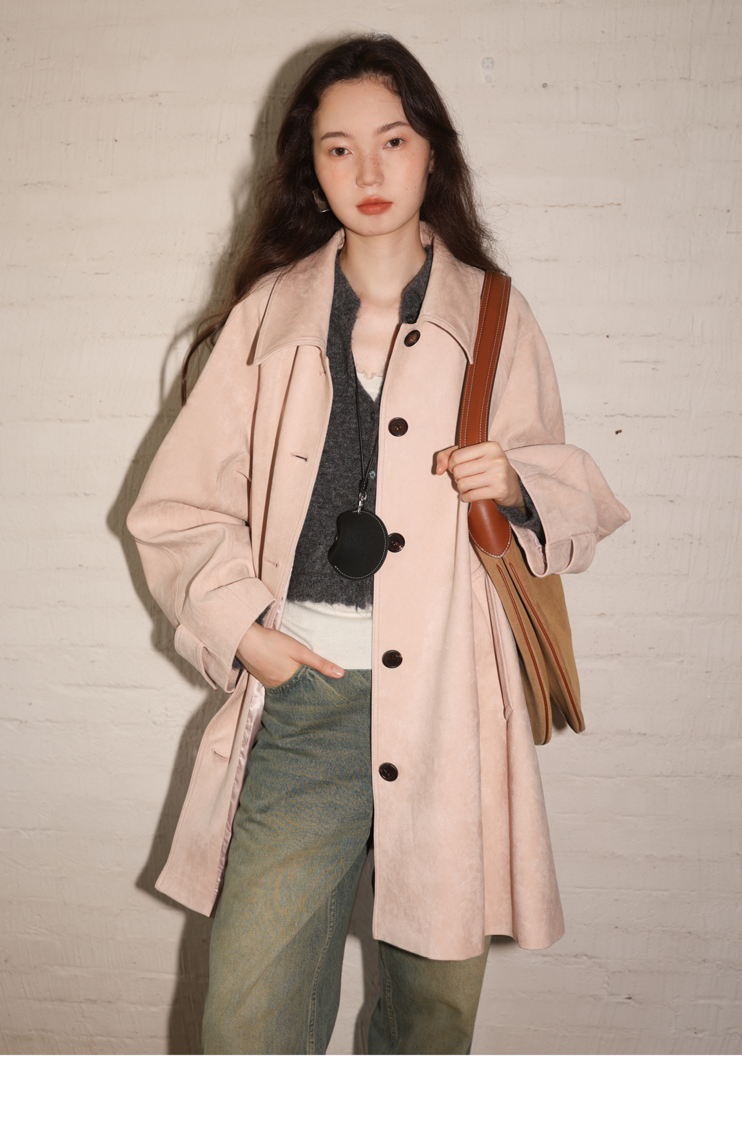 【8/25新品】素舶 麂皮绒雾面柔软高级感翻领A字伞摆宽松廓形风衣外套