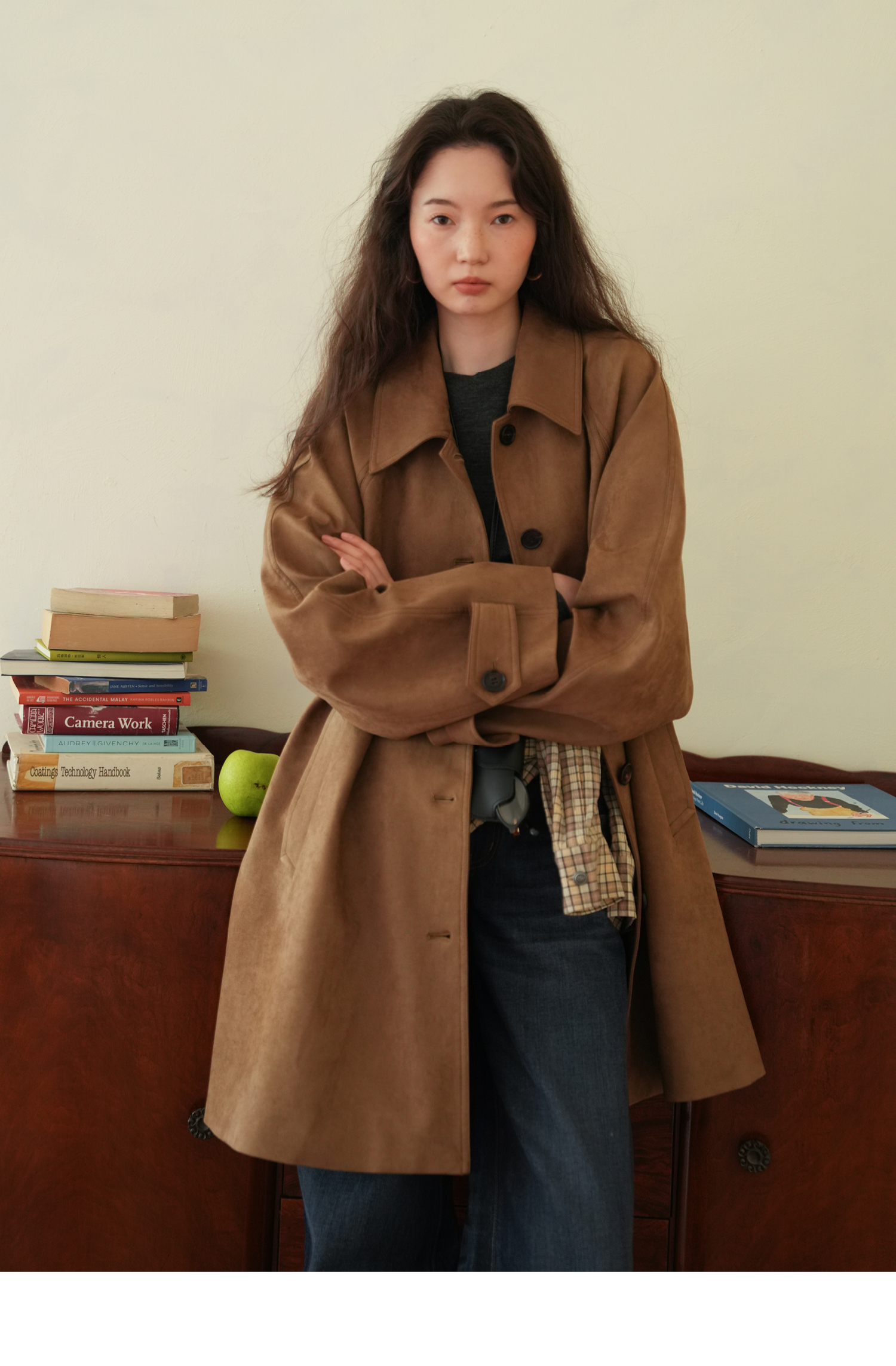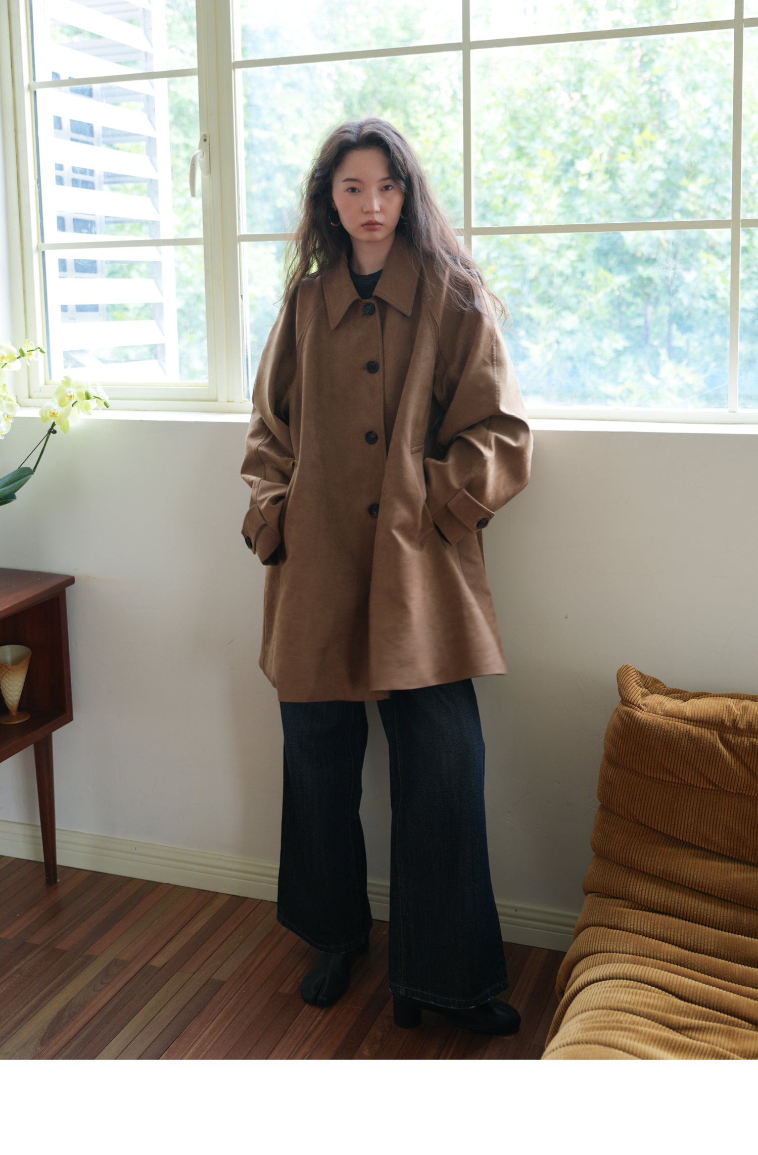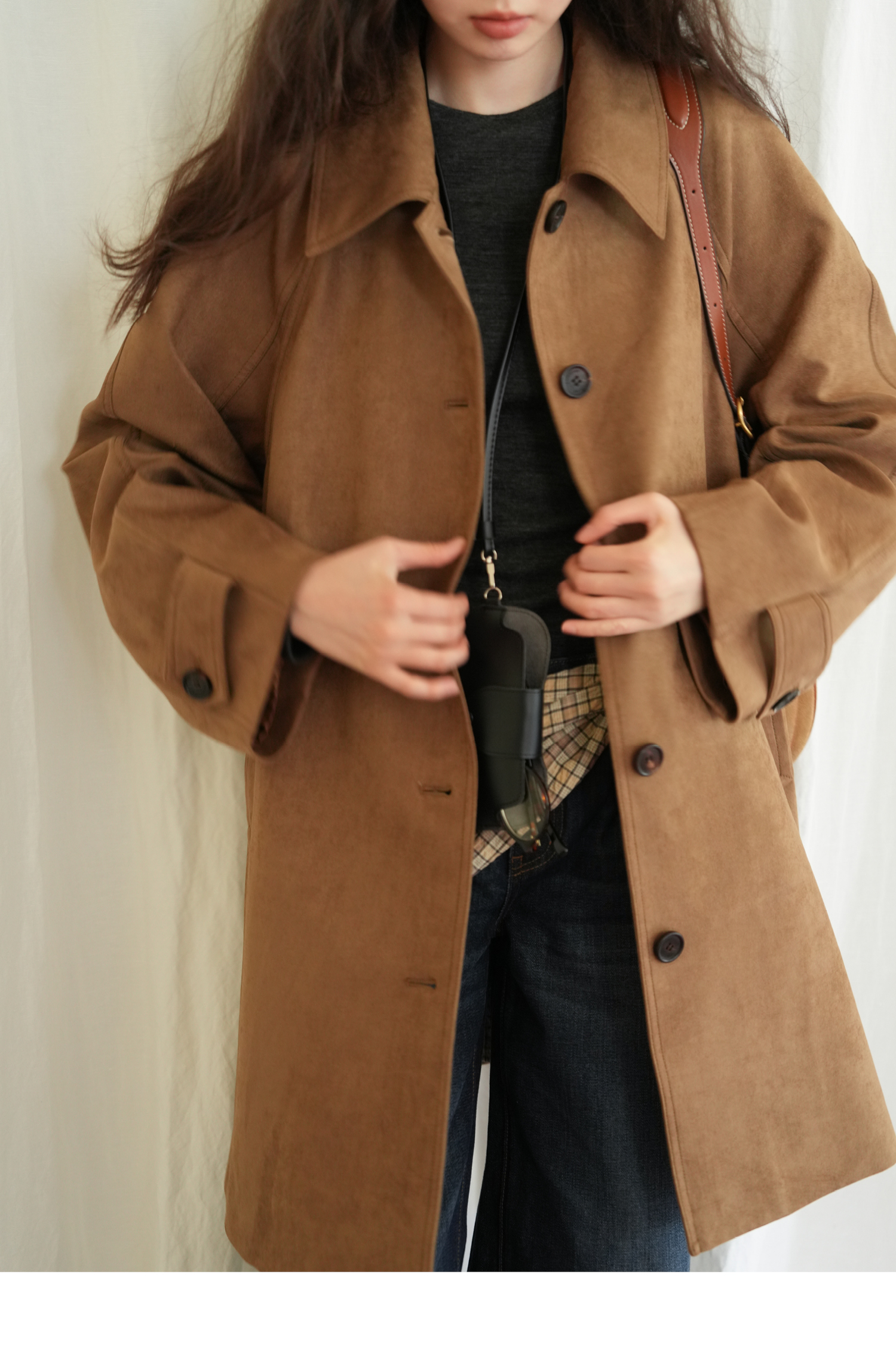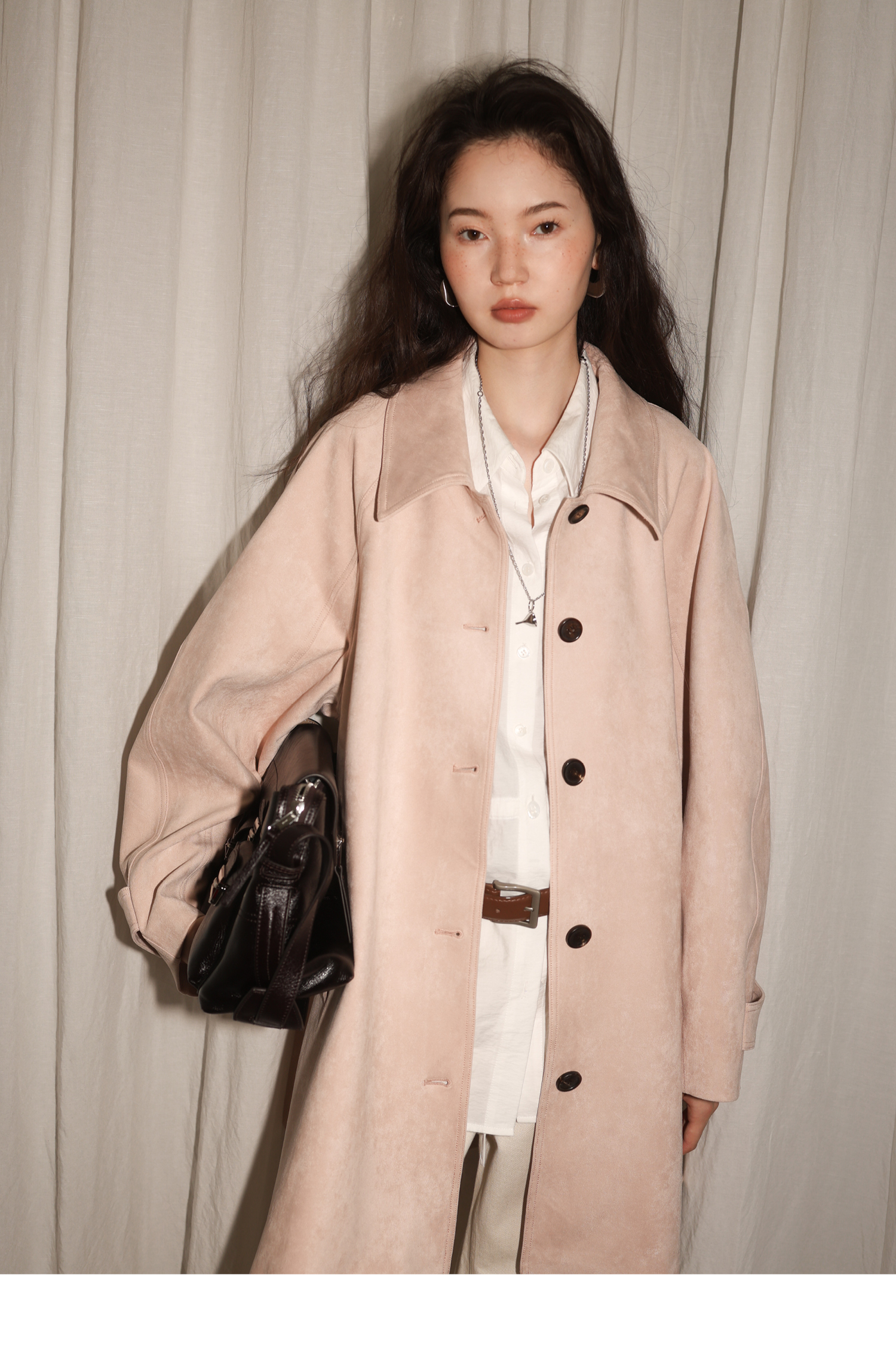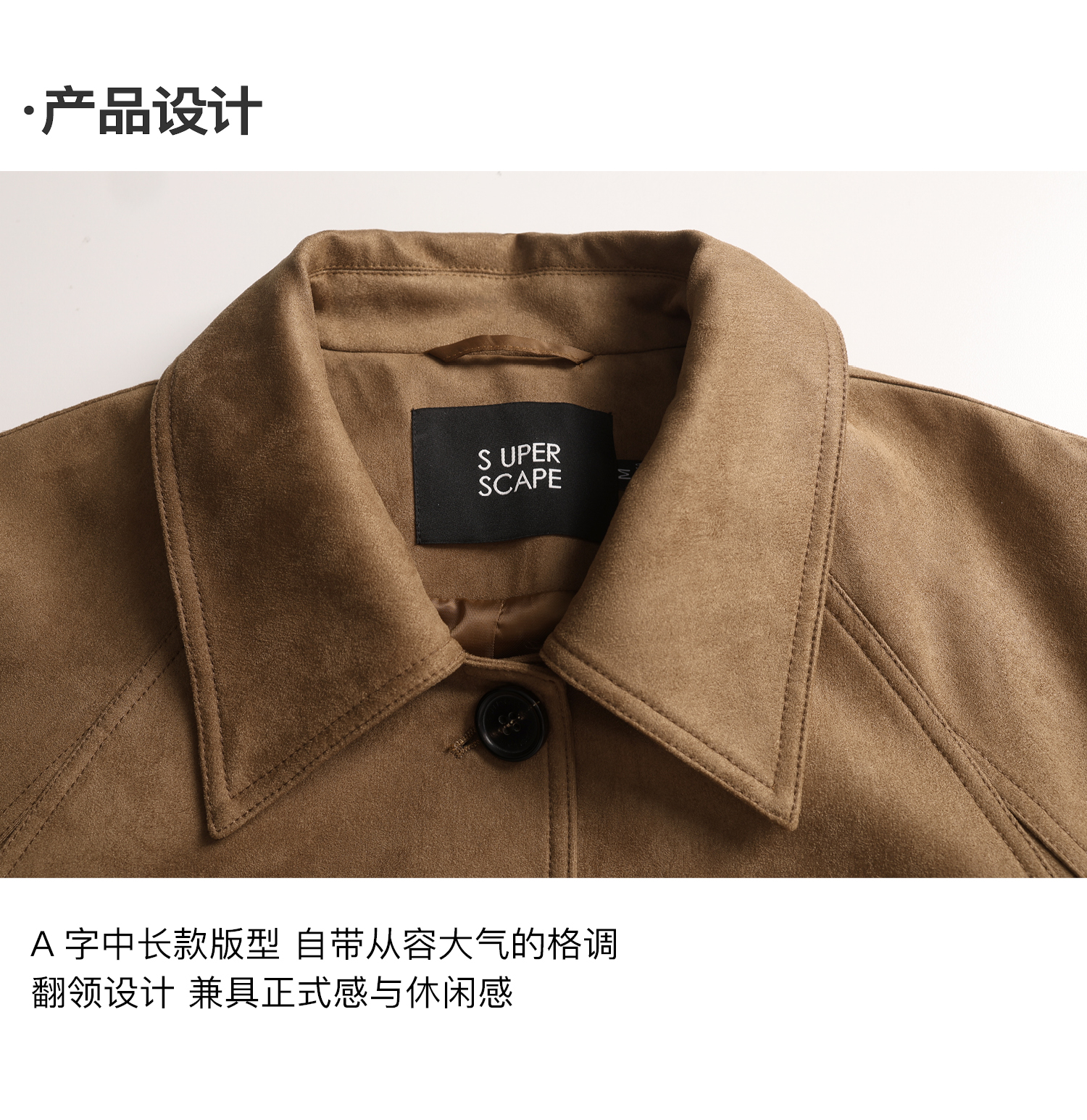 【8/25新品】素舶 麂皮绒雾面柔软高级感翻领A字伞摆宽松廓形风衣外套