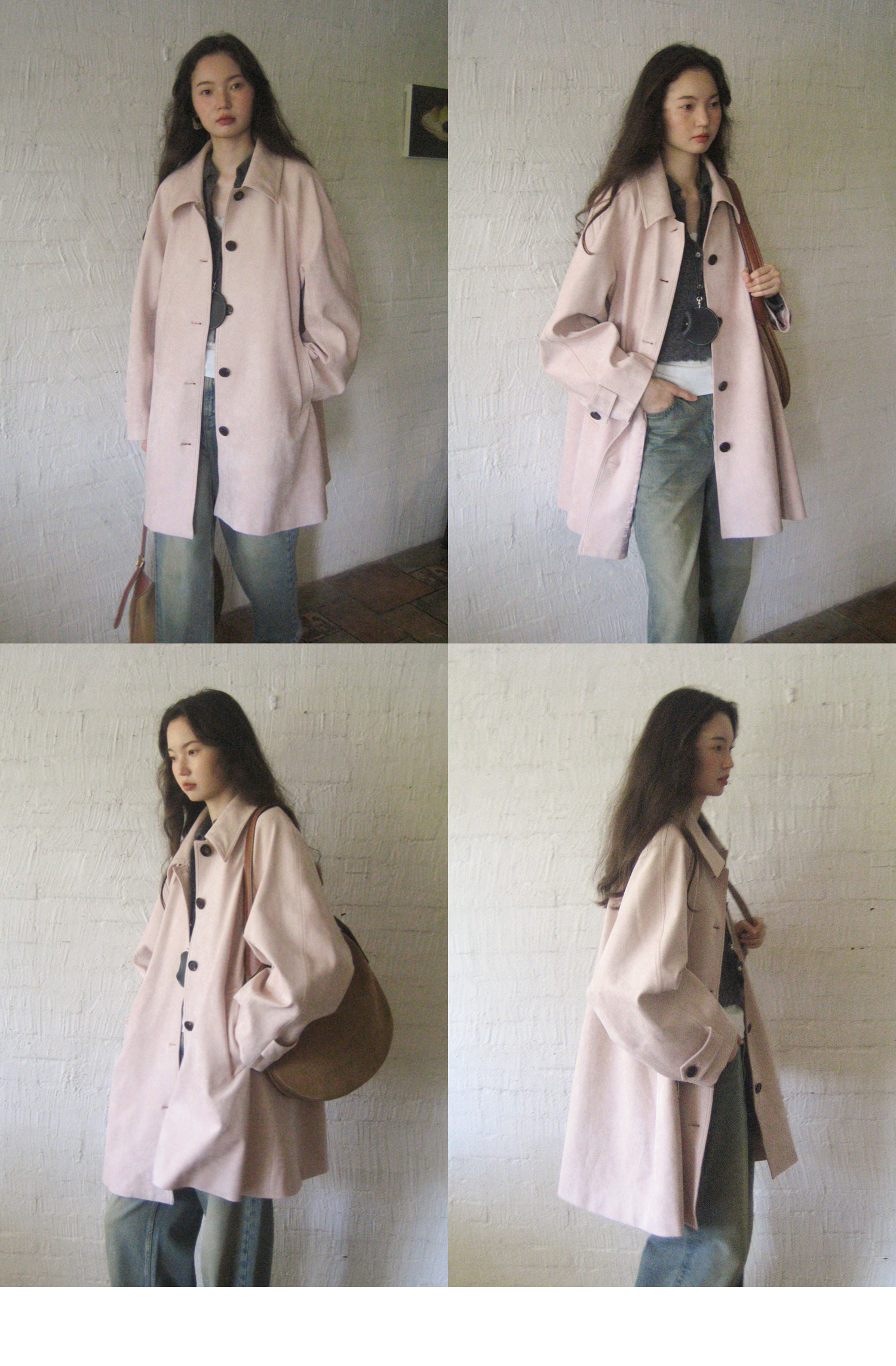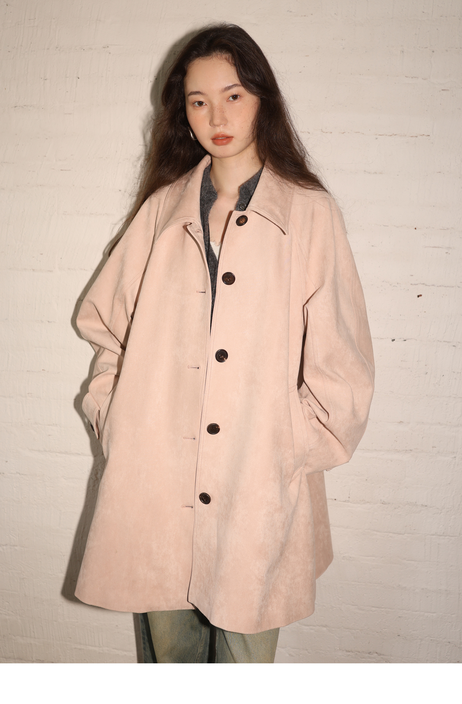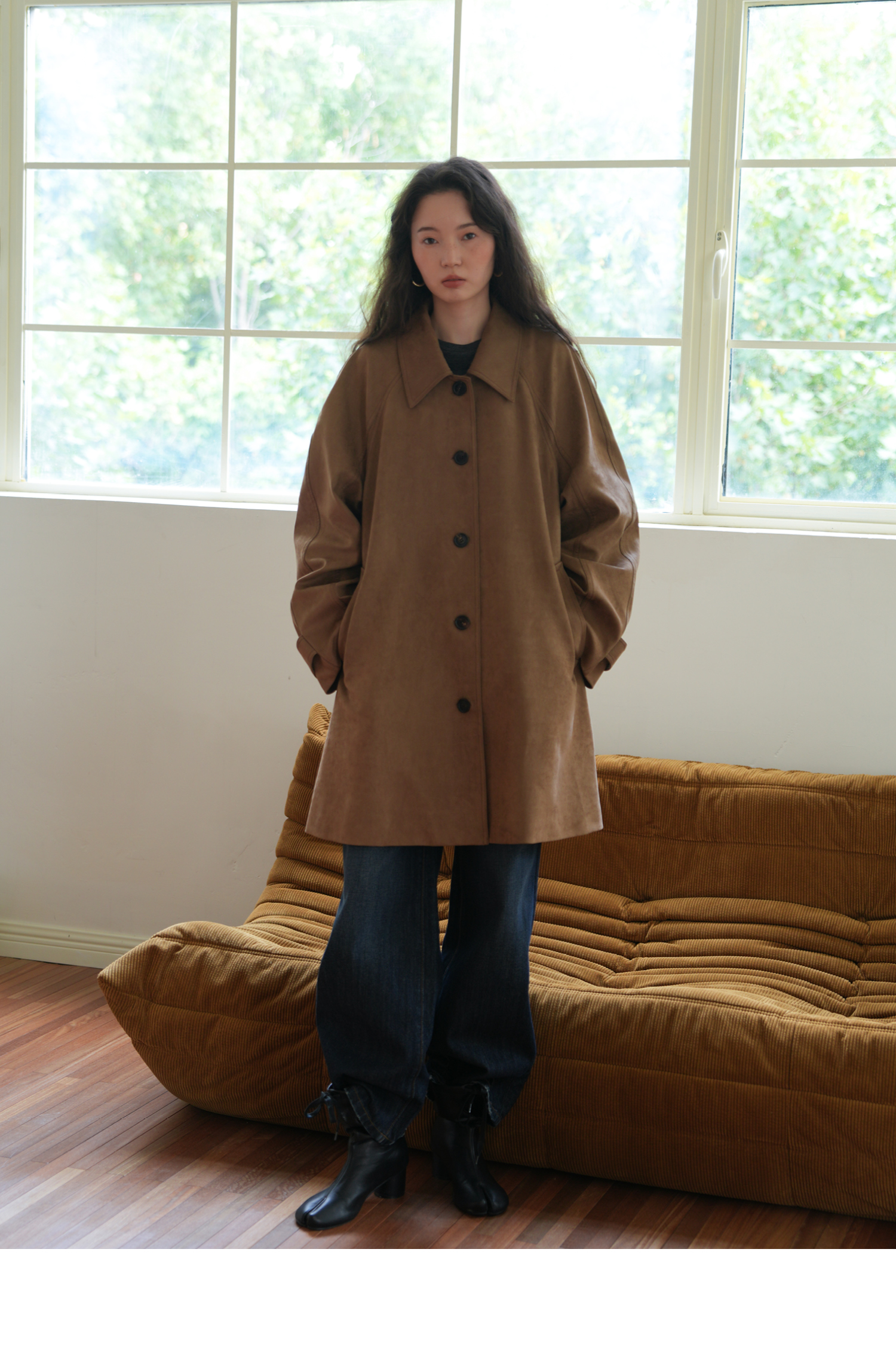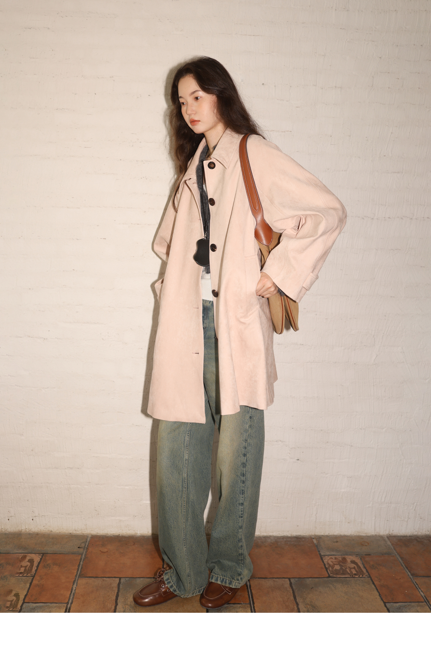 【8/25新品】素舶 麂皮绒雾面柔软高级感翻领A字伞摆宽松廓形风衣外套
