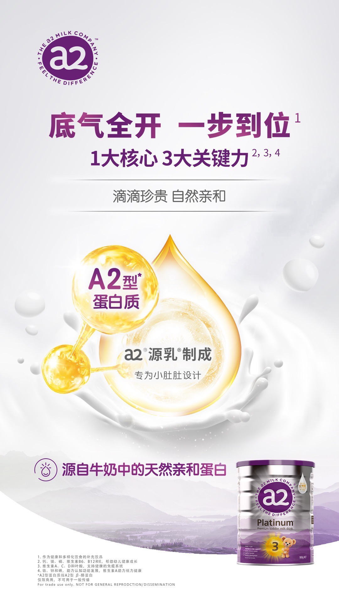 🎉不断进取的科学配方,不变的a2源乳®。由100% a2源乳制成,A2型蛋白质,自然亲和,专为宝宝小肚肚设计