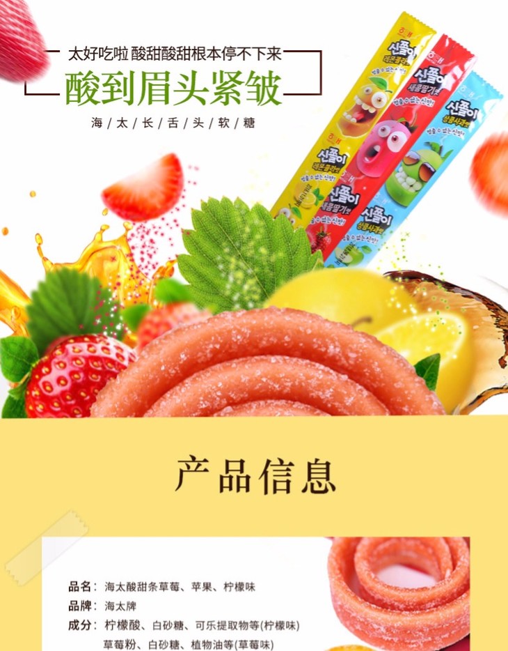 【5条】海太长条软糖27g*5(草莓/苹果/柠檬可乐味多口味可选)