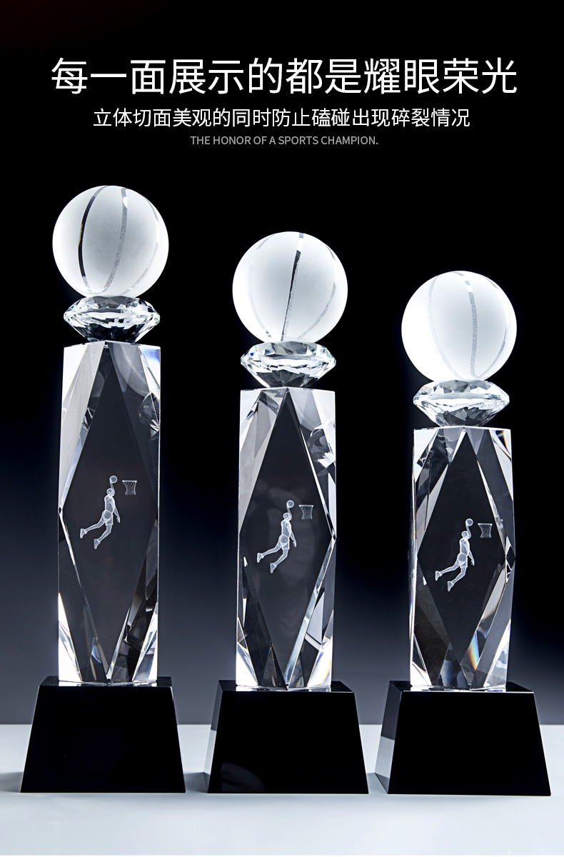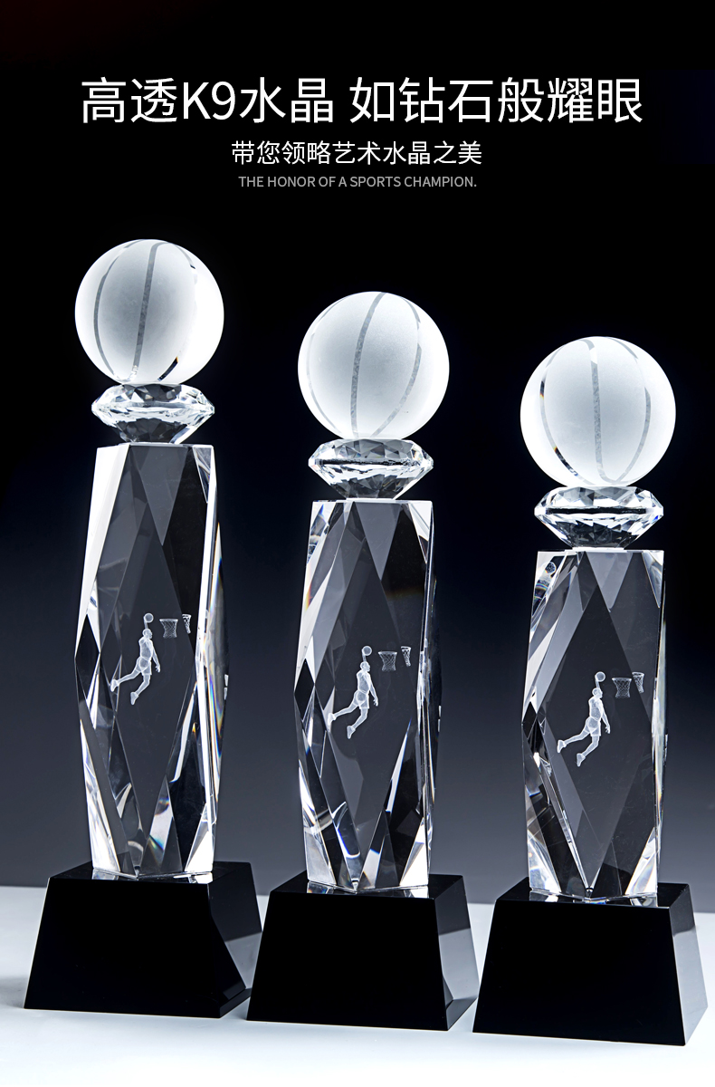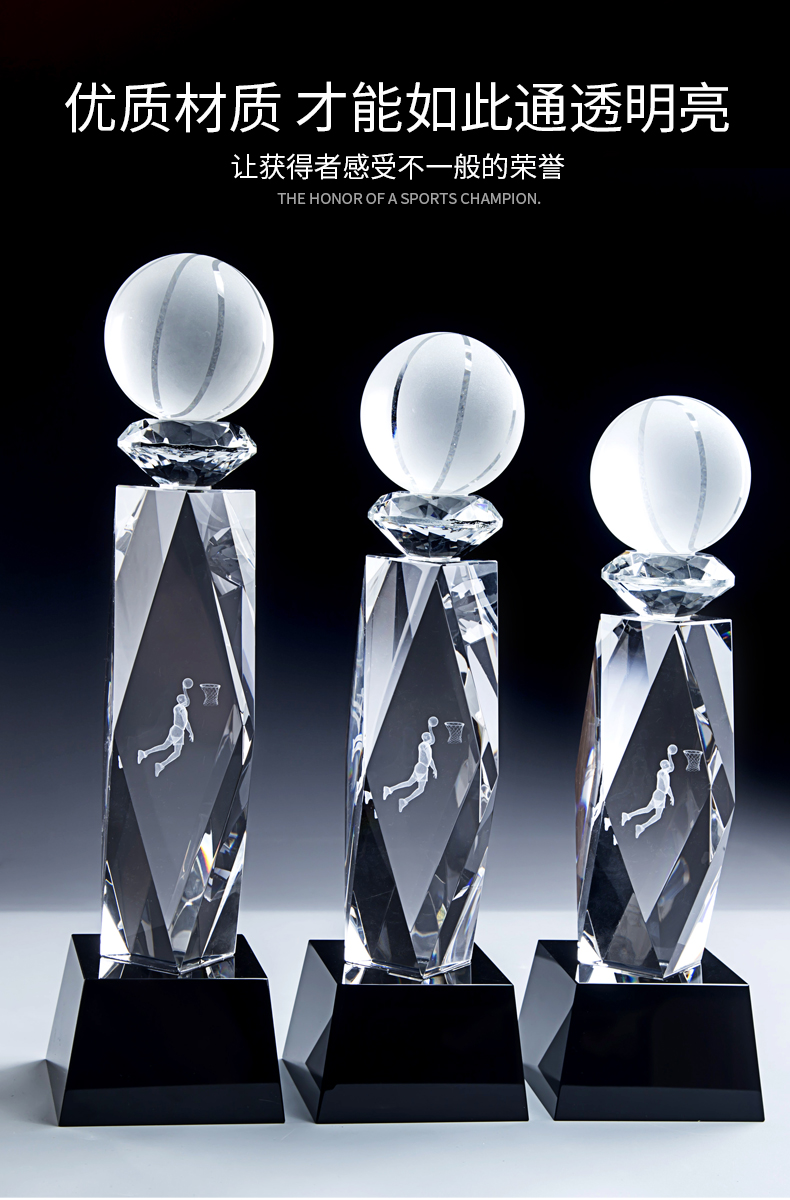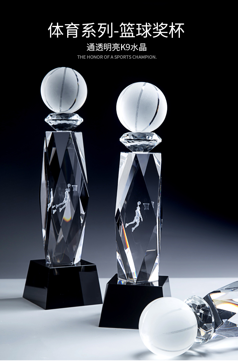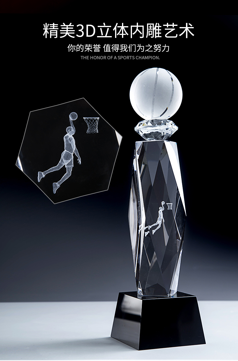 篮球创意水晶奖杯定制内雕mvpnba篮球赛大学生运动会冠军比赛奖牌