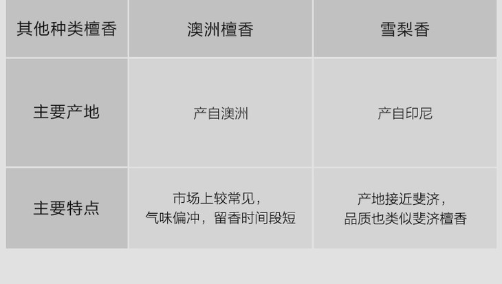 我们对不同产地不同品种的檀香木进行测试,数据分析可见印度檀香的品质最优,其檀香油含量最大,且檀香油中的主要成分檀香醇总量可达90%。