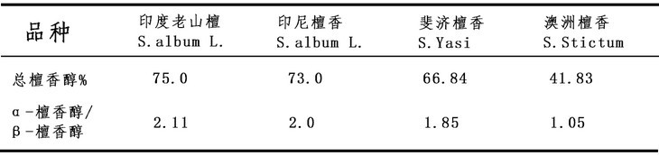 檀香油是檀香的主要有效成分,檀香的品质与檀香油成分密切相关。檀香木油国际标准(ISO3518:2002)给出了可以从α-檀香醇/β-檀香醇的含量与总檀香醇%这两个指标对檀香的品质进行控制。