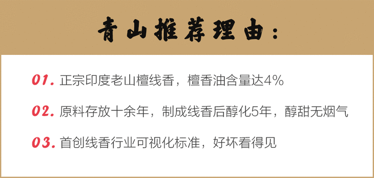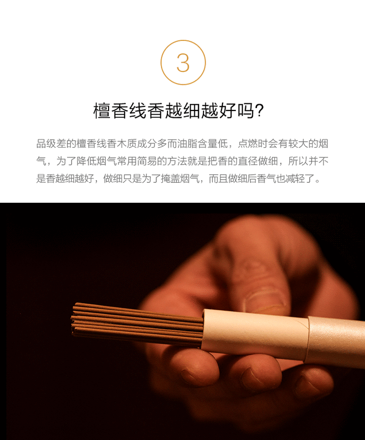 真正用印度老山檀原料制成的线香已经非常少见,更难得的是在制香前原料已经醇化了十余年,这种品质的香,用一批少一批,售价肯定越来越高,目前的价格还是比较亲民的,不管你有没有用香的习惯,都值得一试。